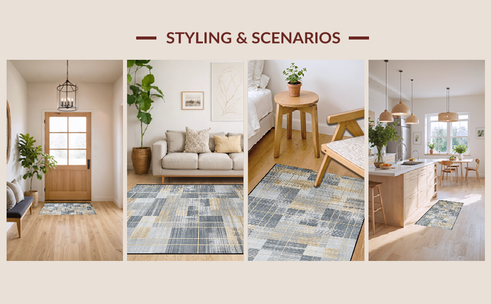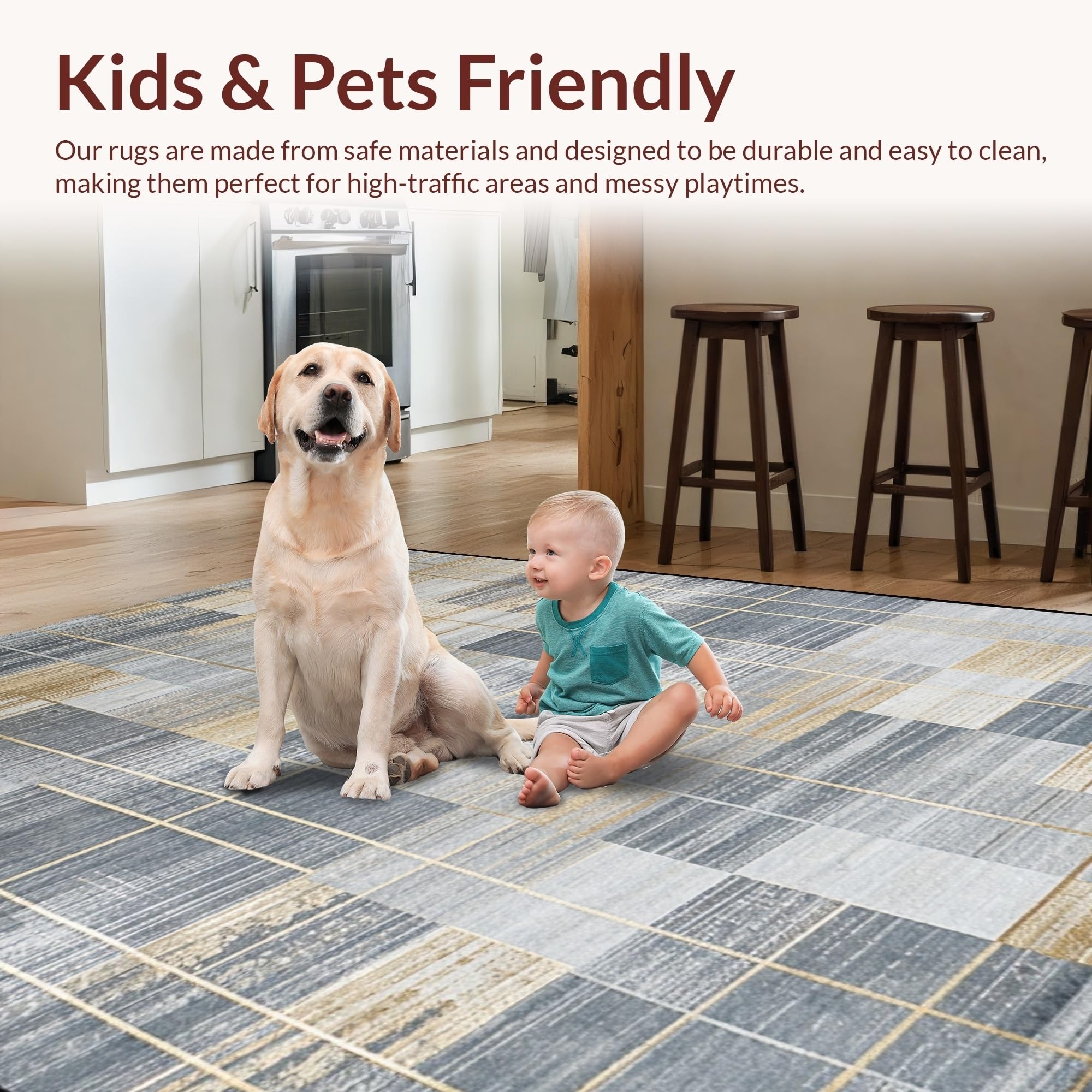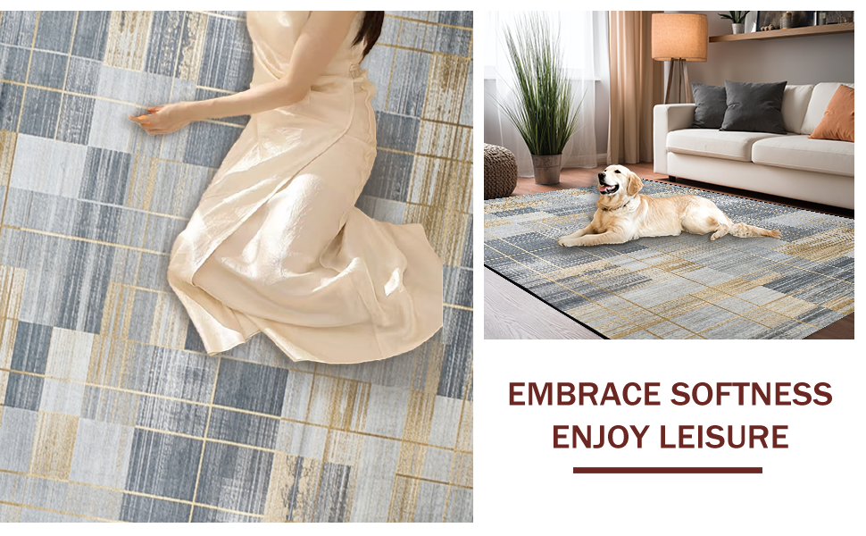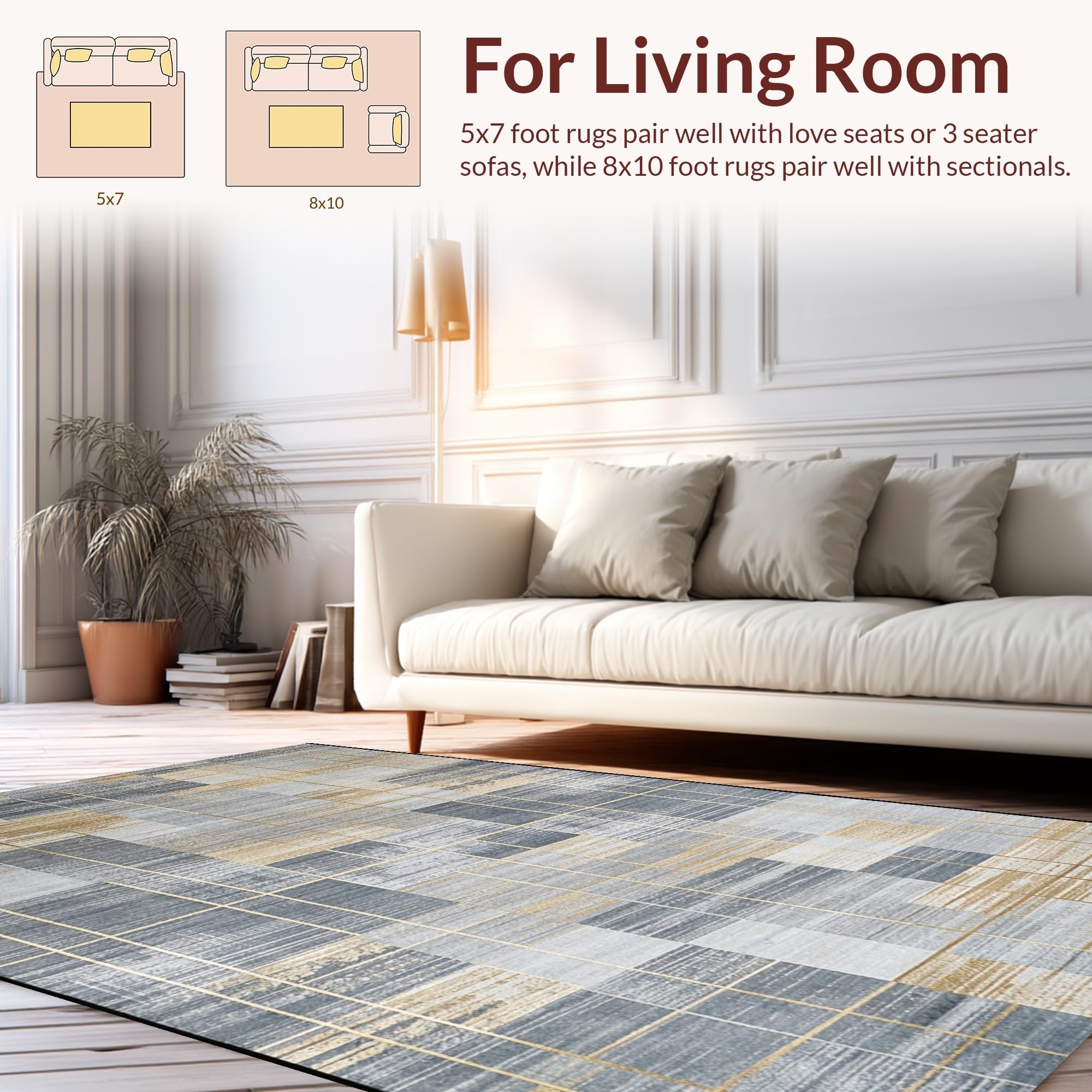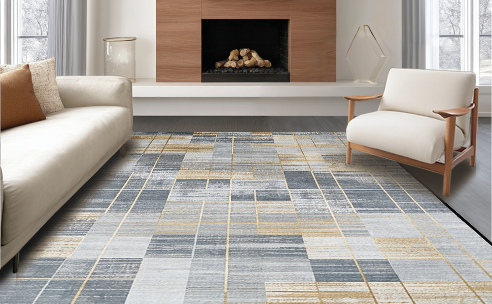 Ultra Soft Area Rug, Non Slip, Stain Resistant, Washable Area Rugs for Living Room, Bedroom, Vibrant Textured Geometric Arrangement(Gray) Overview: