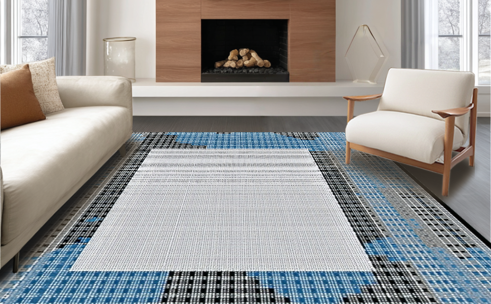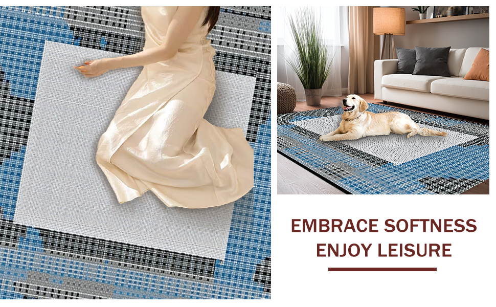Ultra Soft Area Rug, Non Slip, Stain Resistant, Washable Area Rugs for Living Room, Bedroom, Vibrant Textured Linear Composition(Blue) Overview: