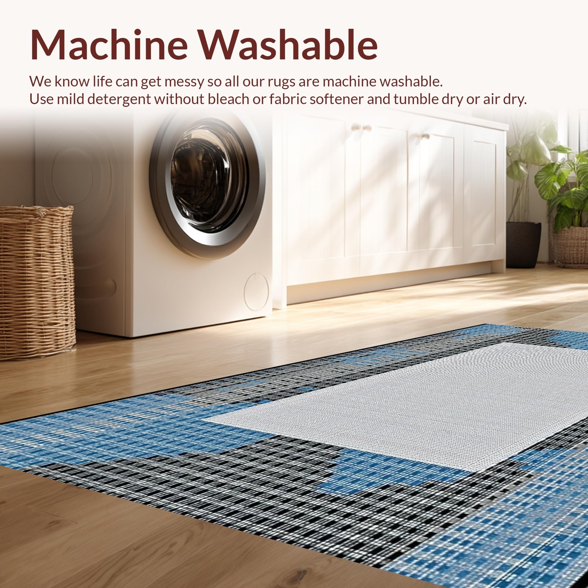 - Machine Washable: Our rugs can be easily thrown in the wash machine.