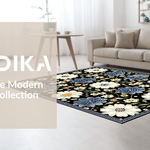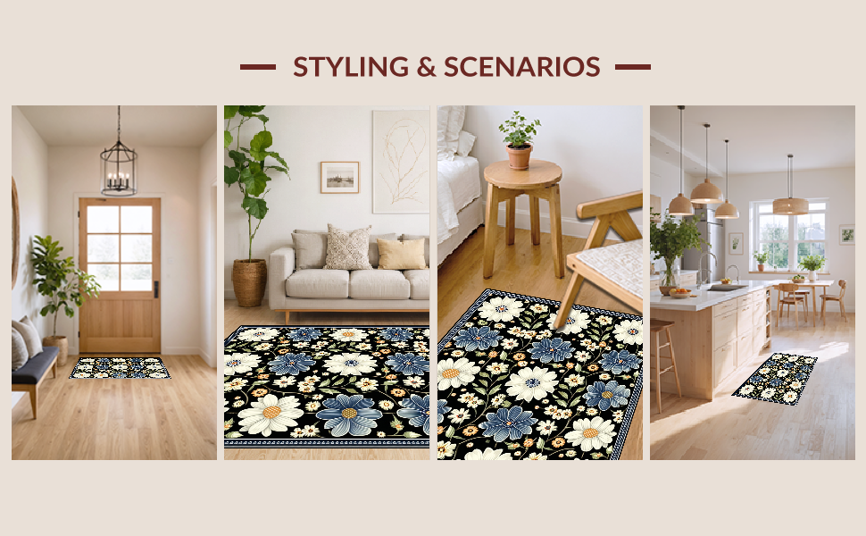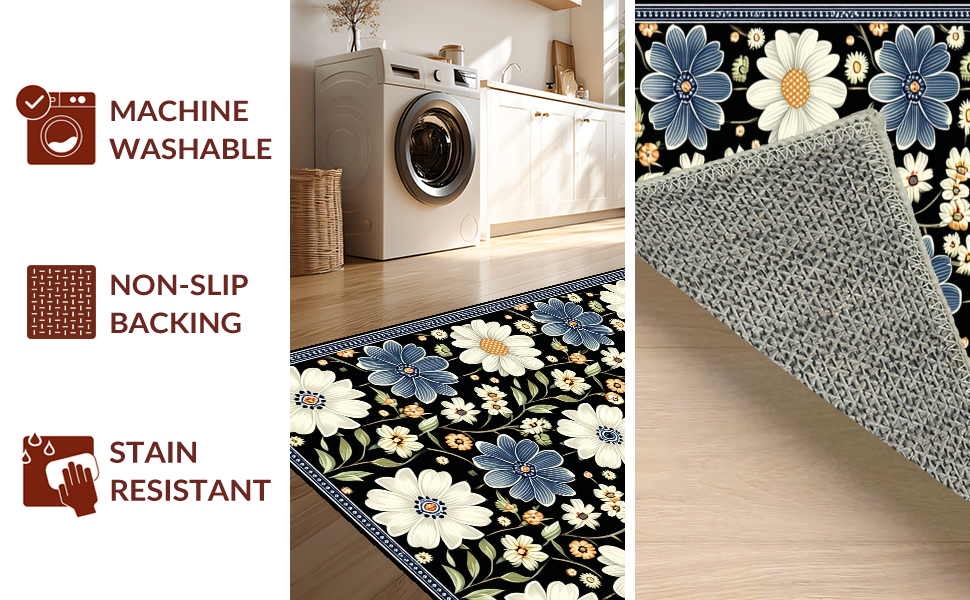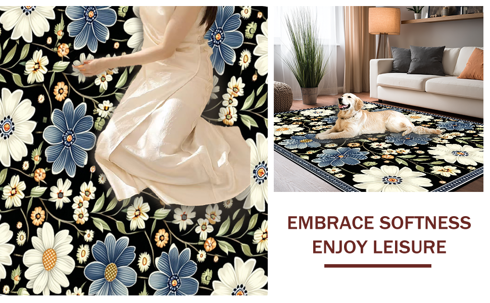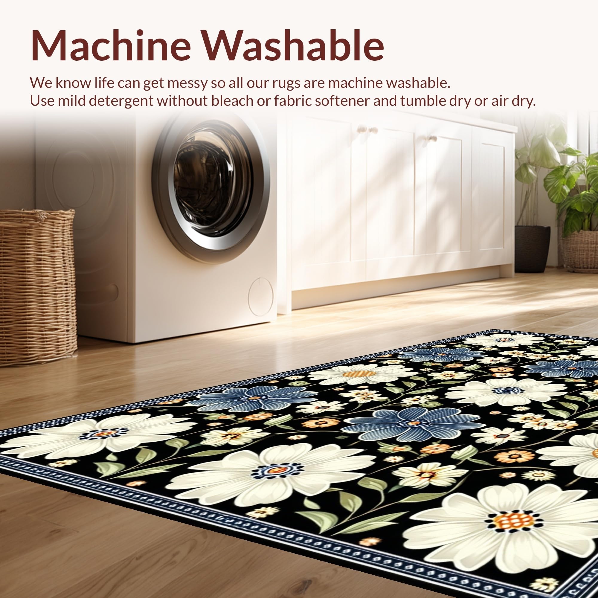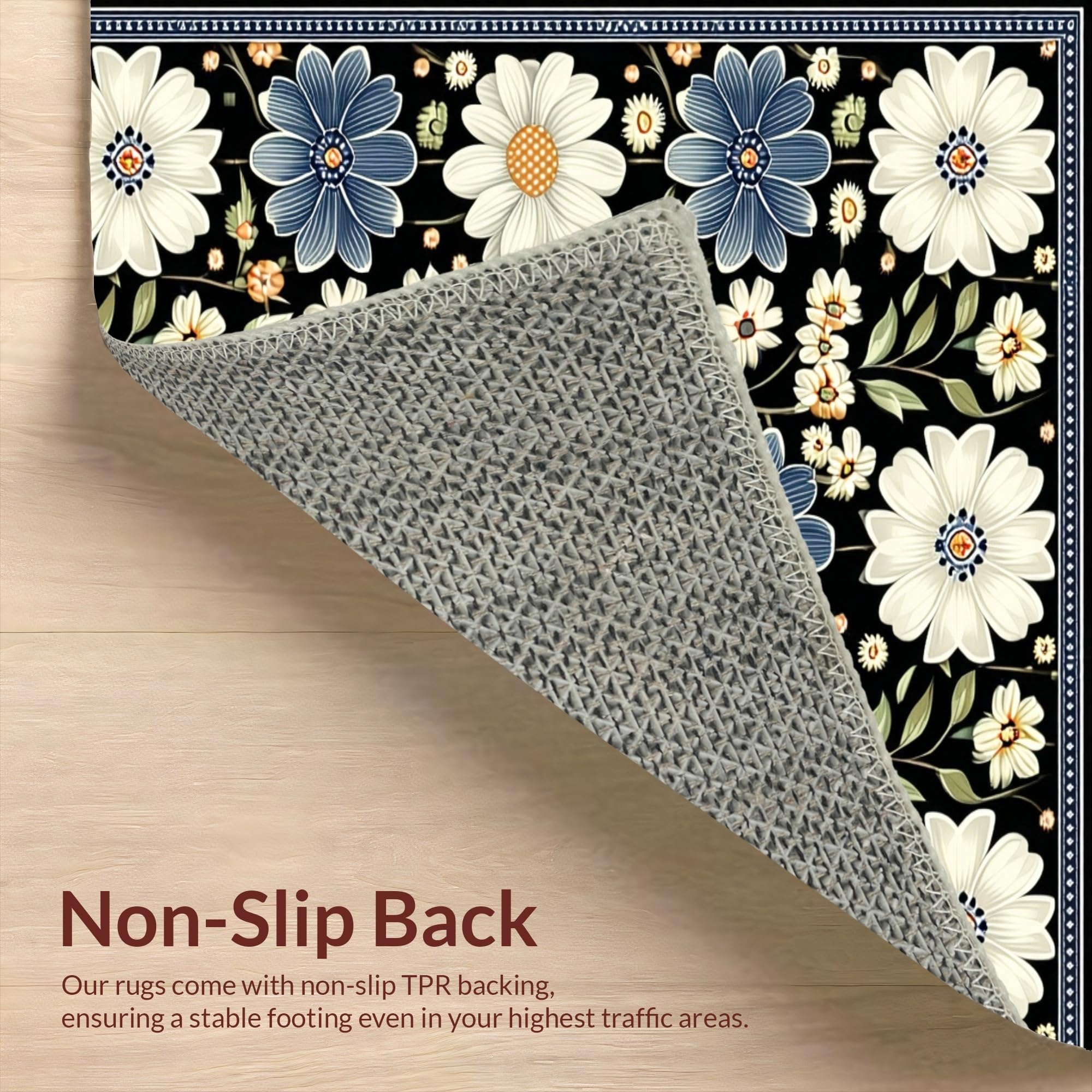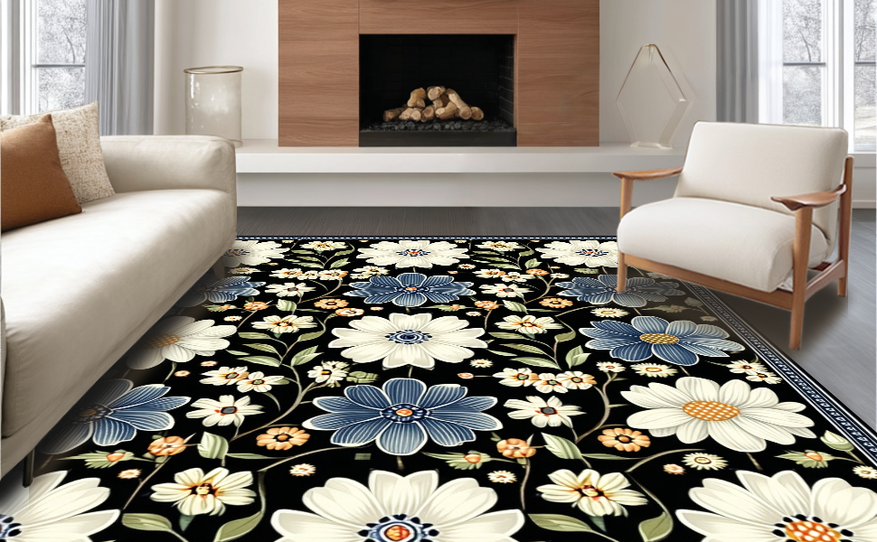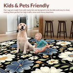 Ultra Soft Area Rug, Non Slip, Stain Resistant, Washable Area Rugs for Living Room, Bedroom, Vibrant Tiled Botanical Arrangement(Black) Overview: