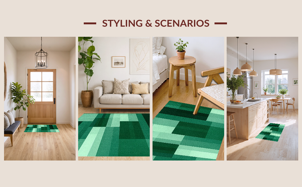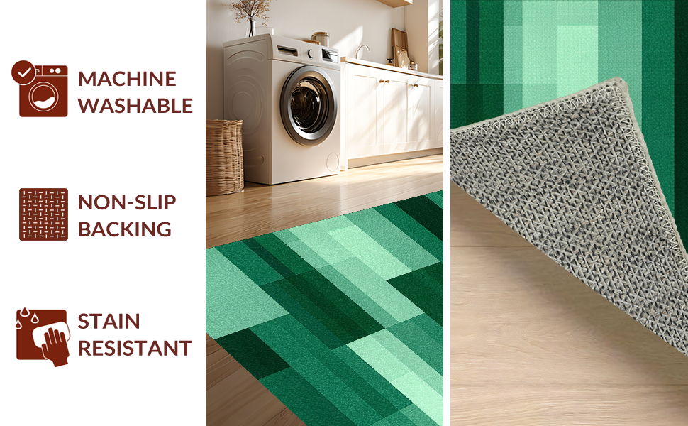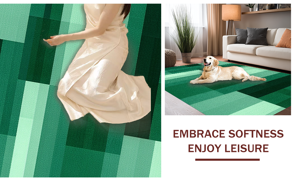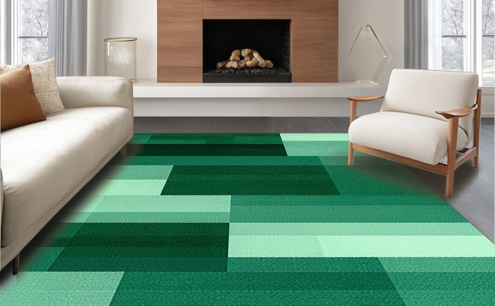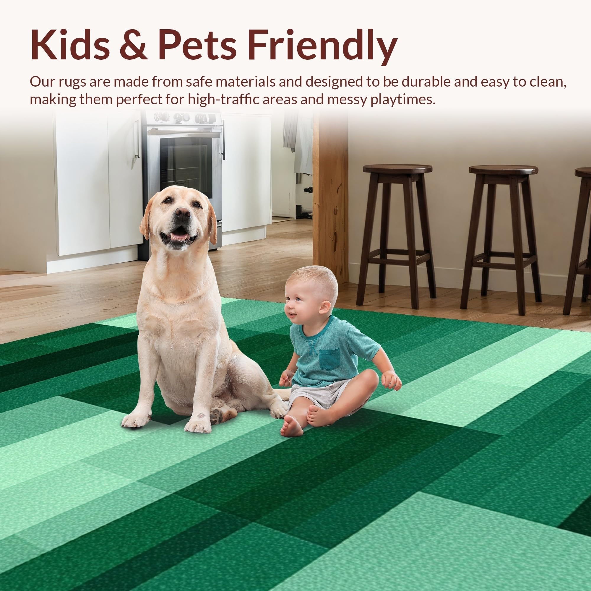 Ultra Soft Area Rug, Non Slip, Stain Resistant, Washable Area Rugs for Living Room, Bedroom, Vibrant Toned Abstract Stripes(Green) Overview: