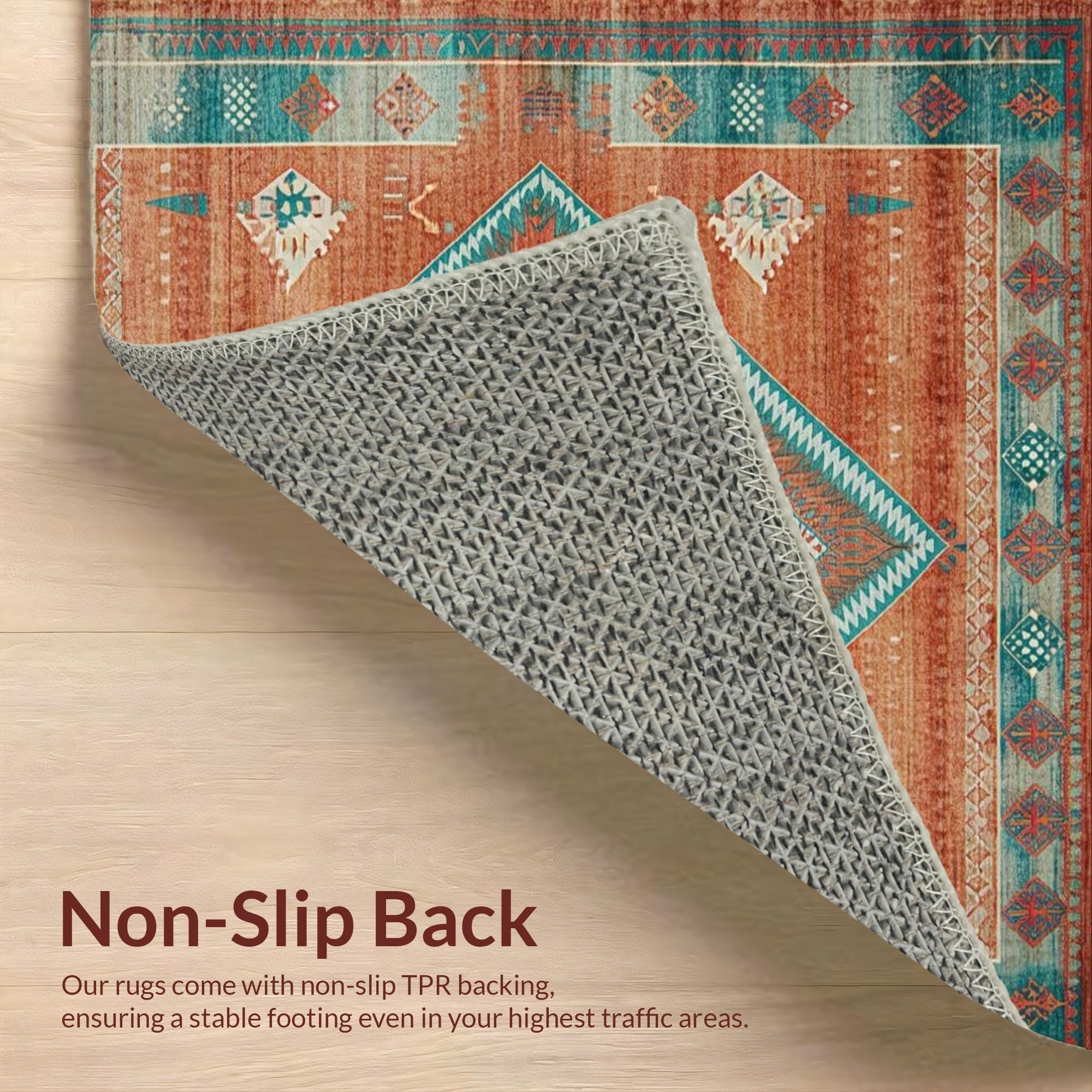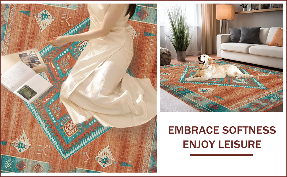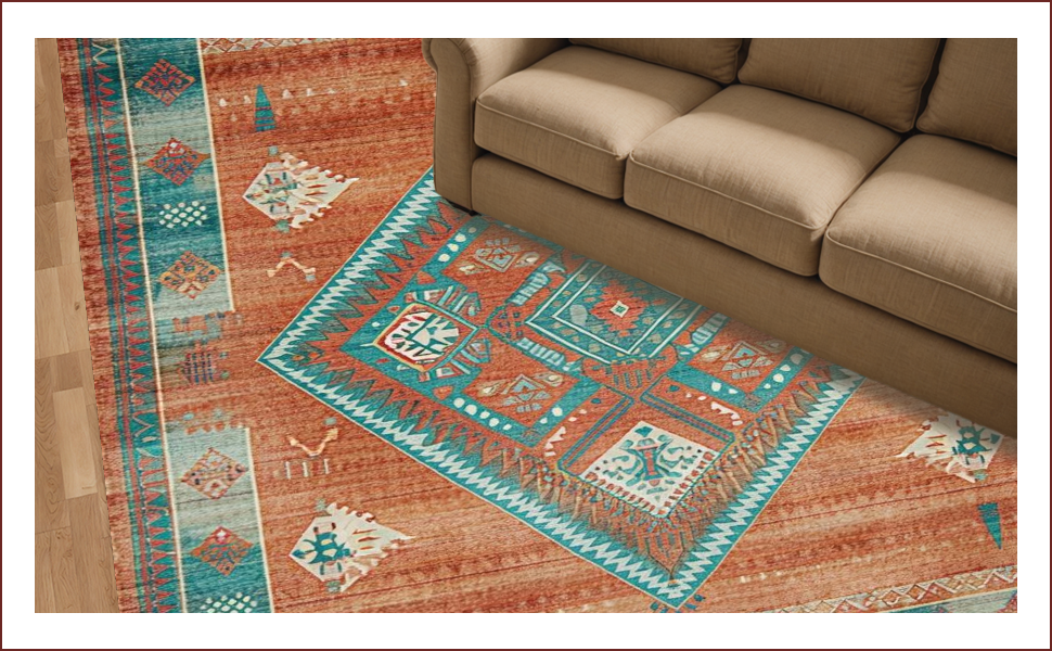 Ultra Soft Area Rug, Non Slip, Stain Resistant, Washable Area Rugs for Living Room, Bedroom, Vibrant Tribal Distressed Composition(Orange) Overview: