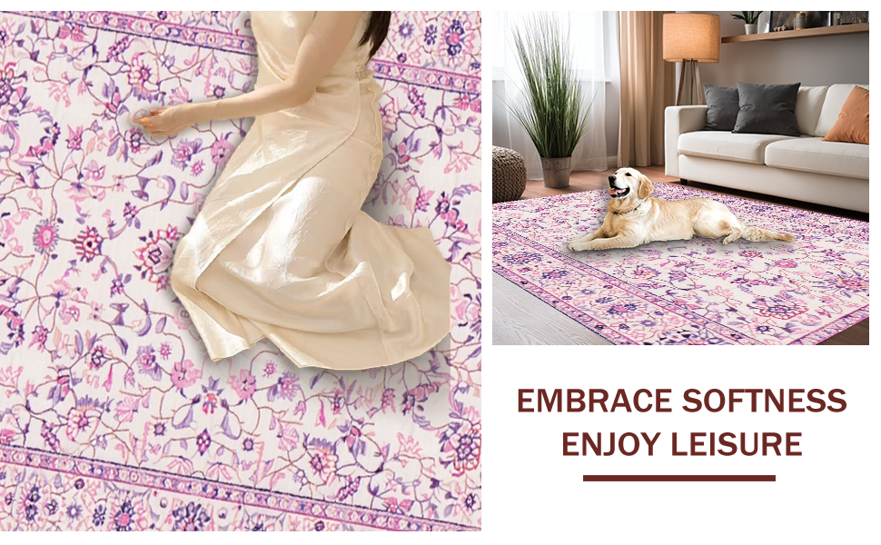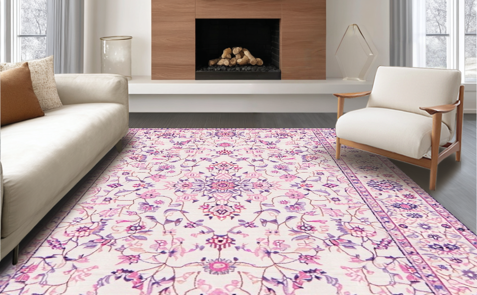 Ultra Soft Area Rug, Non Slip, Stain Resistant, Washable Area Rugs for Living Room, Bedroom, Vibrant Tropical Blossom Design(Pink) Overview: