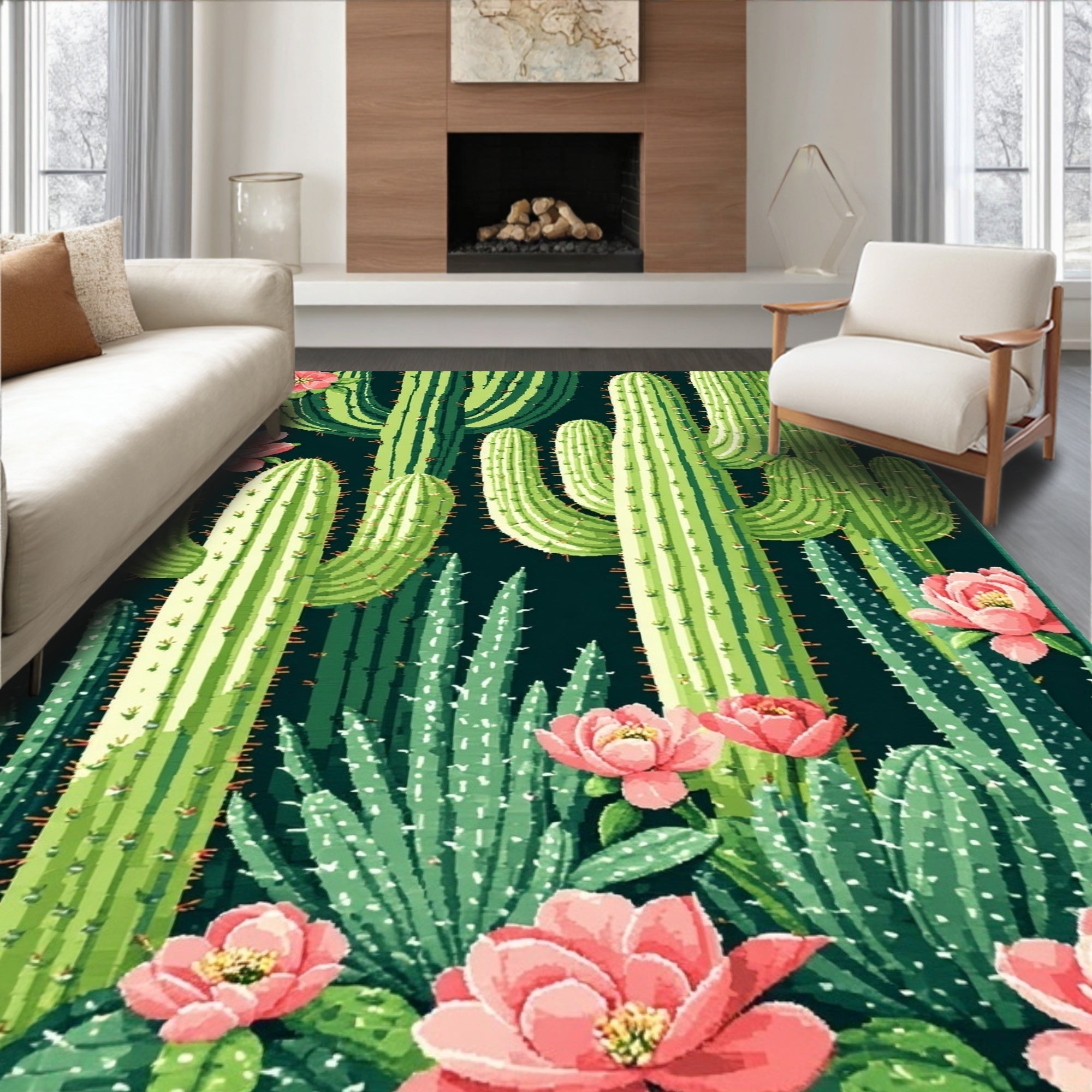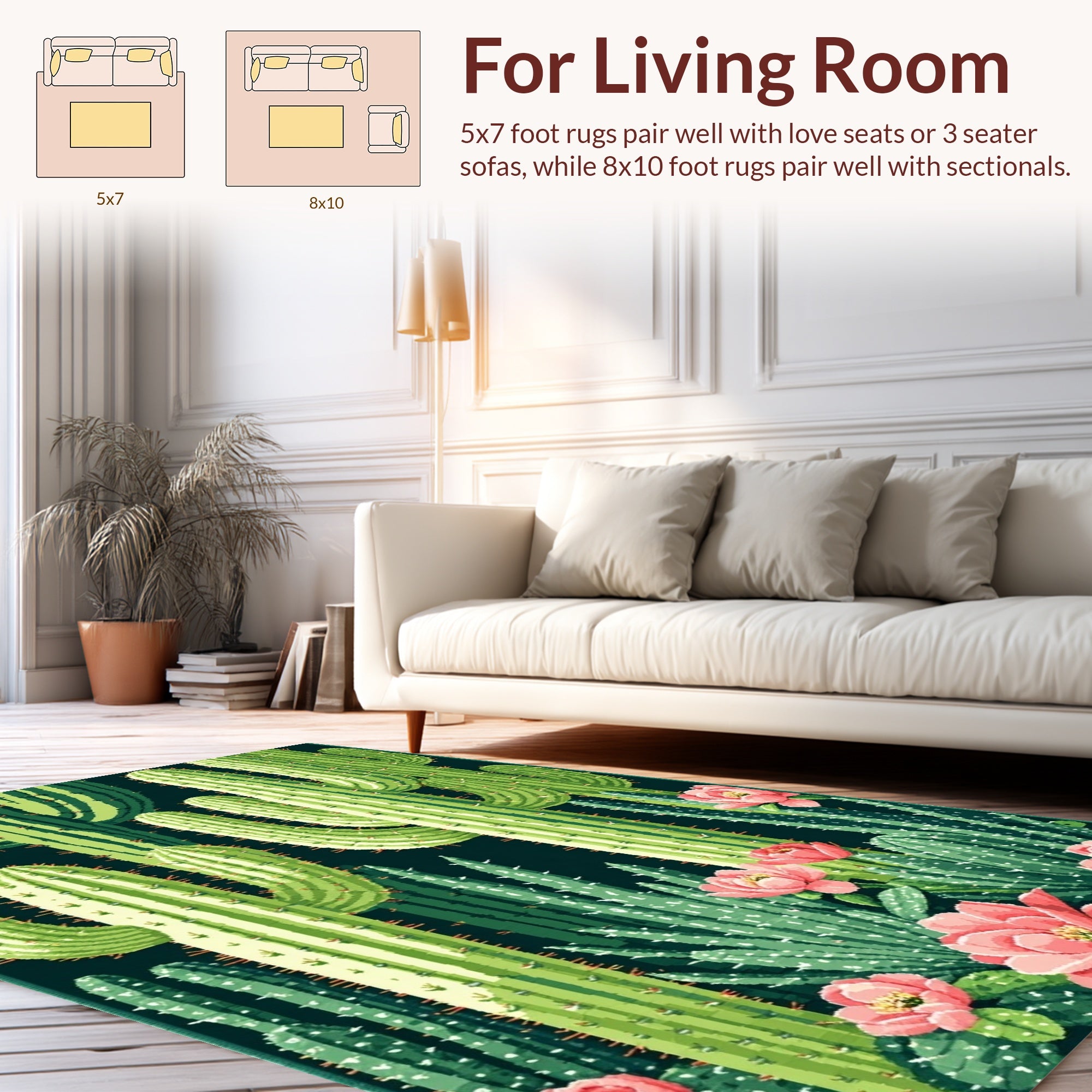 Flatwoven High Traffic Area Rug, Vibrant Tropical Botanical Design, Non Slip, Stain Resistant, Washable Area Rugs for Living Room, Bedroom (Green) Overview: