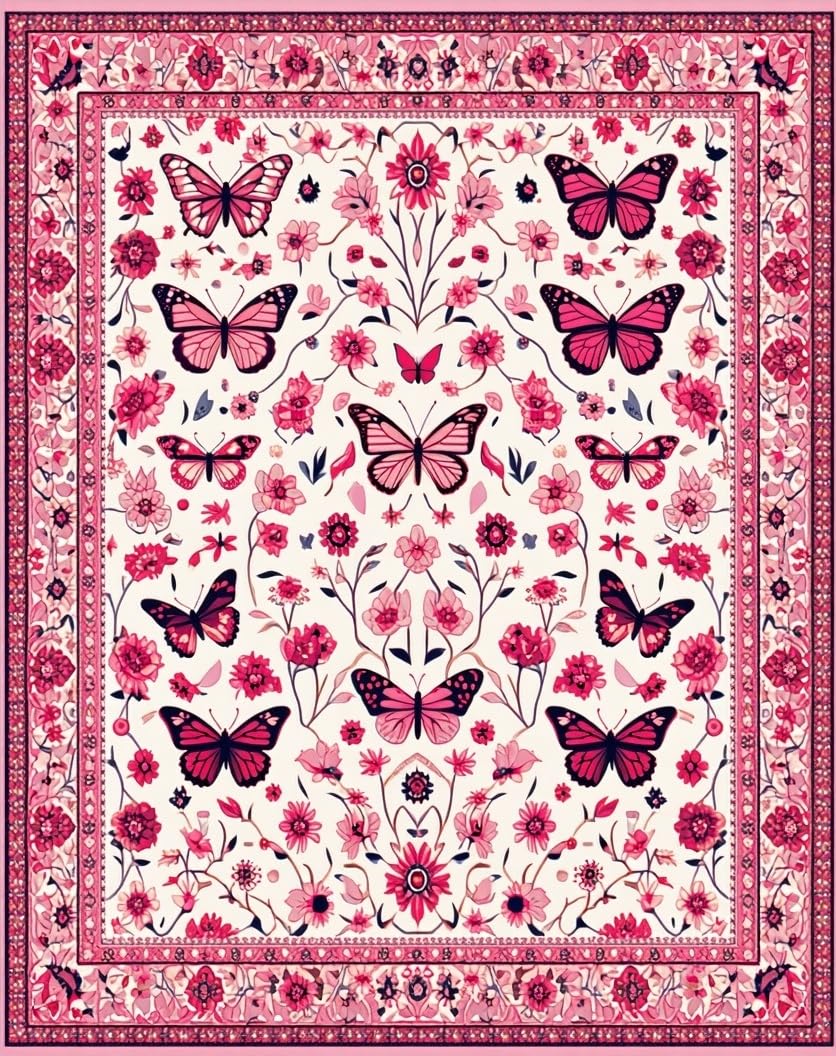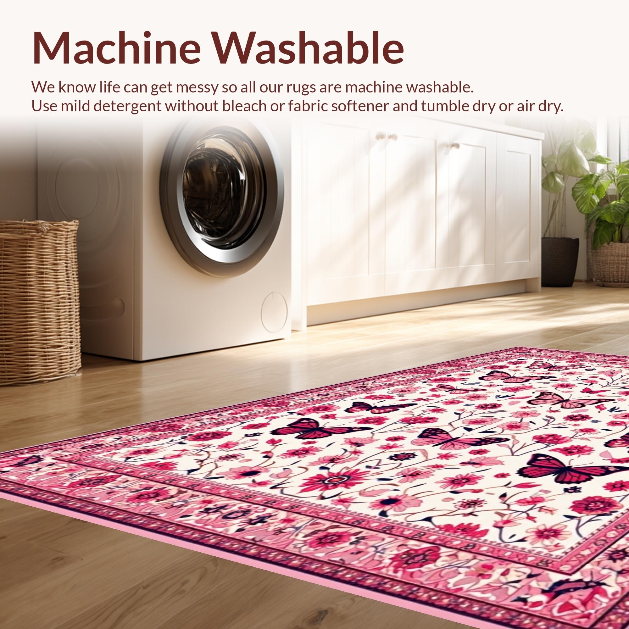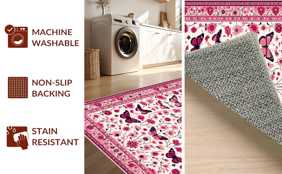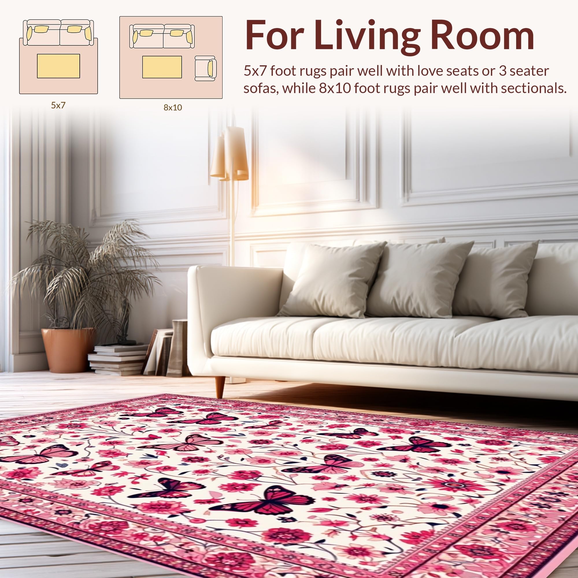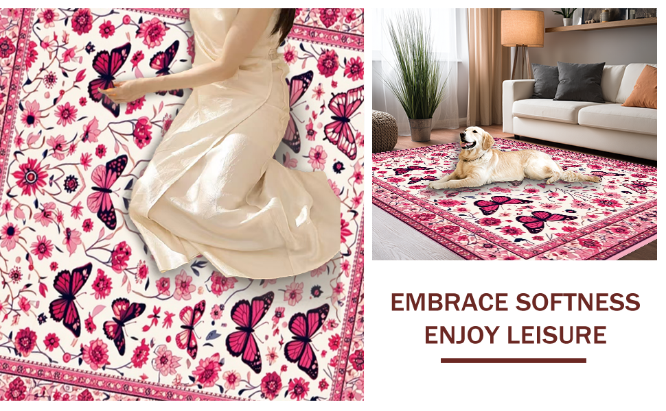 Ultra Soft Area Rug, Non Slip, Stain Resistant, Washable Area Rugs for Living Room, Bedroom, Vibrant Tropical Butterfly Pattern(Pink) Overview: