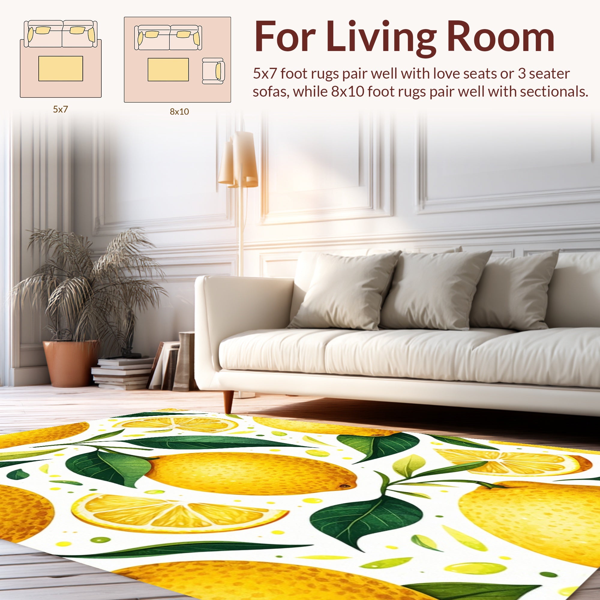Flatwoven High Traffic Area Rug, Vibrant Tropical Citrus Aesthetic, Non Slip, Stain Resistant, Washable Area Rugs for Living Room, Bedroom (Yellow) Overview:
