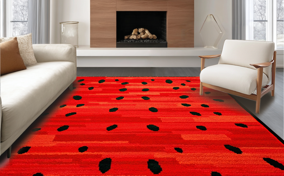Ultra Soft Area Rug, Non Slip, Stain Resistant, Washable Area Rugs for Living Room, Bedroom, Vibrant Tropical Theme Accent(Red) Overview: