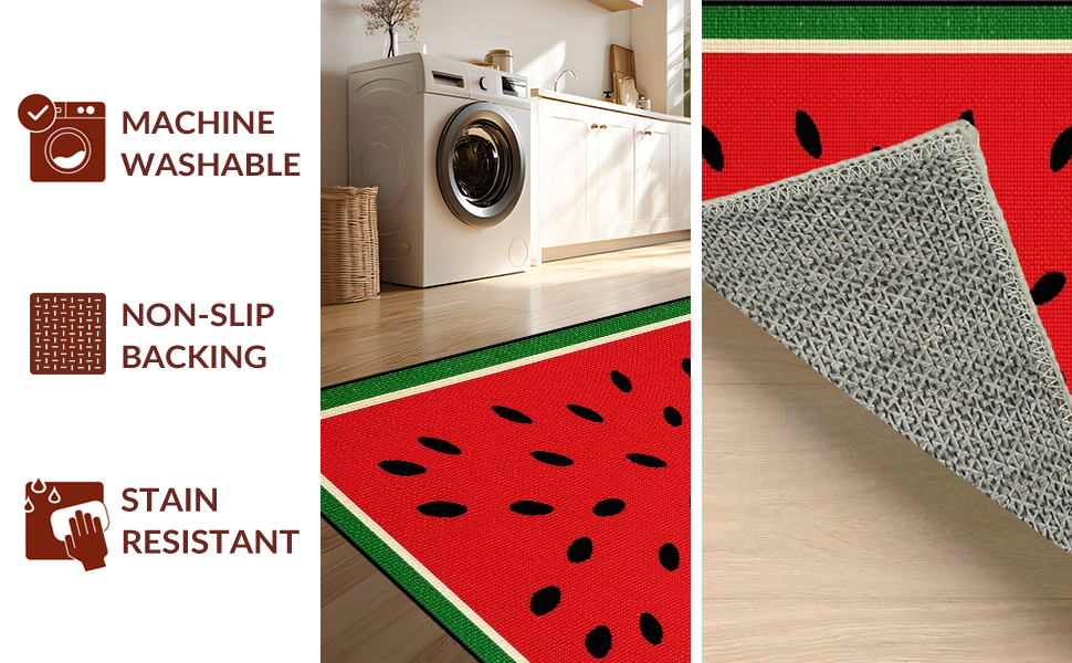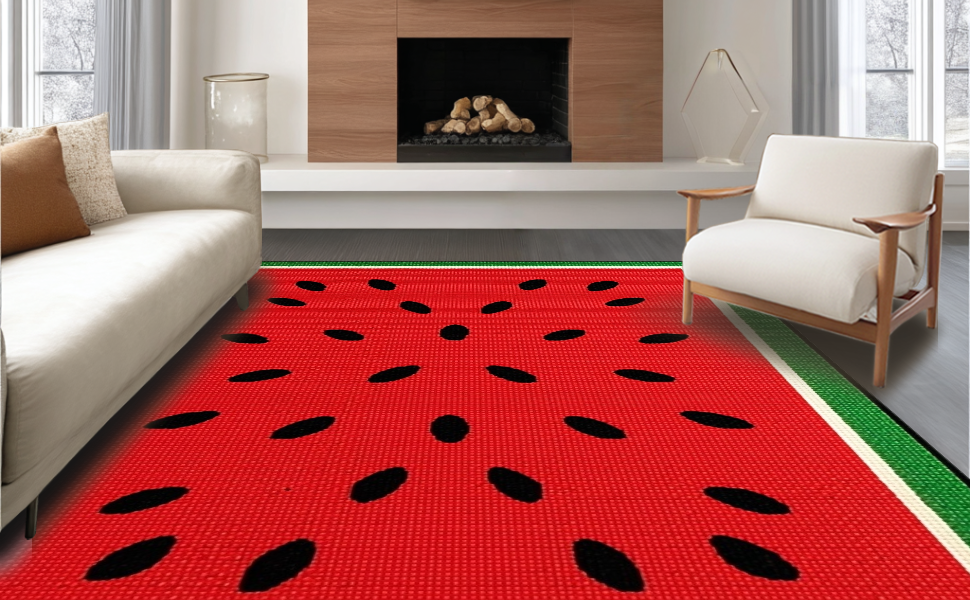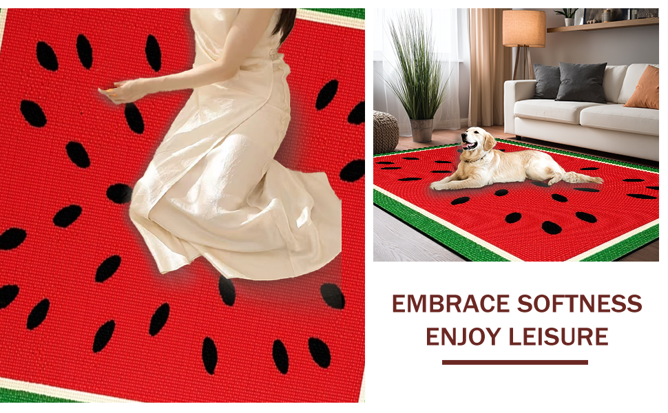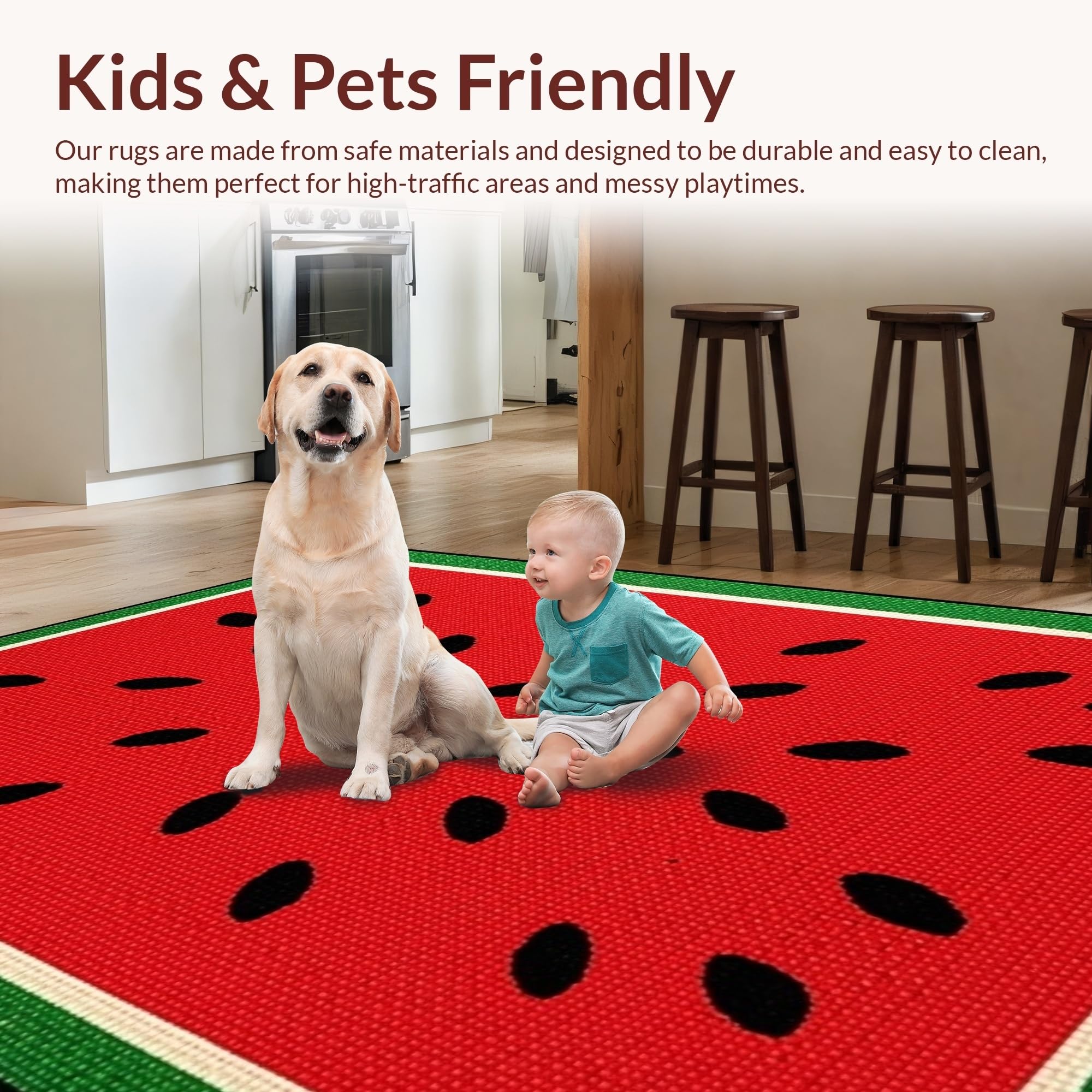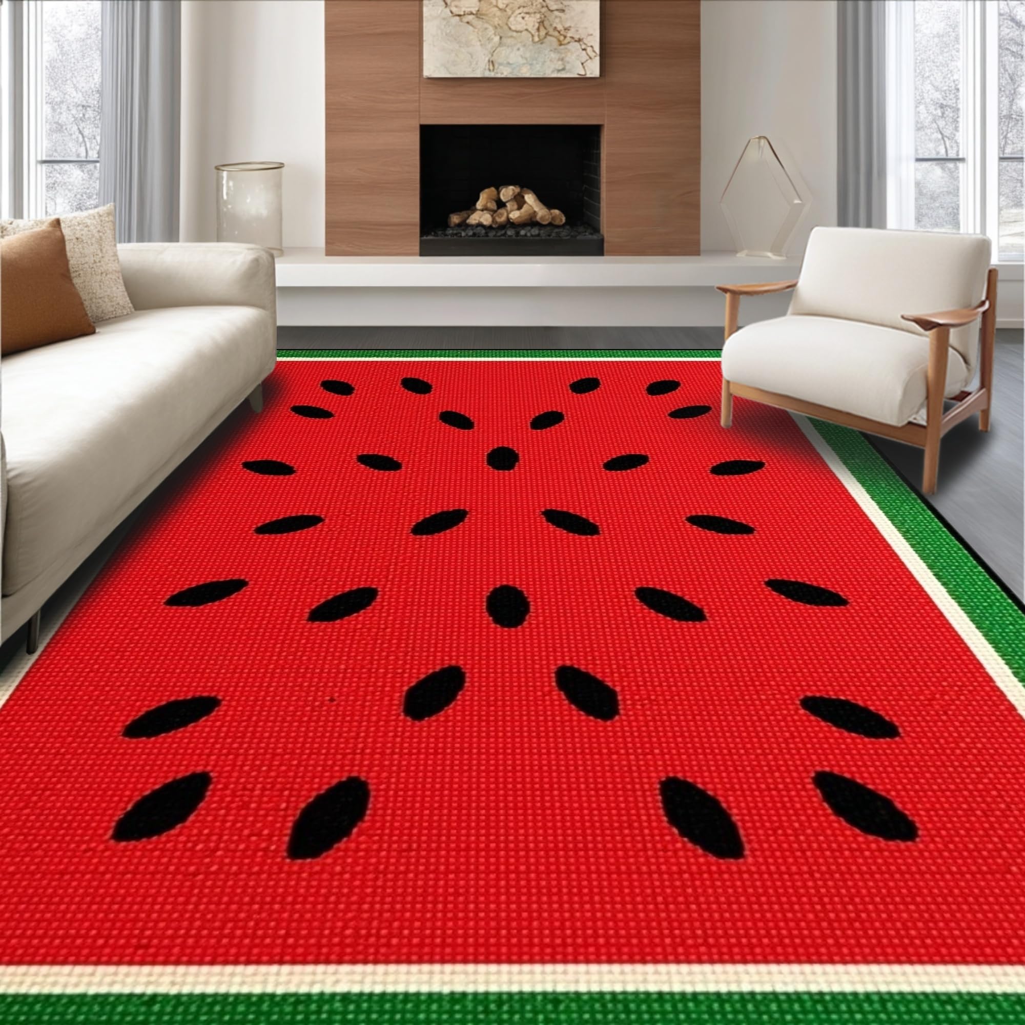 Ultra Soft Area Rug, Non Slip, Stain Resistant, Washable Area Rugs for Living Room, Bedroom, Vibrant Tropical Watermelon Theme(Red) Overview: