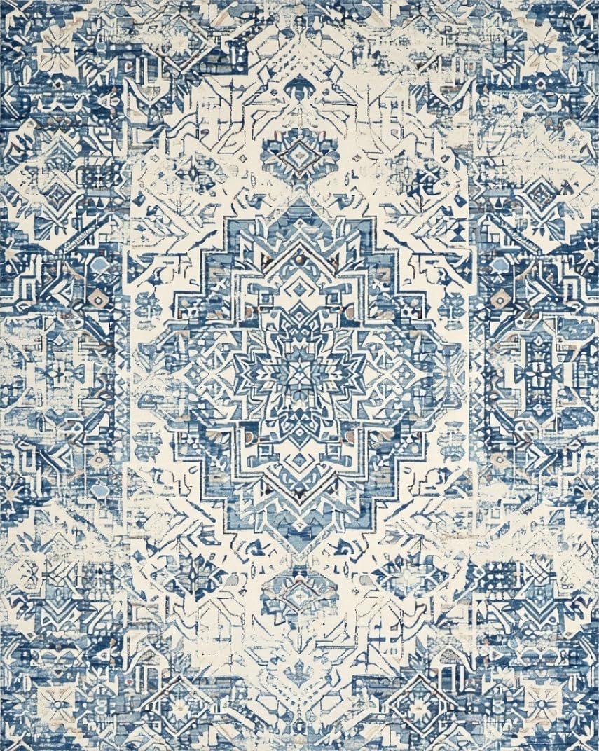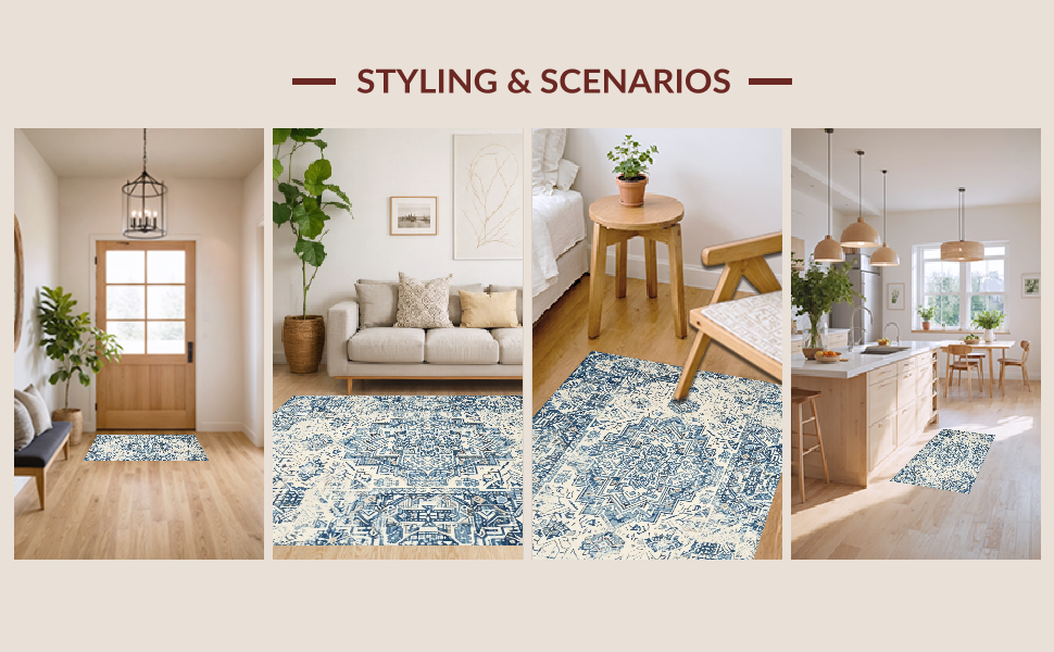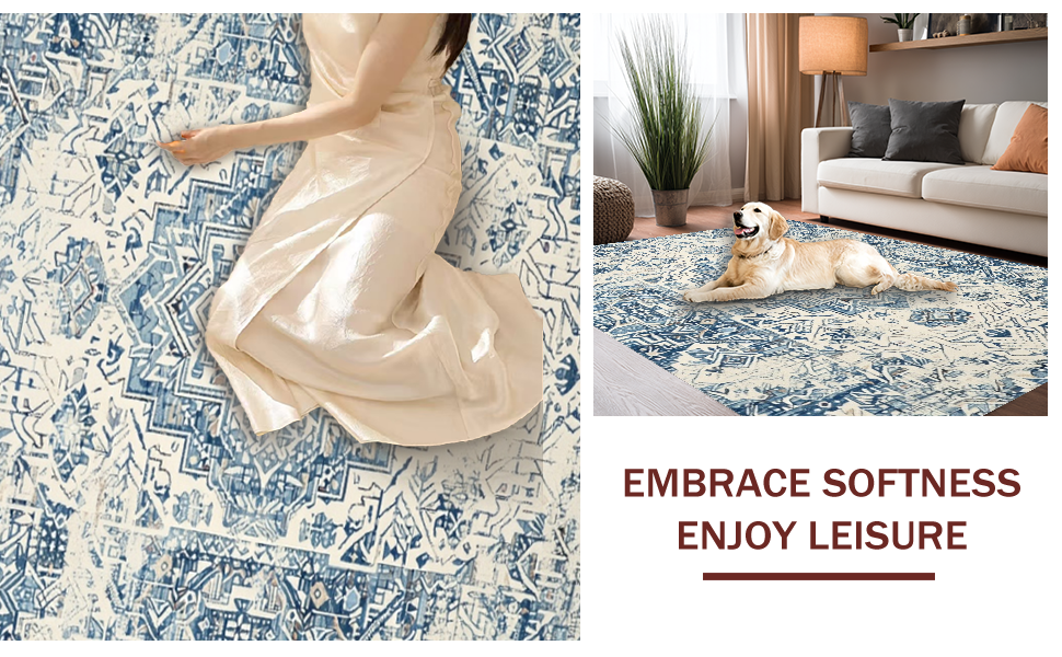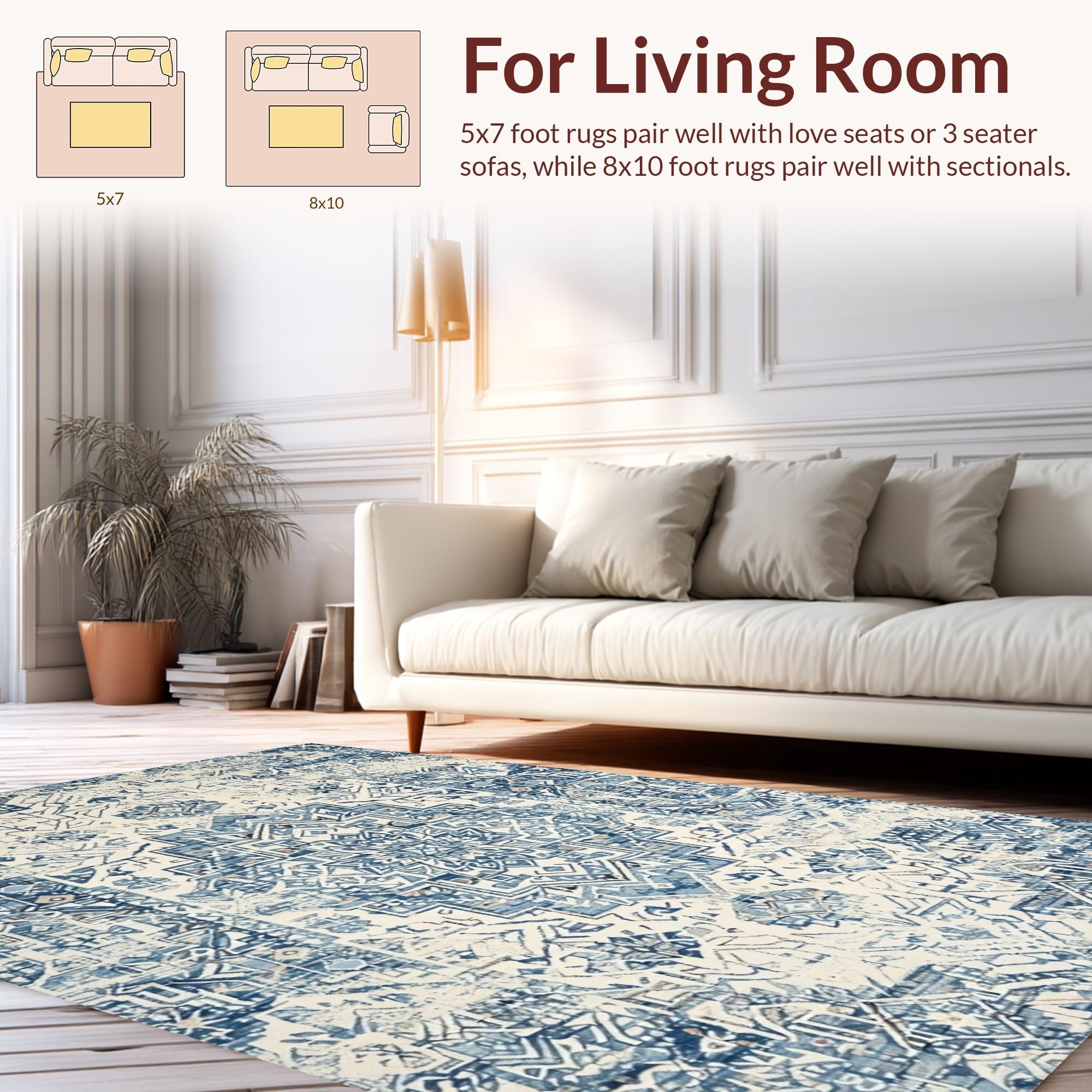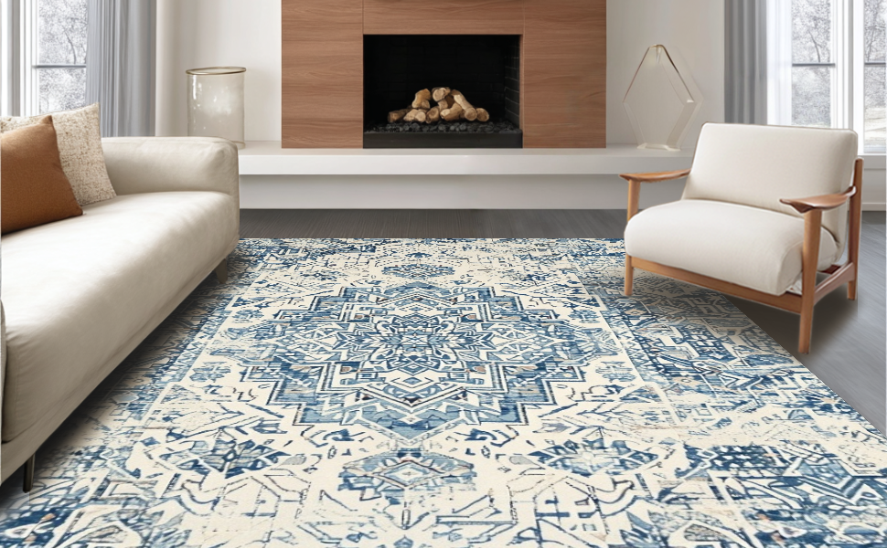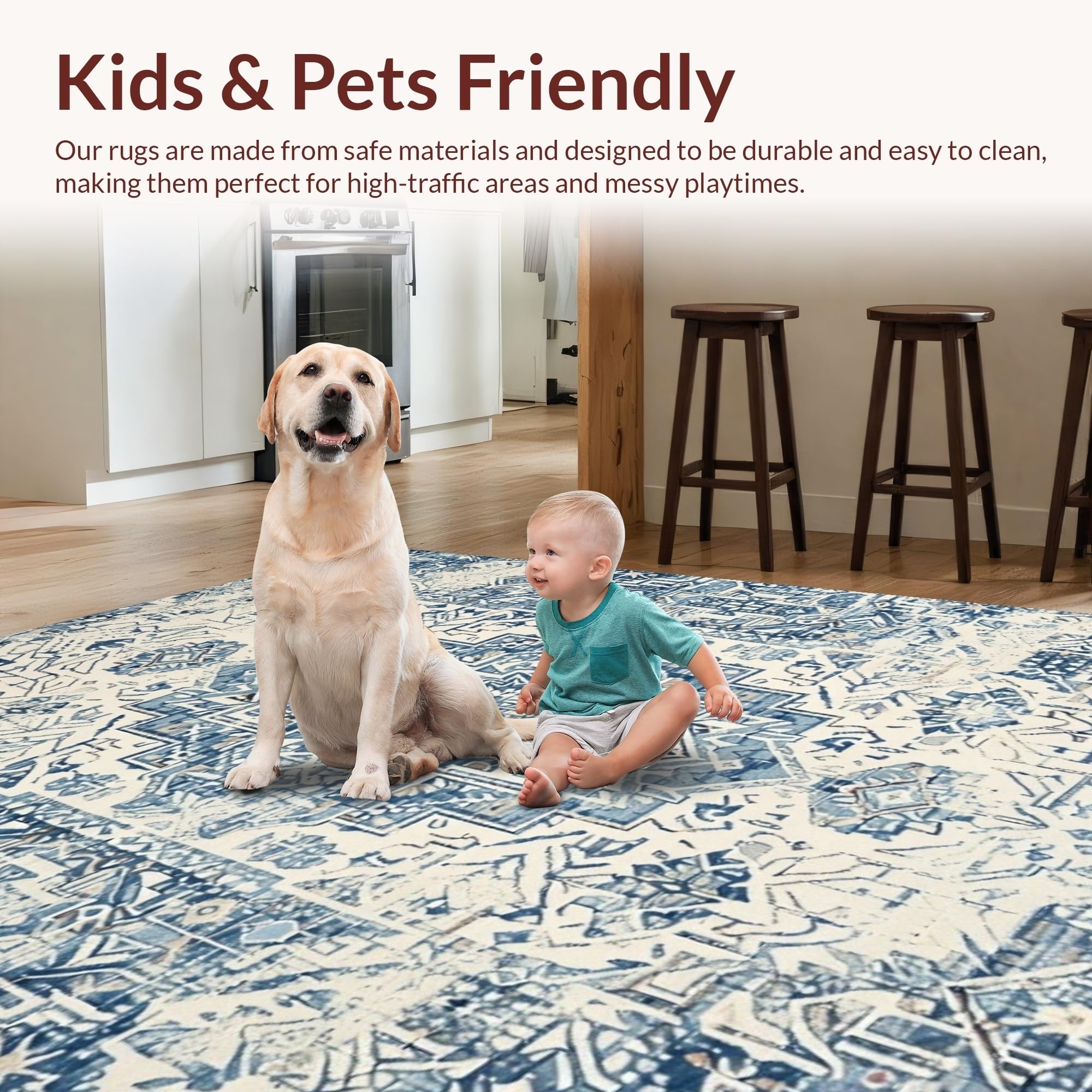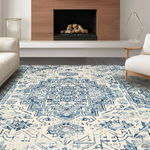 Ultra Soft Area Rug, Non Slip, Stain Resistant, Washable Area Rugs for Living Room, Bedroom, Vibrant Vintage Ogee Motif(Blue) Overview:
