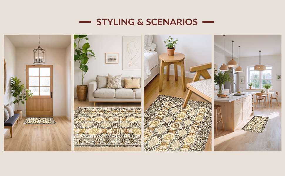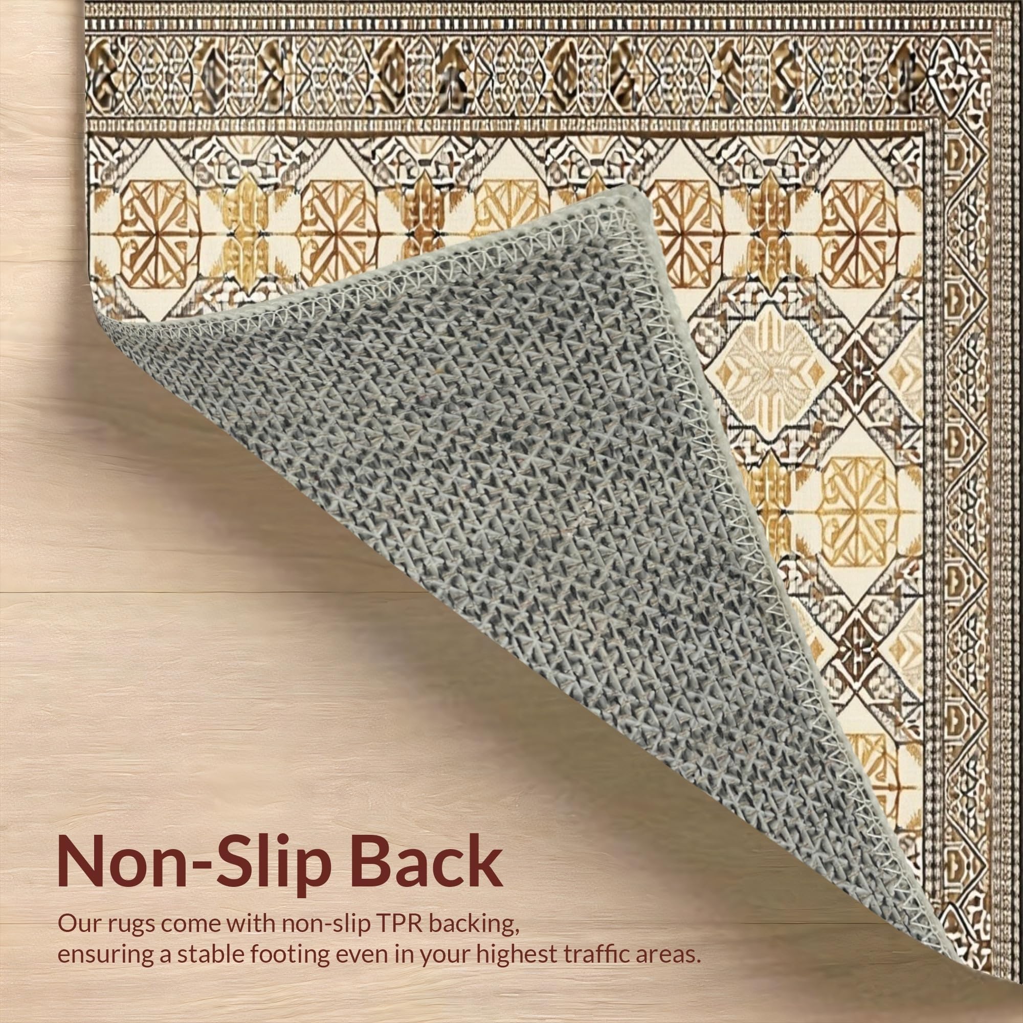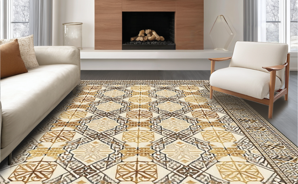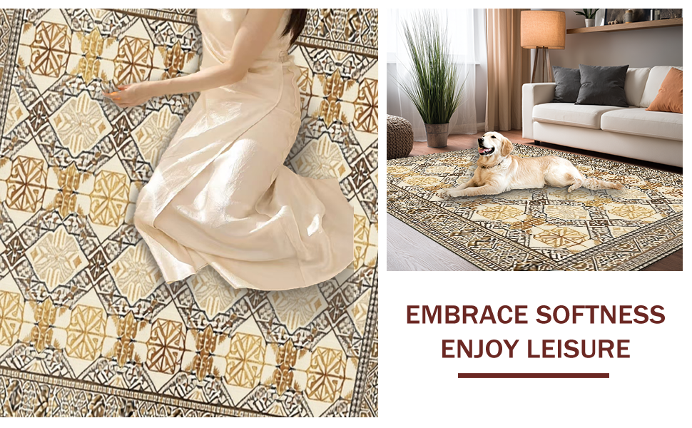Ultra Soft Area Rug, Non Slip, Stain Resistant, Washable Area Rugs for Living Room, Bedroom, Vibrant Warm Trellis Aesthetic(Beige) Overview: