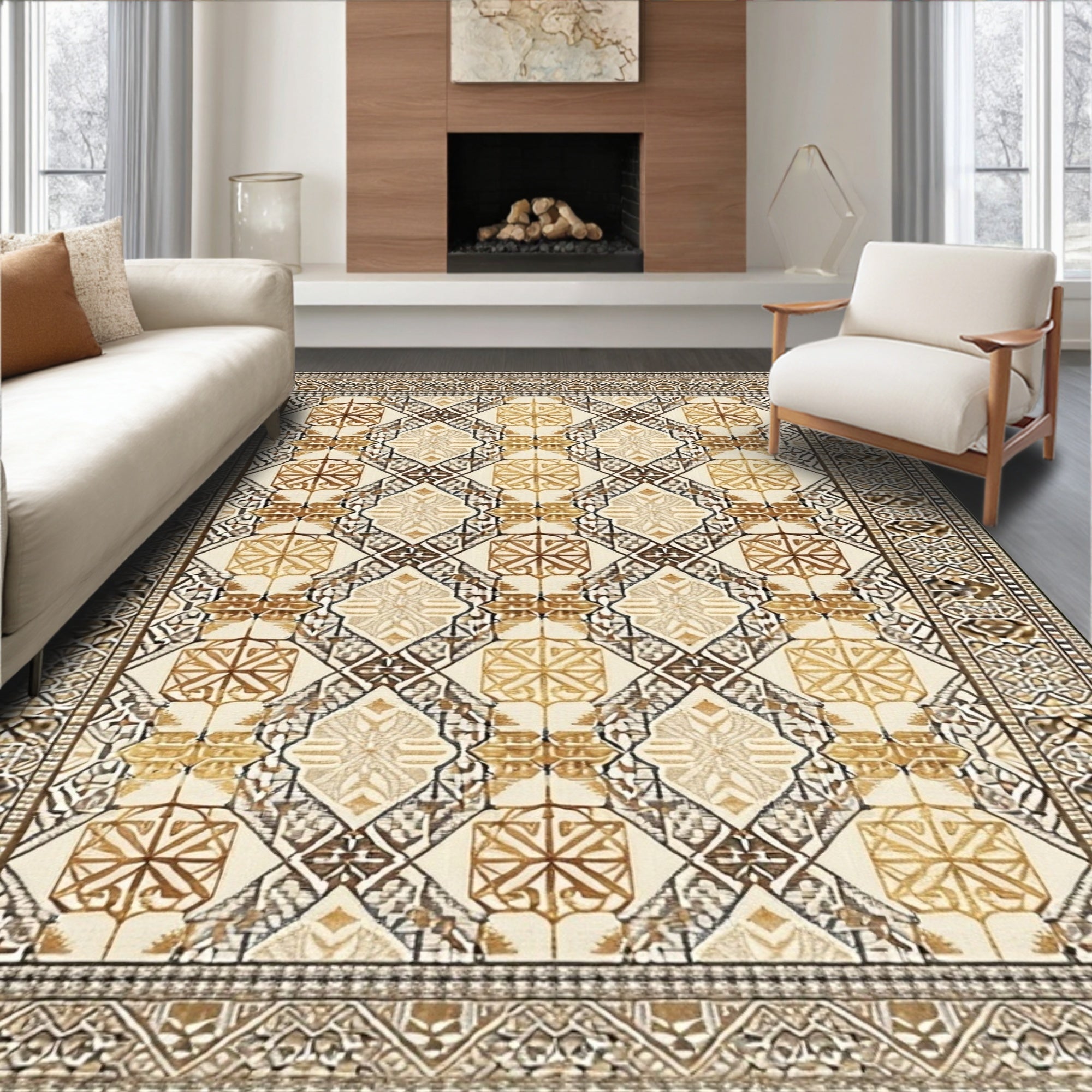 Flatwoven High Traffic Area Rug, Vibrant Warm Trellis Aesthetic, Non Slip, Stain Resistant, Washable Area Rugs for Living Room, Bedroom (Beige) Overview: