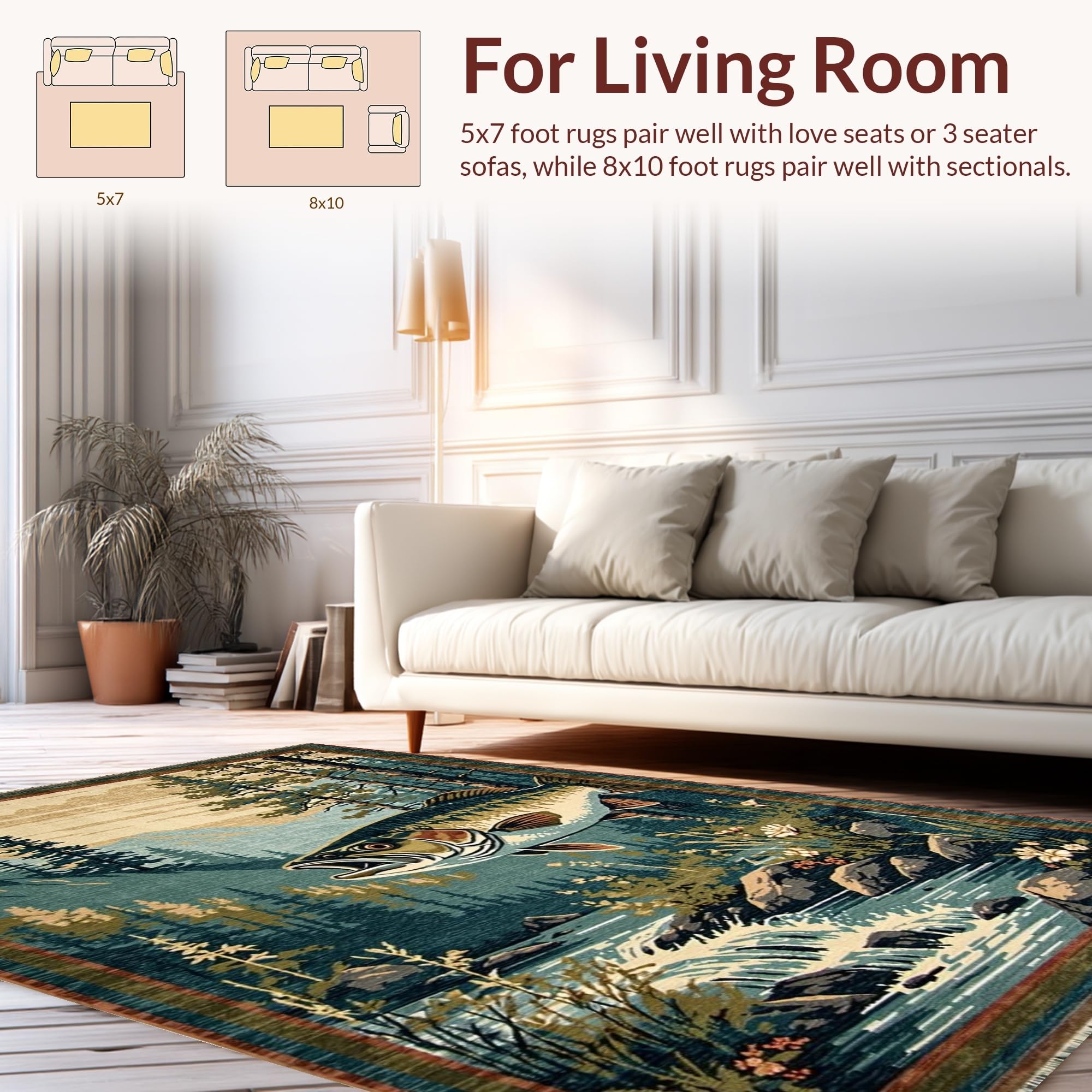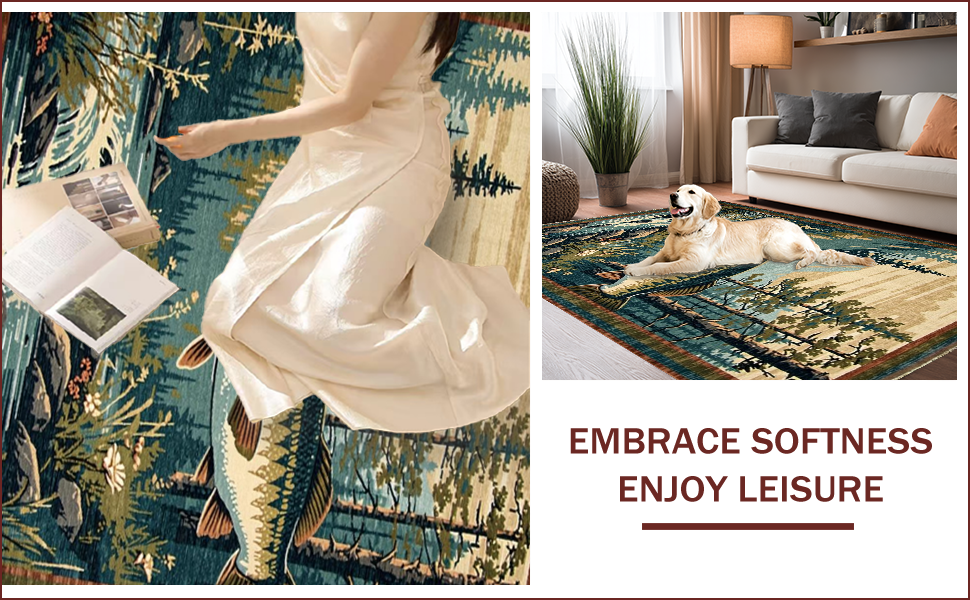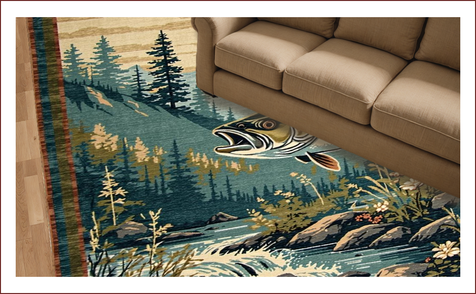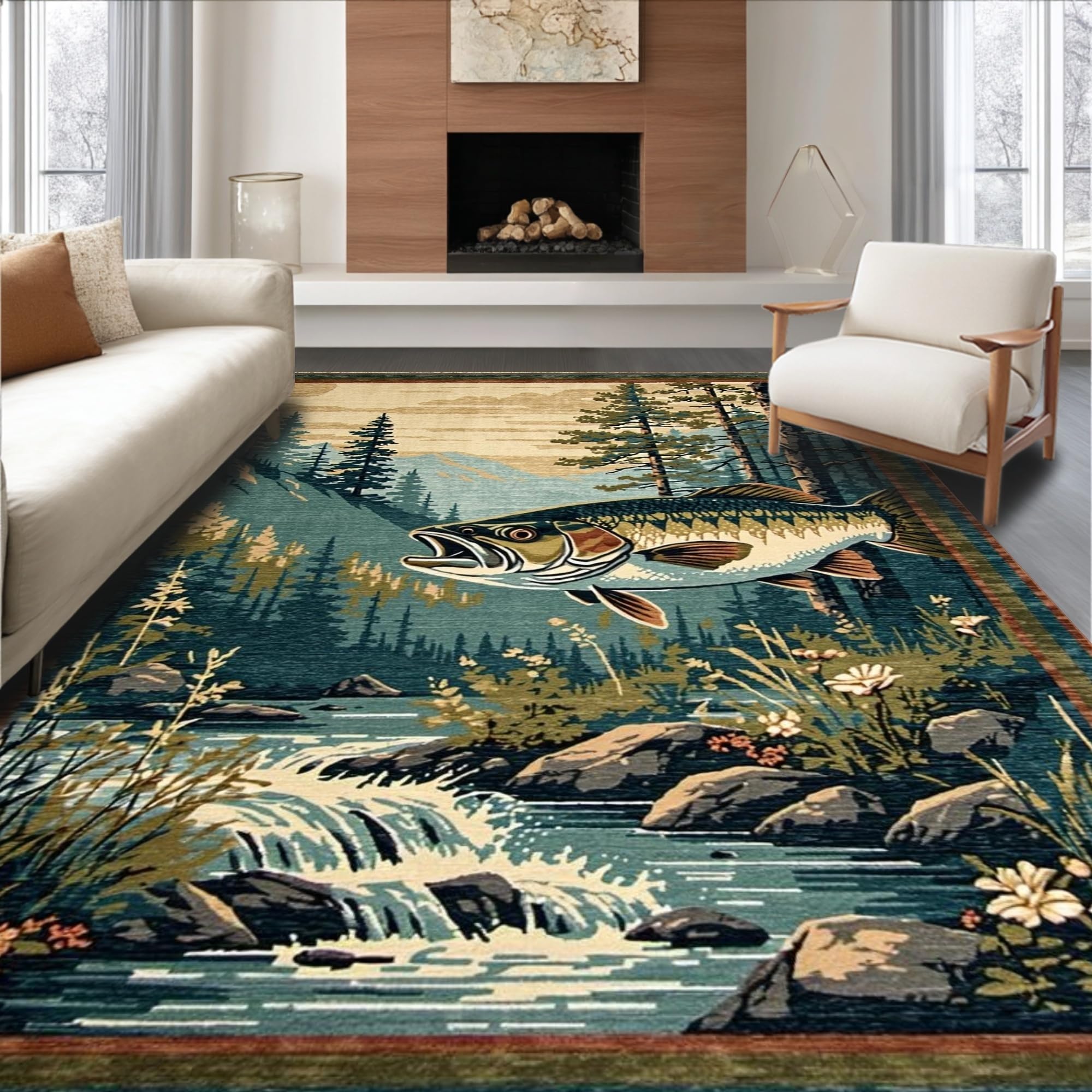 Ultra Soft Area Rug, Non Slip, Stain Resistant, Washable Area Rugs for Living Room, Bedroom, Vibrant Wildlife Scene with Bass(Brown) Overview: