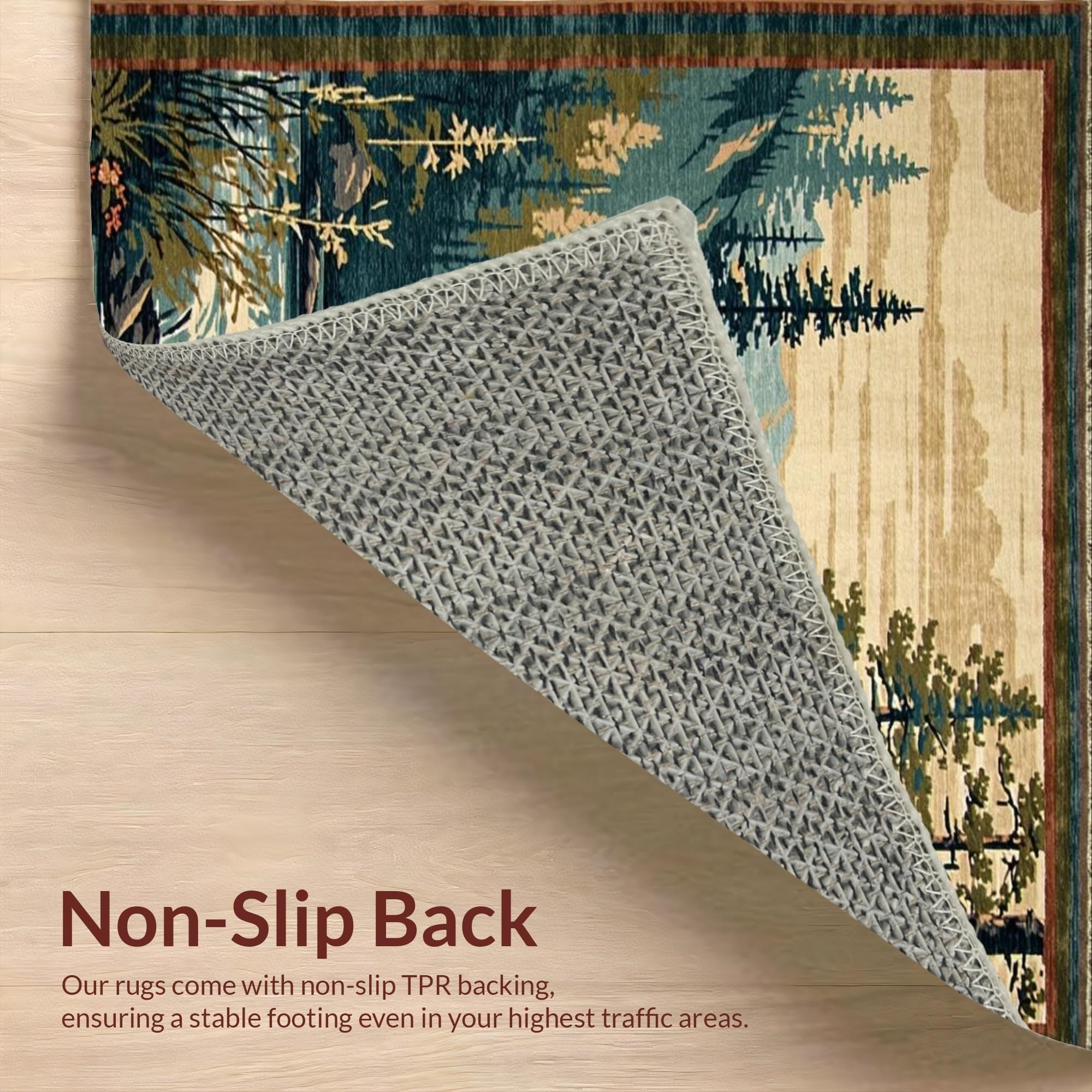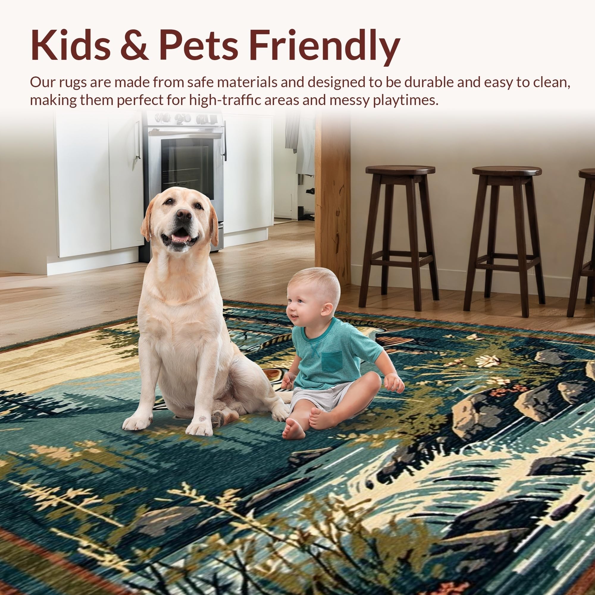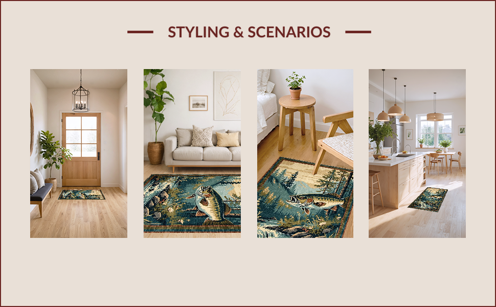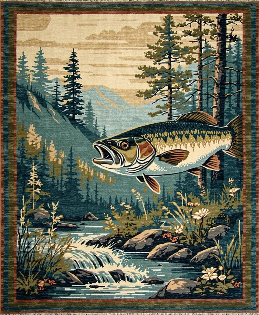 Ultra Soft Area Rug, Non Slip, Stain Resistant, Washable Area Rugs for Living Room, Bedroom, Vibrant Wildlife Scene with Bass(Brown) Overview: