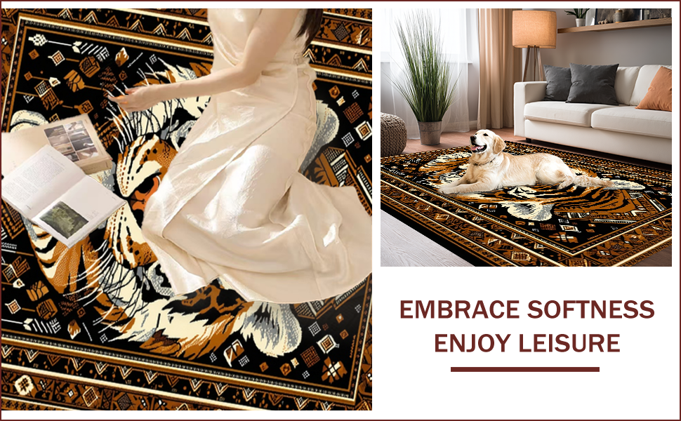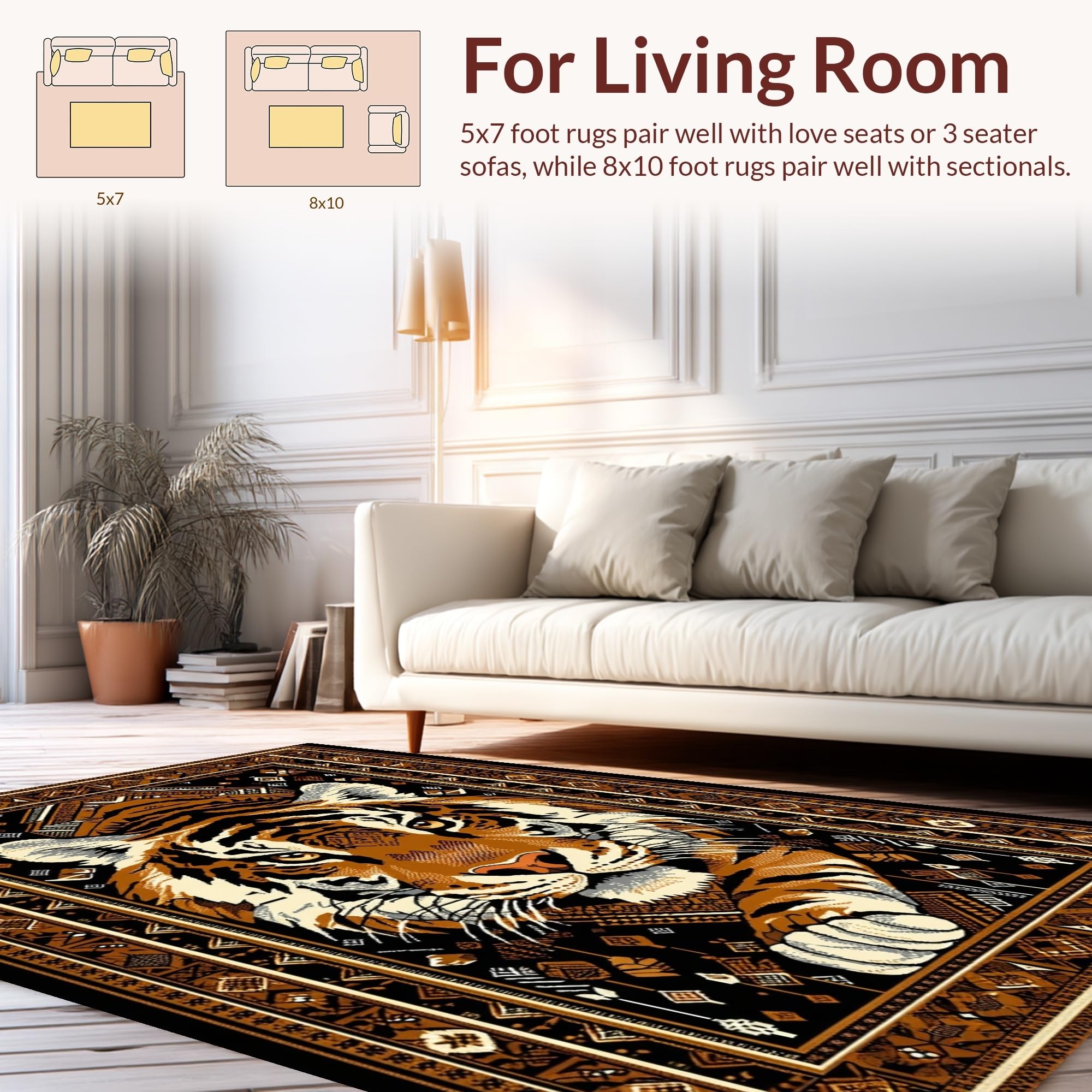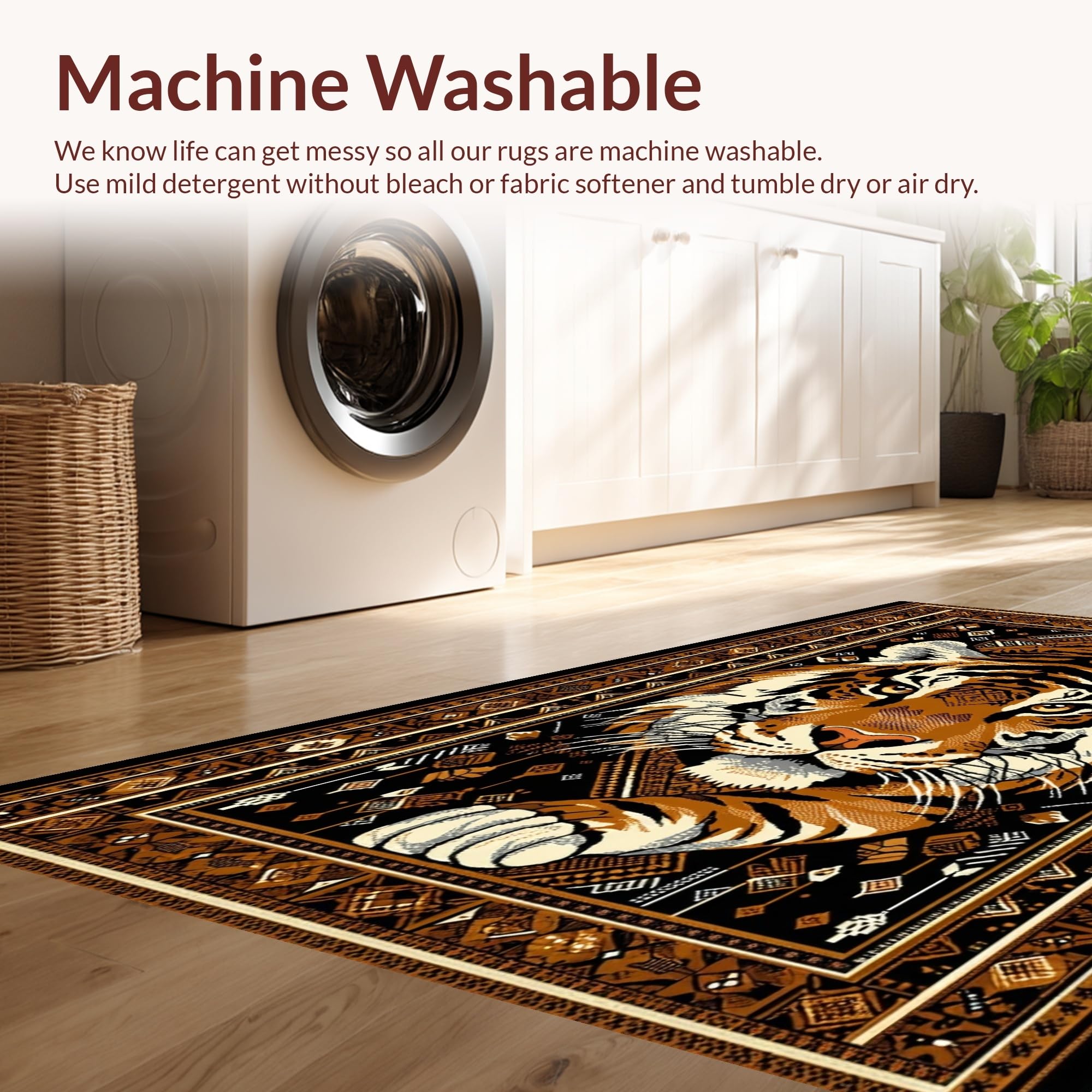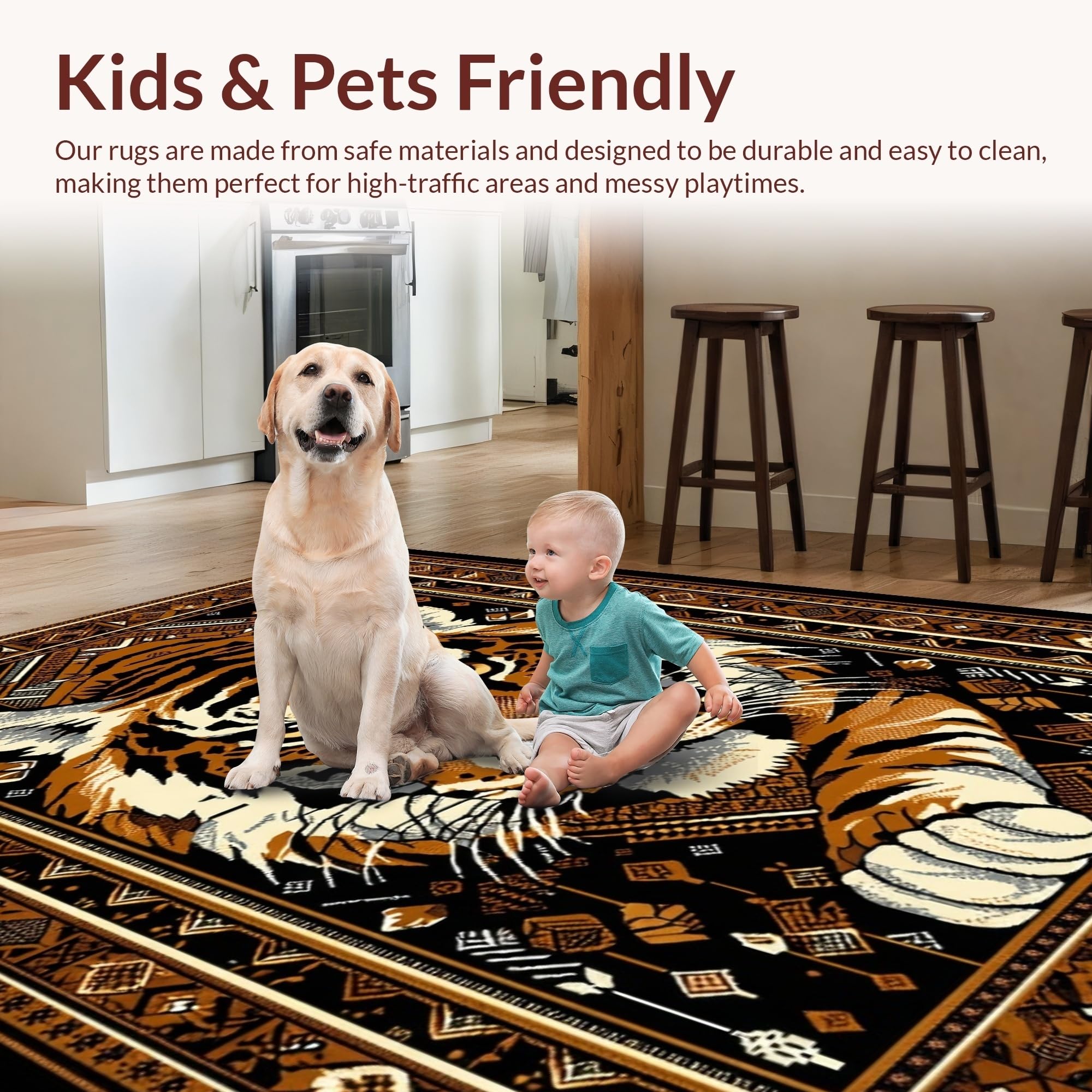 Ultra Soft Area Rug, Non Slip, Stain Resistant, Washable Area Rugs for Living Room, Bedroom, Vibrant Youthful Animal Motif(Brown) Overview: