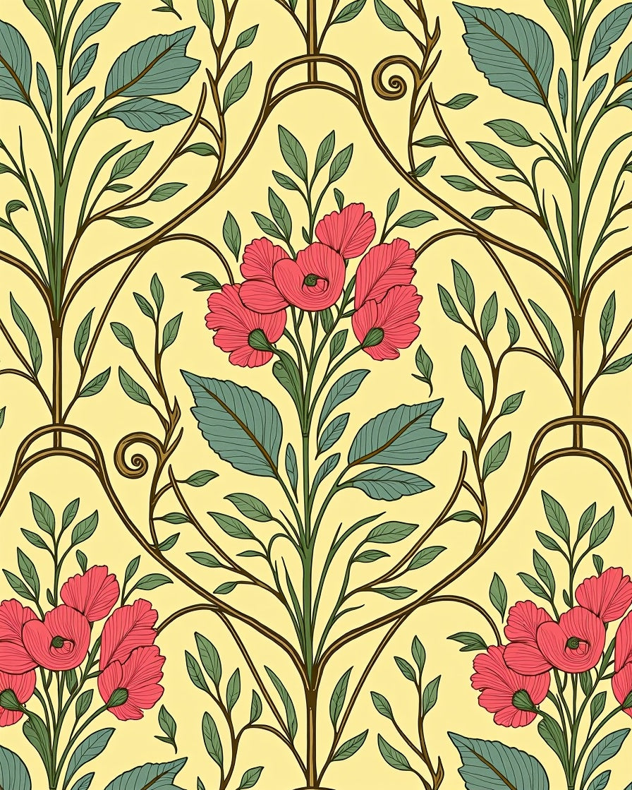 Victorian Garden Trellis Print with Flourishing Wildflowers(Yellow)