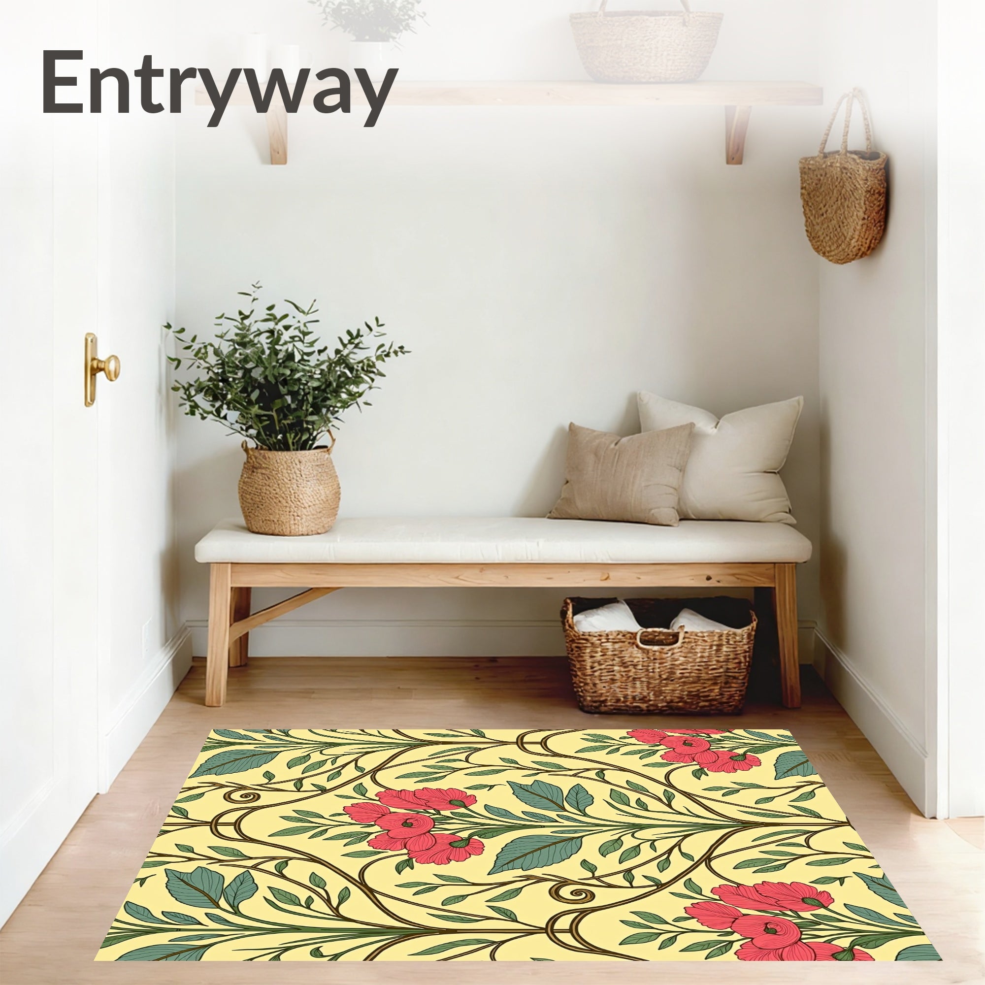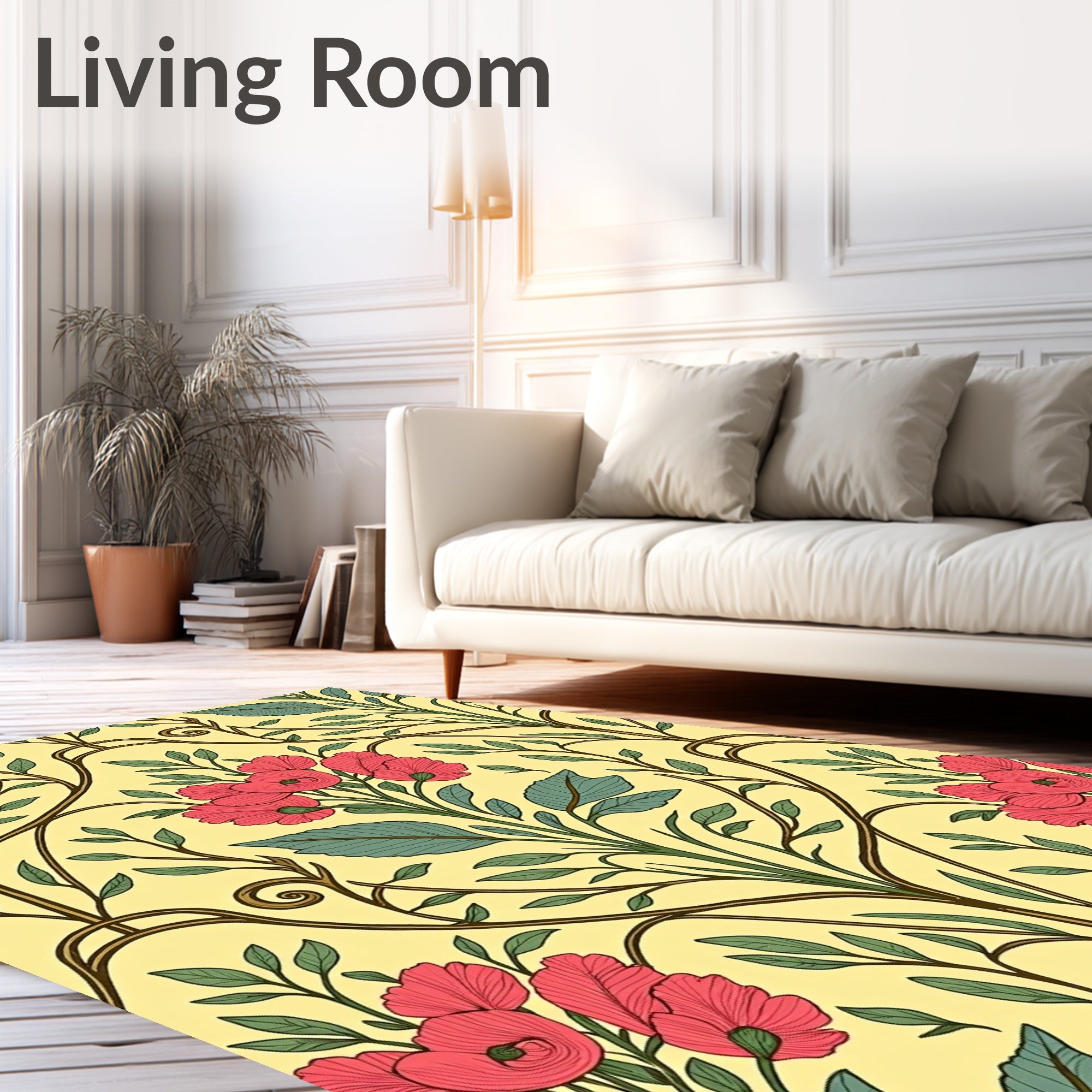 Ultra Soft Area Rug, Non Slip, Stain Resistant, Washable Area Rugs for Living Room, Bedroom, Victorian Garden Trellis Print with Flourishing Wildflowers(Yellow) Overview: