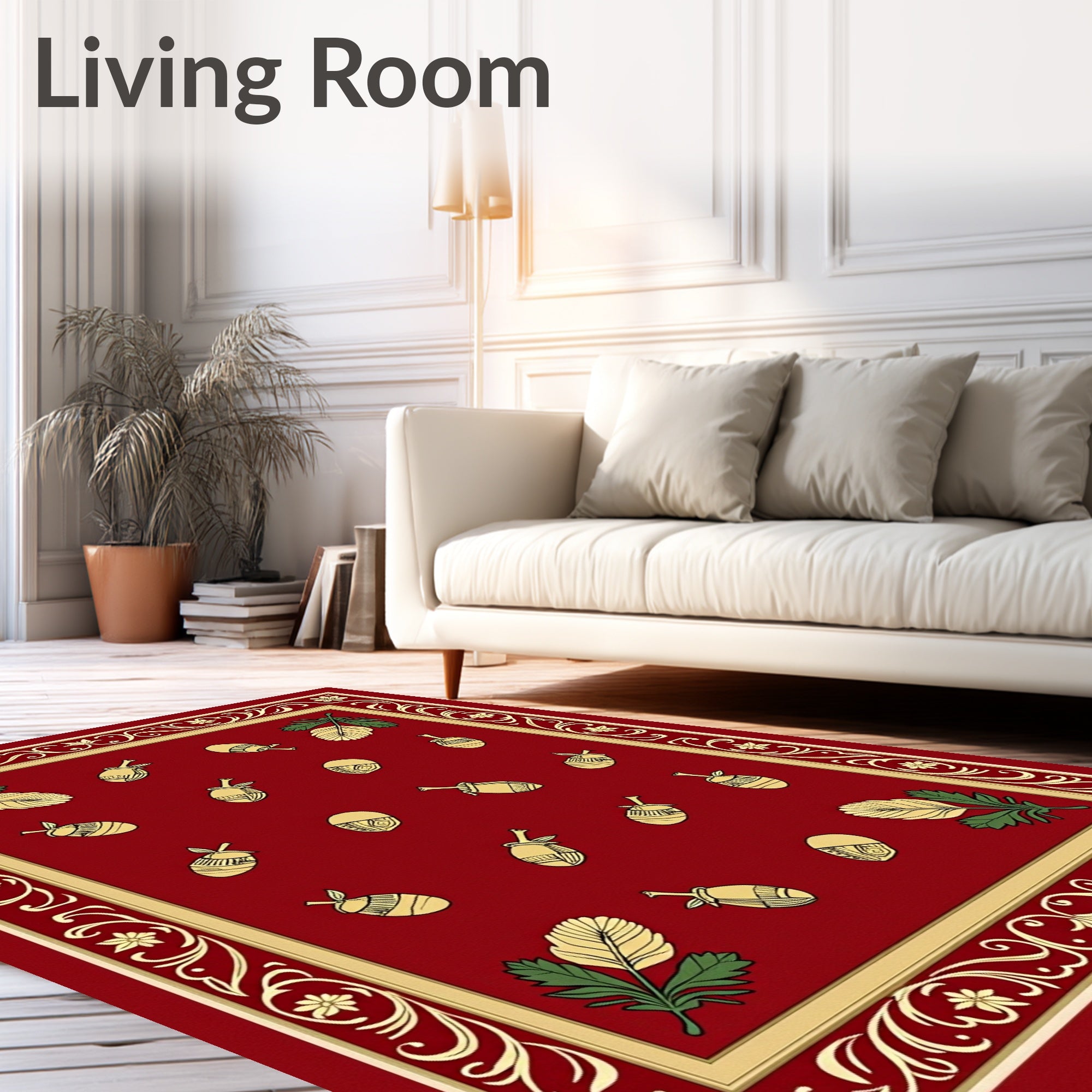 Ultra Soft Area Rug, Non Slip, Stain Resistant, Washable Area Rugs for Living Room, Bedroom, Victorian Holiday Botanical Treasure Luxury Surface(Red) Overview: