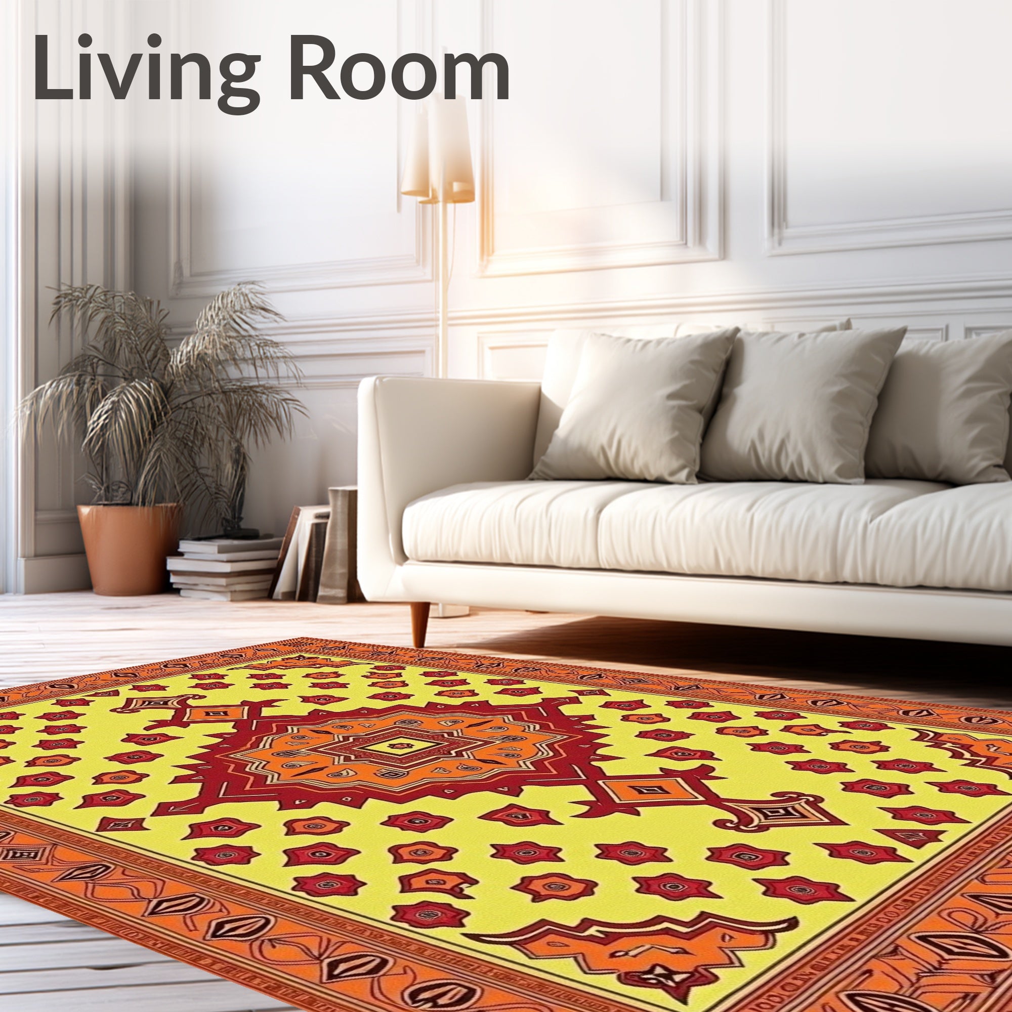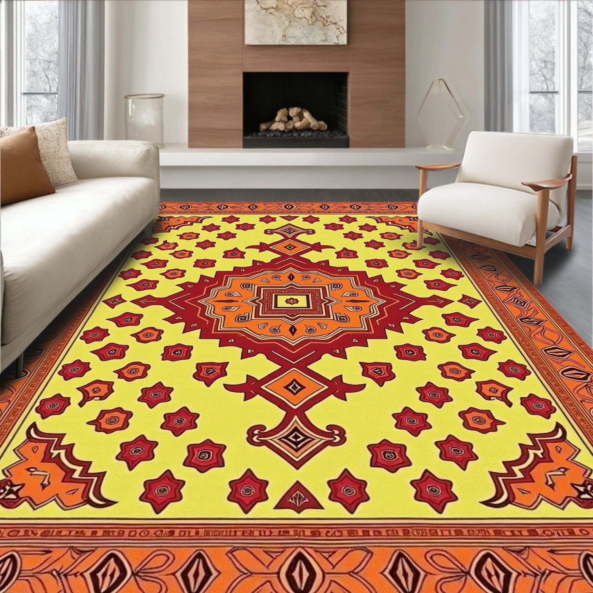 Ultra Soft Area Rug, Non Slip, Stain Resistant, Washable Area Rugs for Living Room, Bedroom, Vintage Artisan Aesthetic Tapestry(Yellow) Overview: