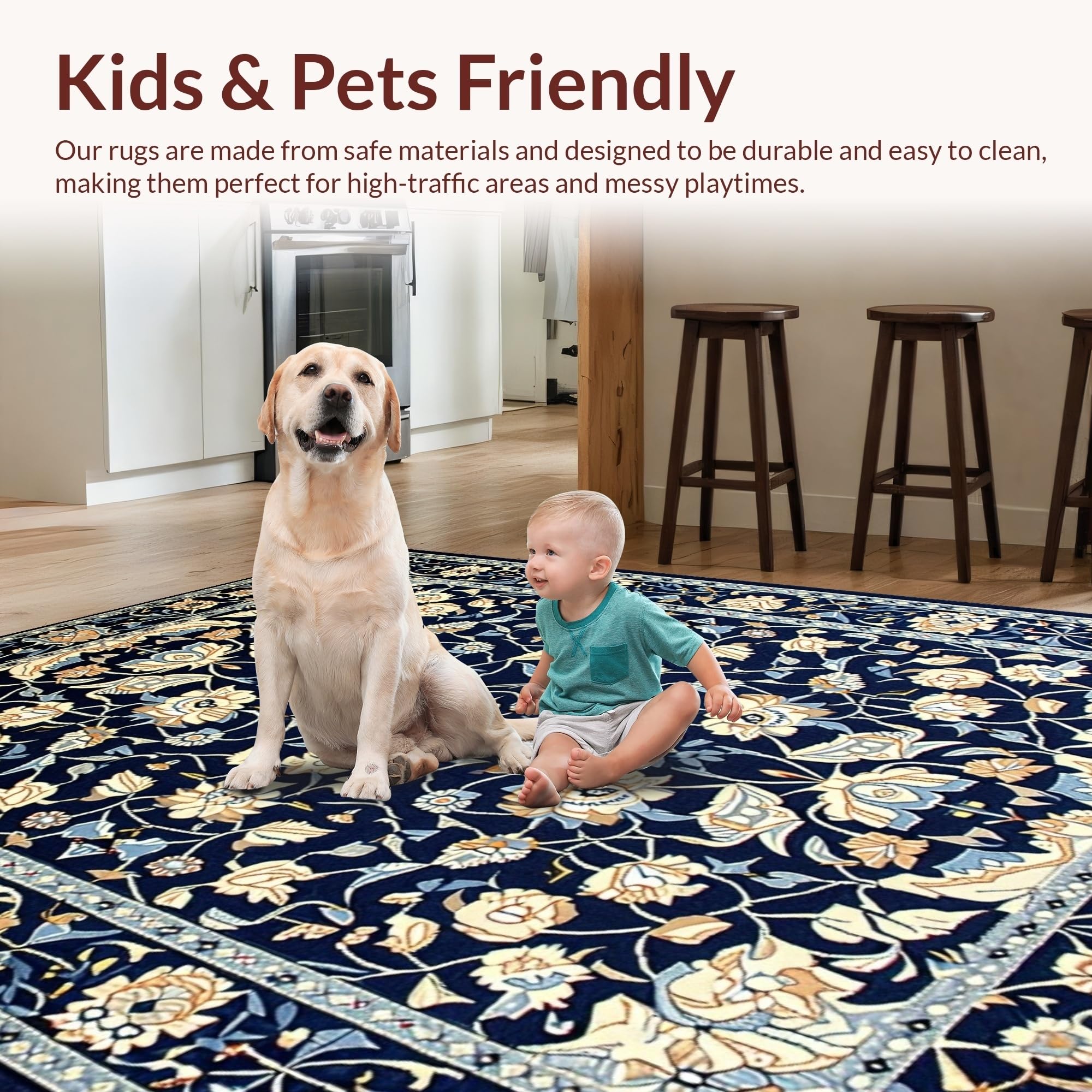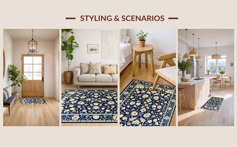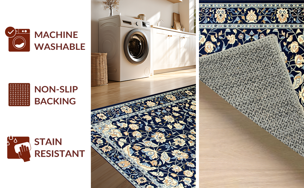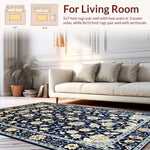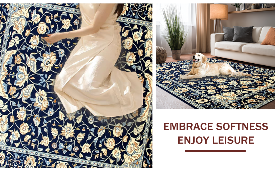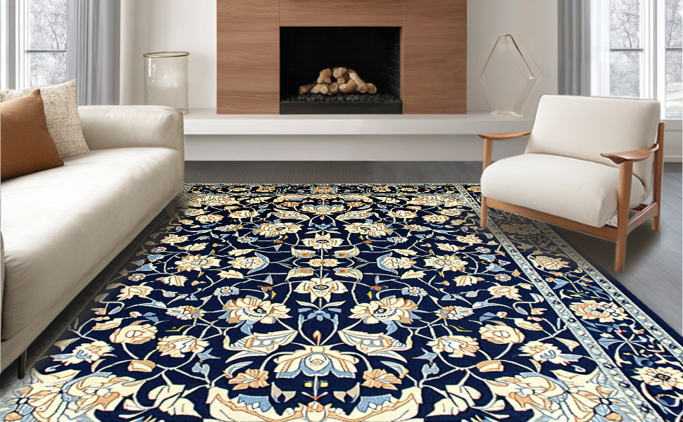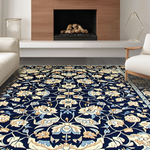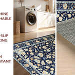 Ultra Soft Area Rug, Non Slip, Stain Resistant, Washable Area Rugs for Living Room, Bedroom, Vintage Blue Botanical Artistry(Blue) Overview: