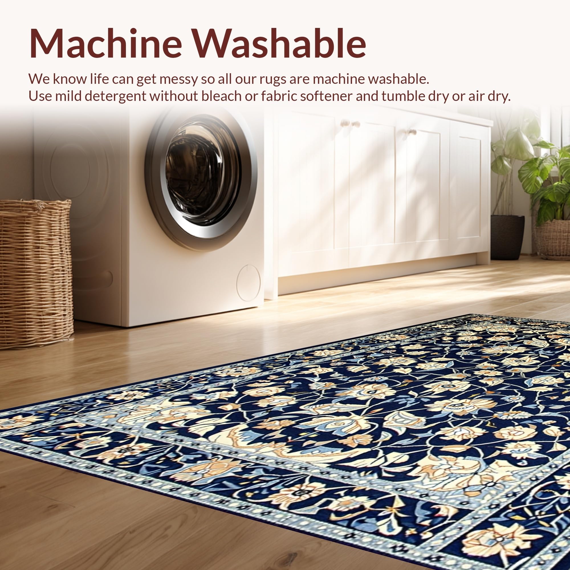 - Machine Washable: Our rugs can be easily thrown in the wash machine.