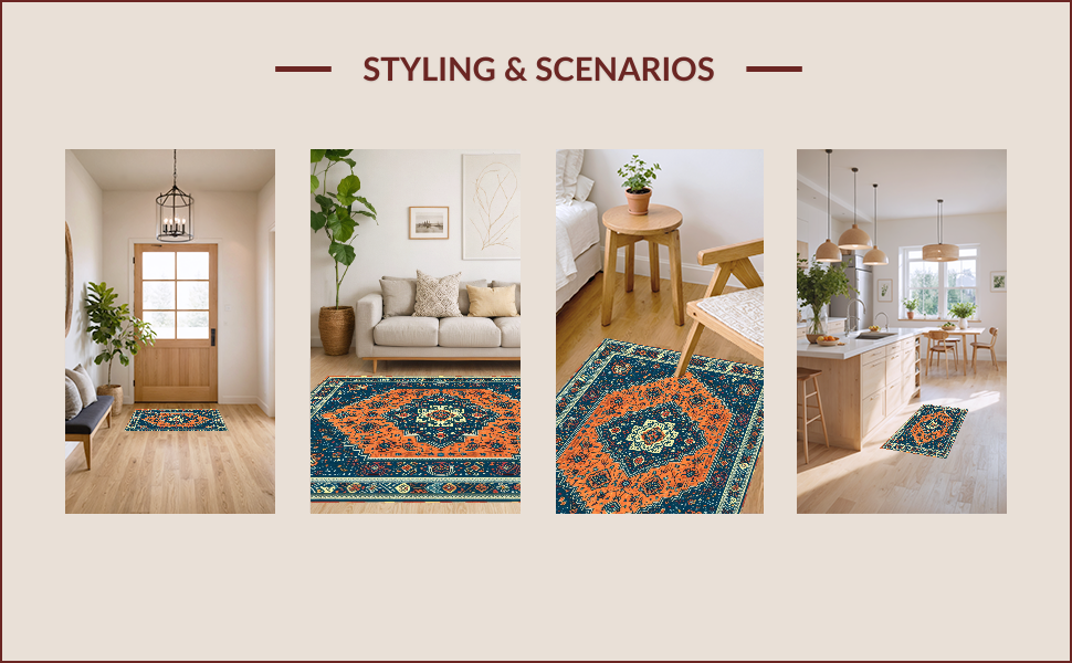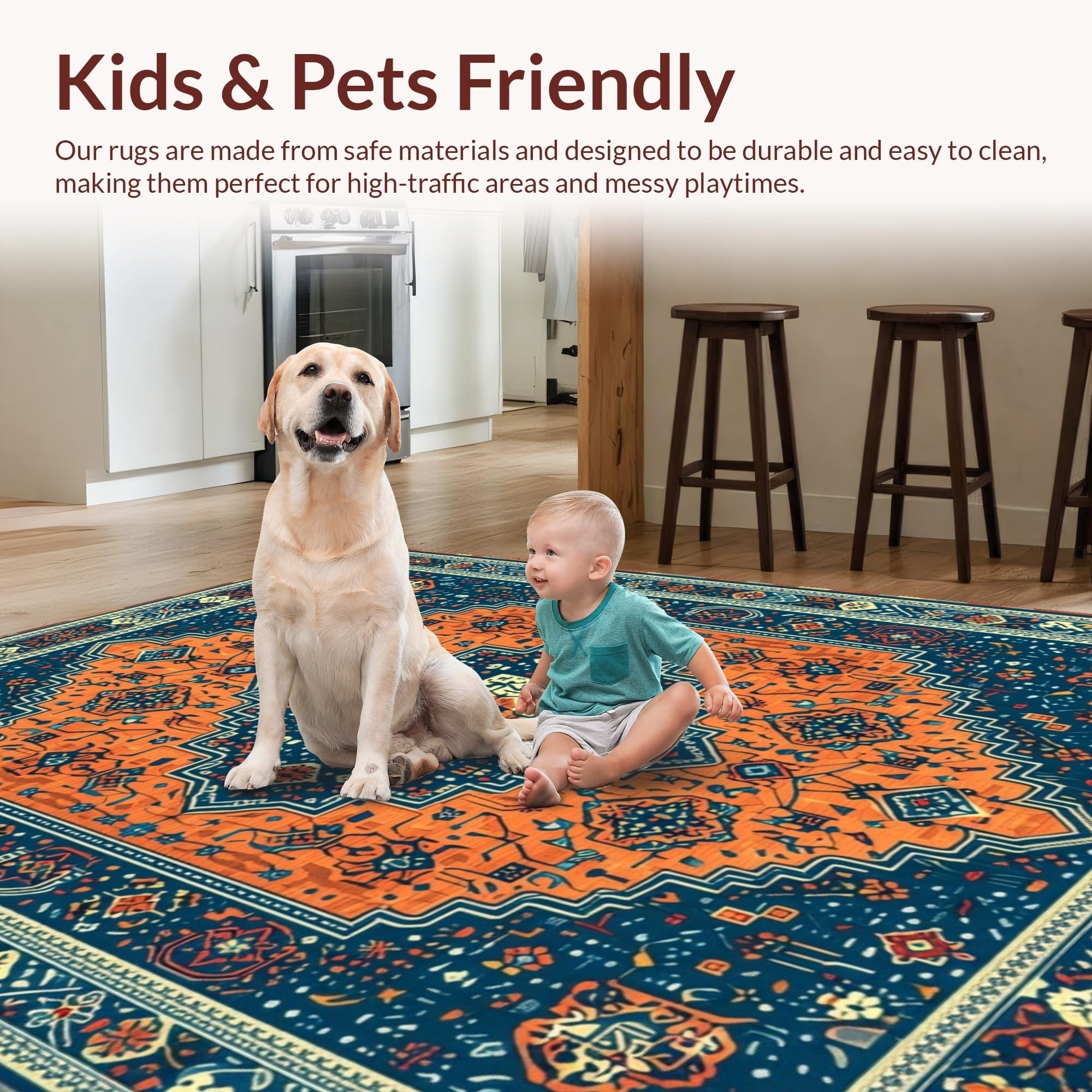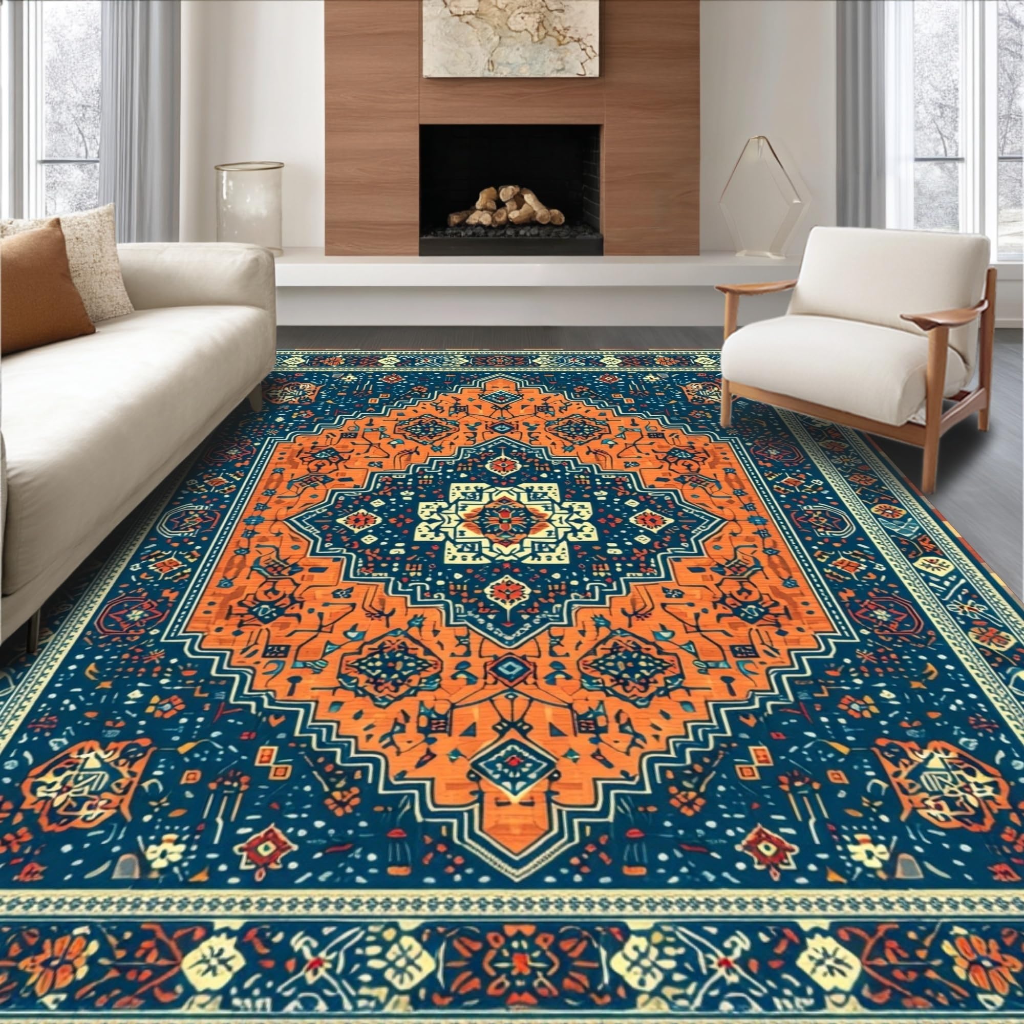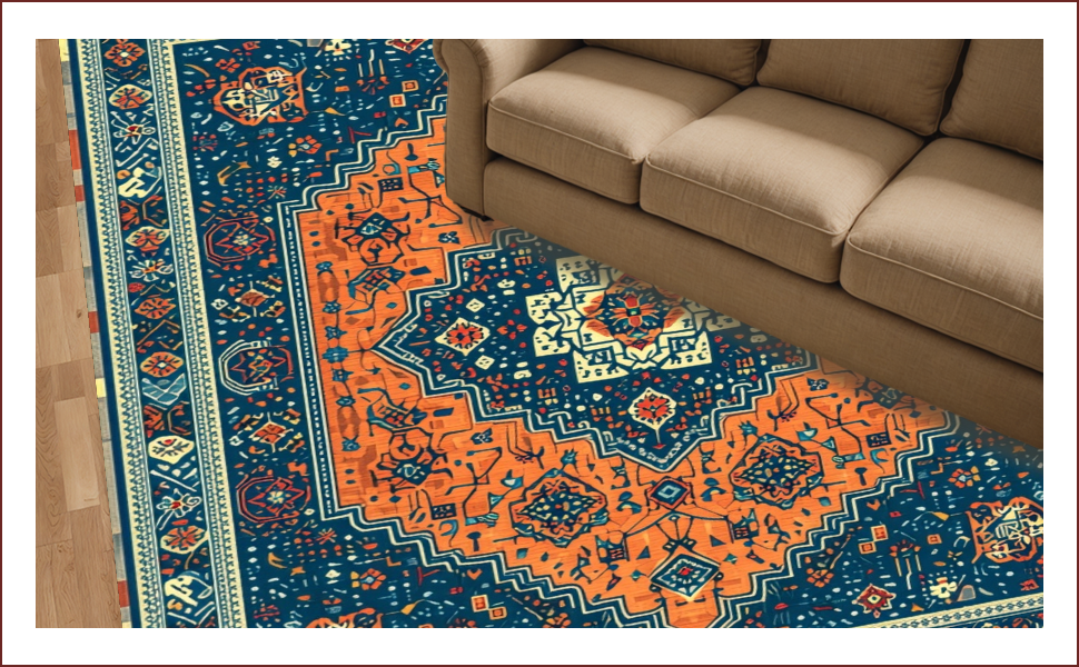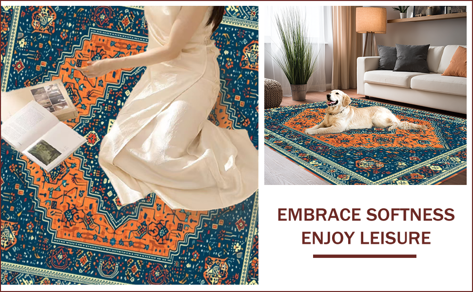 Ultra Soft Area Rug, Non Slip, Stain Resistant, Washable Area Rugs for Living Room, Bedroom, Vintage Boho Sky Home Office Non-Shedding Carpet(Blue) Overview: