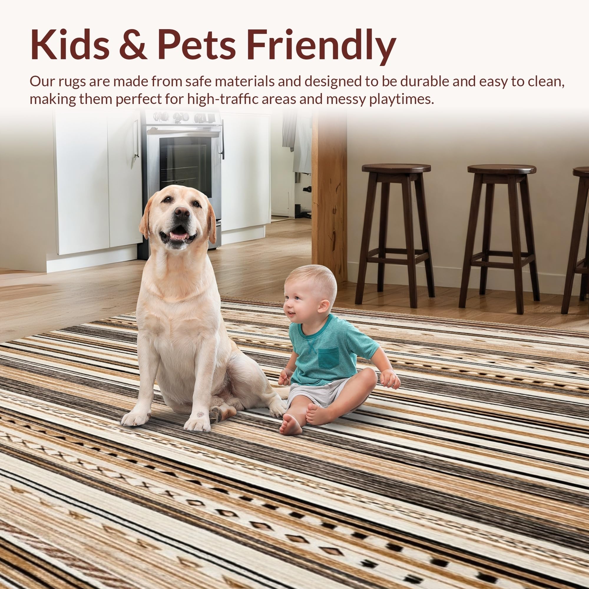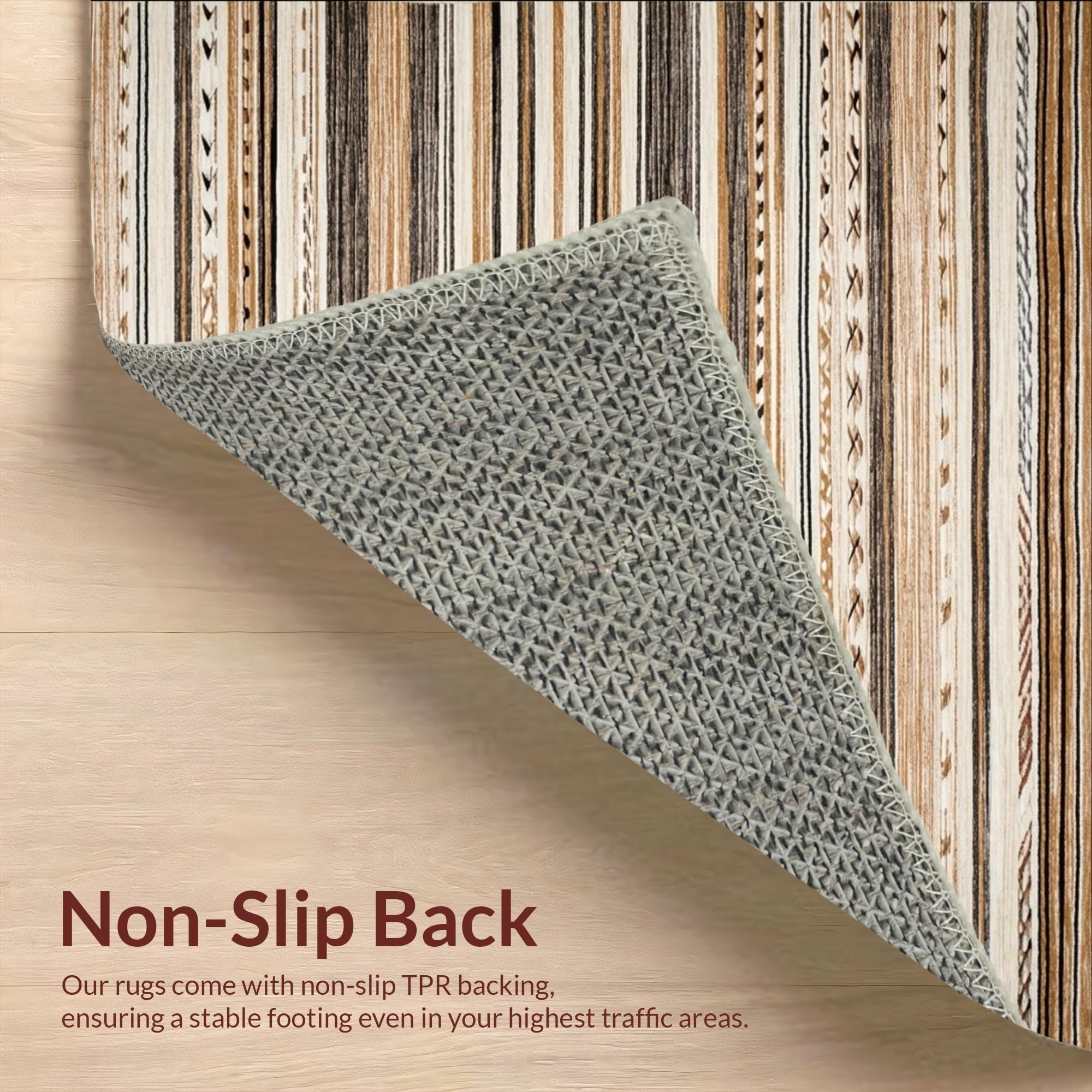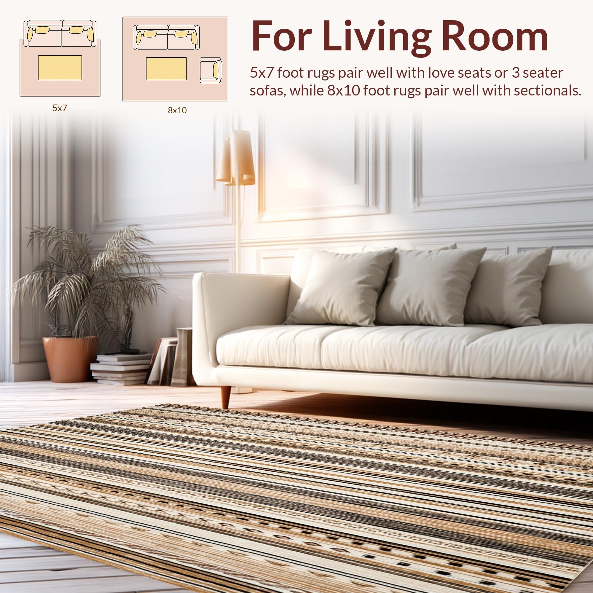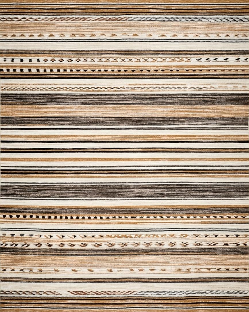 Ultra Soft Area Rug, Non Slip, Stain Resistant, Washable Area Rugs for Living Room, Bedroom, Vintage Boho Stripe Area(Brown) Overview: