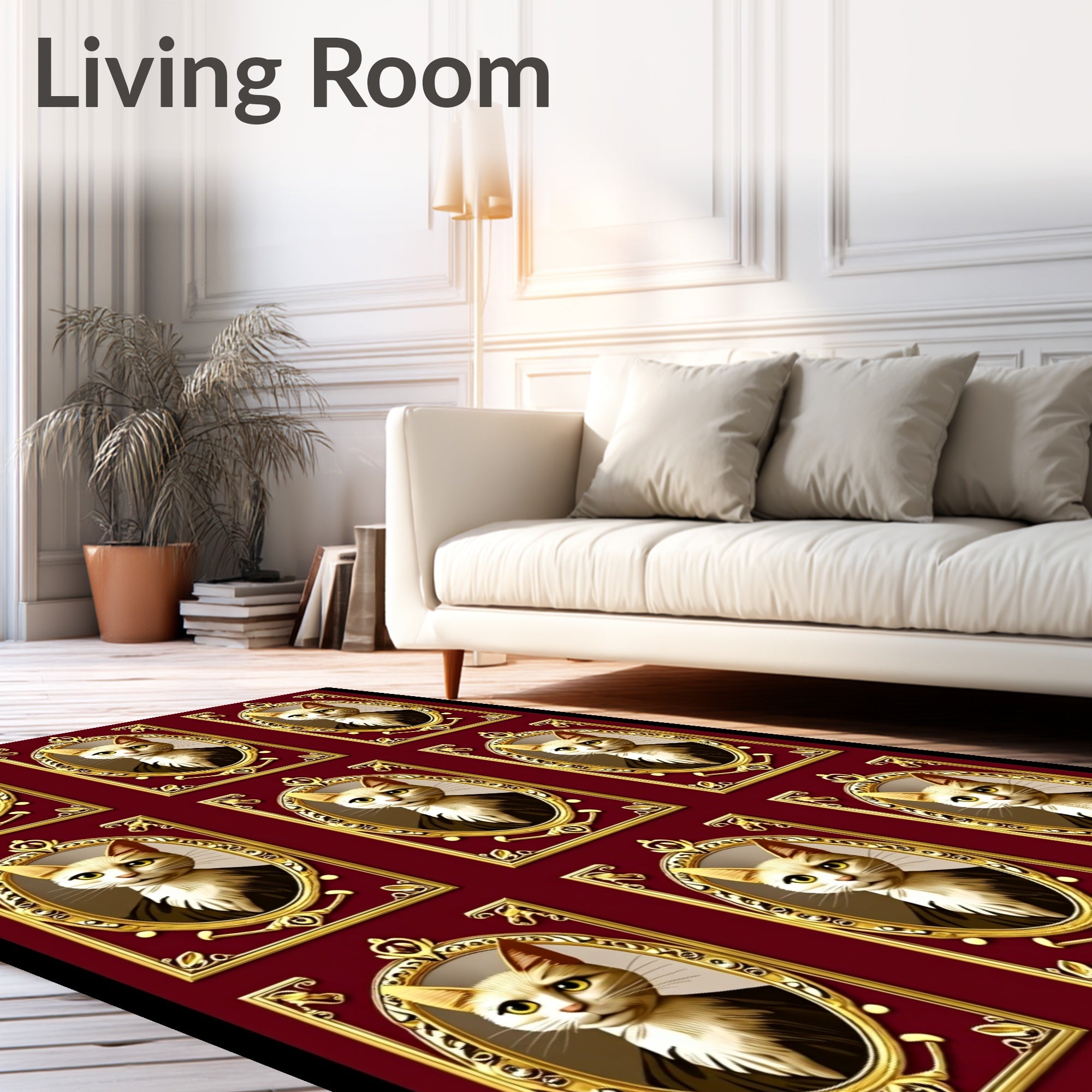 Ultra Soft Area Rug, Non Slip, Stain Resistant, Washable Area Rugs for Living Room, Bedroom, Vintage Cat Cameo Enhanced with Glowing Perimeter LED Strips(Red) Overview: