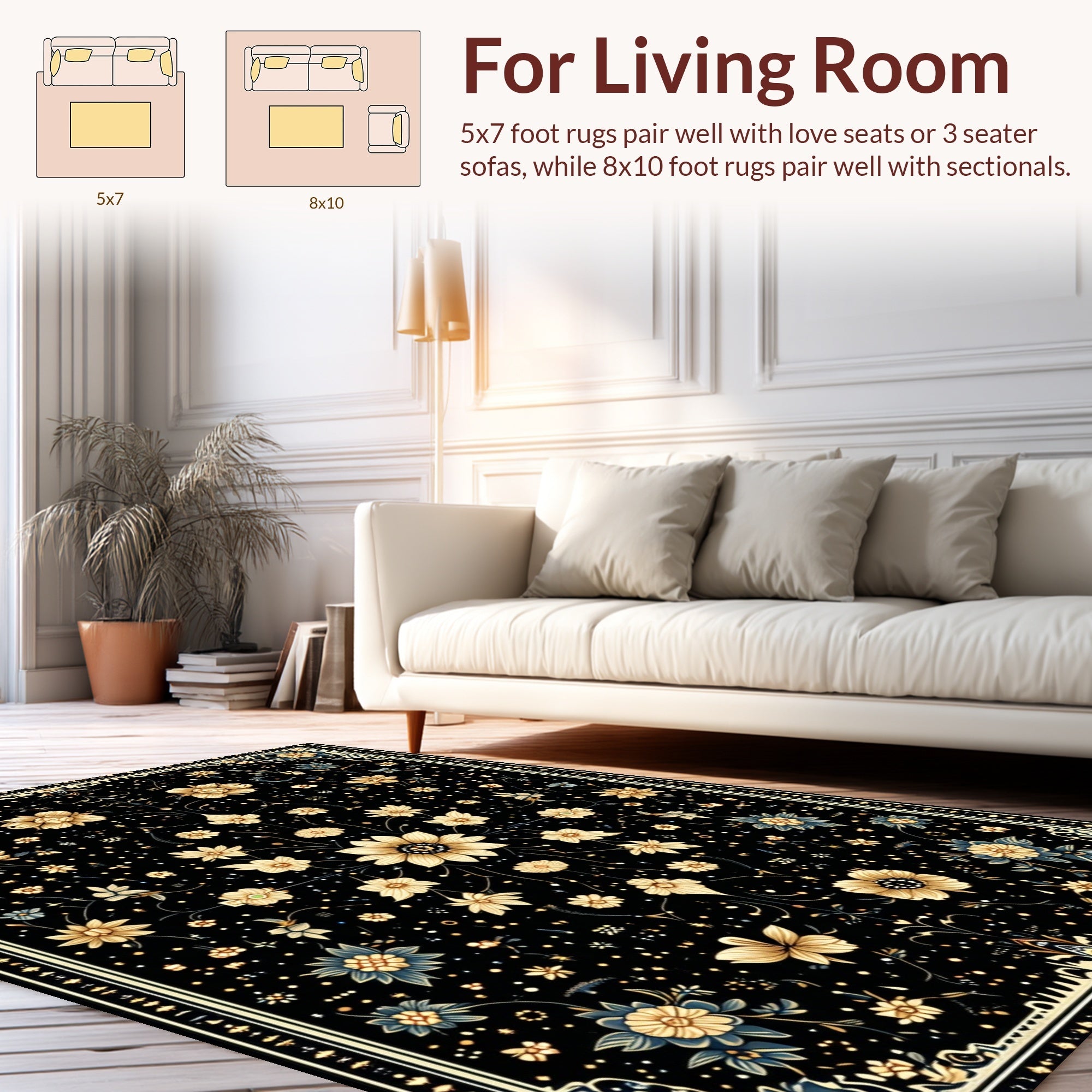 Ultra Soft Area Rug, Non Slip, Stain Resistant, Washable Area Rugs for Living Room, Bedroom, Vintage Celestial Moth(Black) Overview: