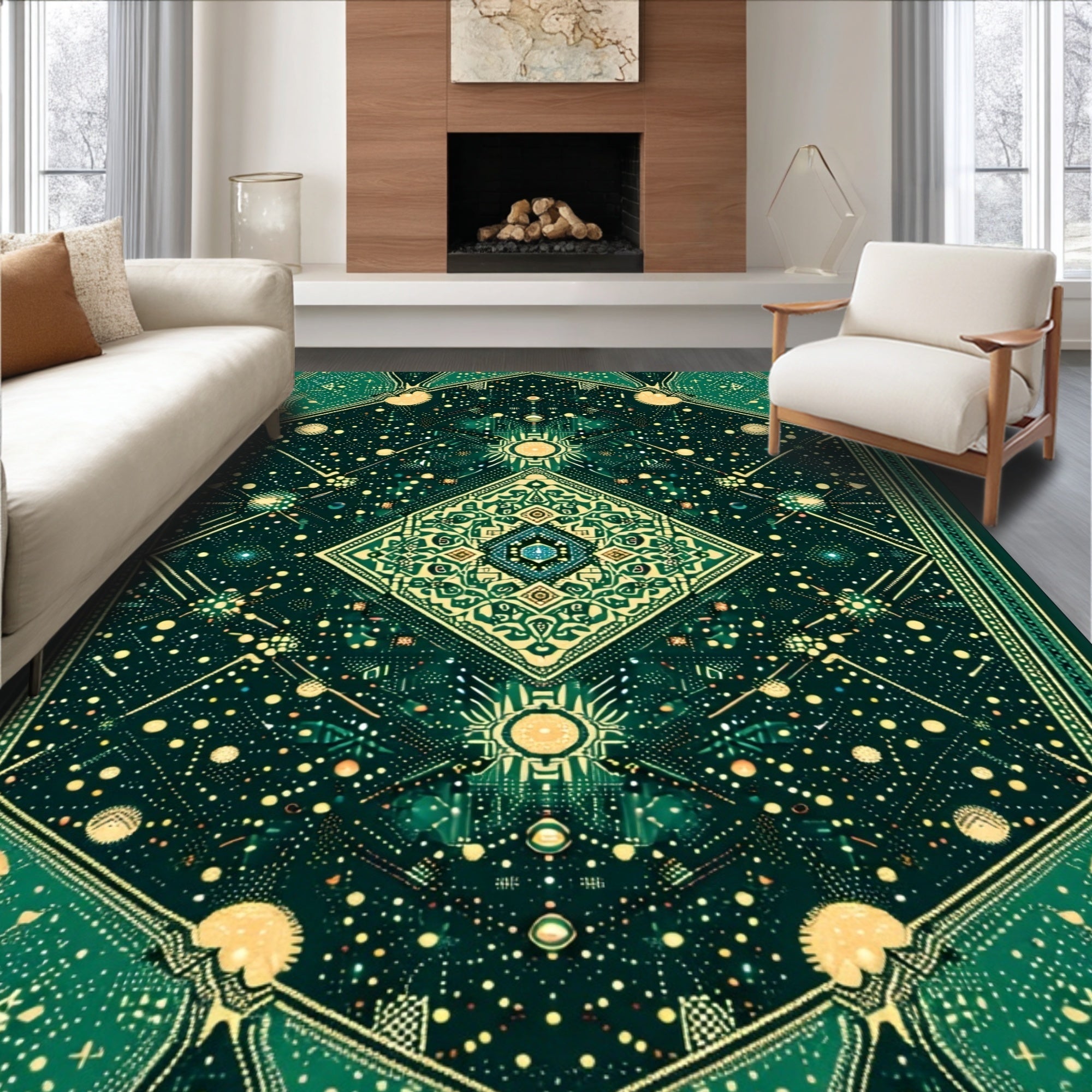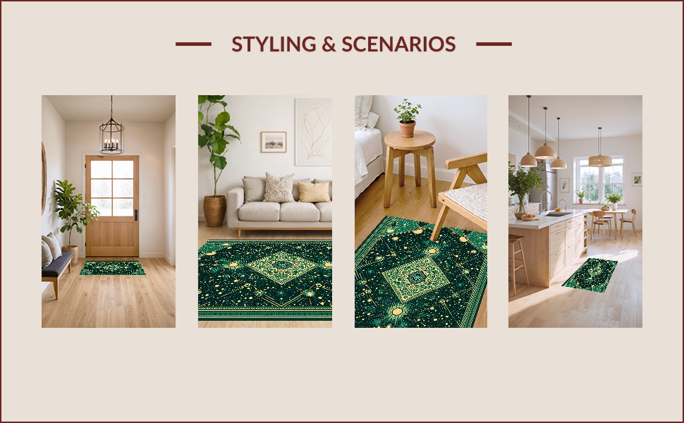Ultra Soft Area Rug, Non Slip, Stain Resistant, Washable Area Rugs for Living Room, Bedroom, Vintage Celestial Zodiac(Green) Overview: