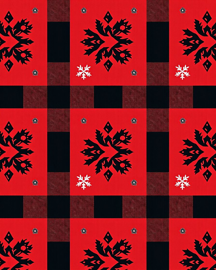 Vintage Checkered with Festive Holiday Motifs(Red)