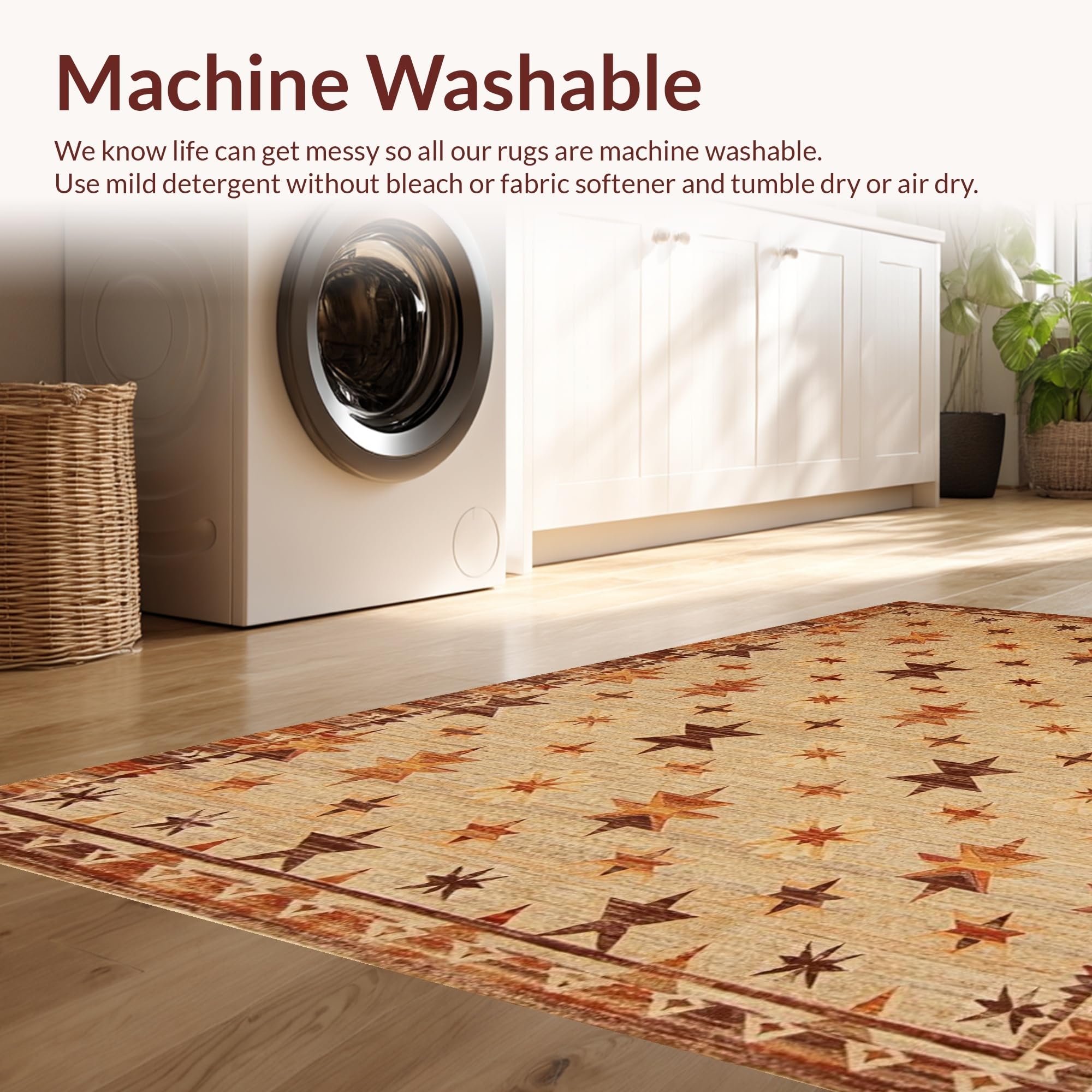 - Machine Washable: Our rugs can be easily thrown in the wash machine.