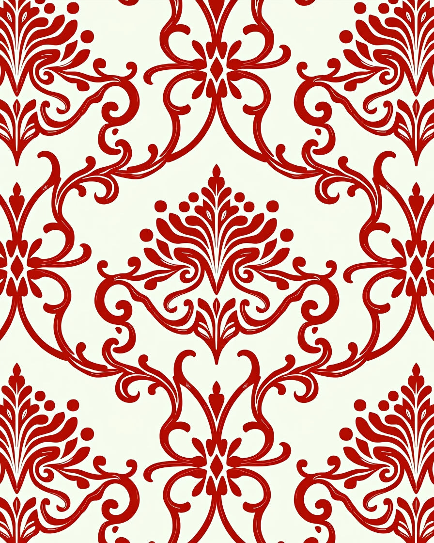 Vintage Damask Flourish with Elegant Swirling Motifs(Red)