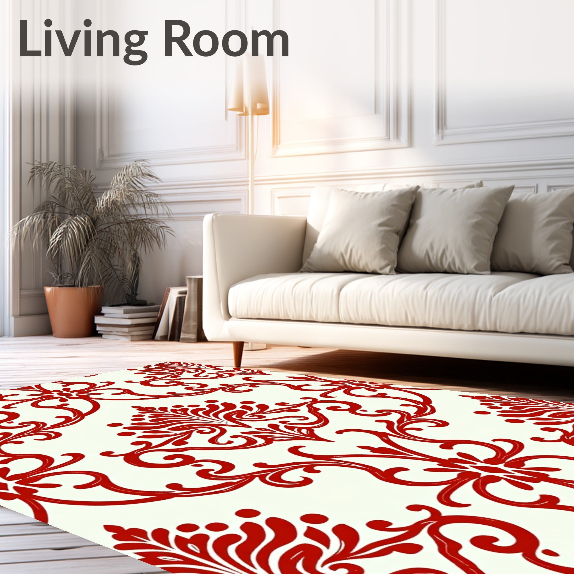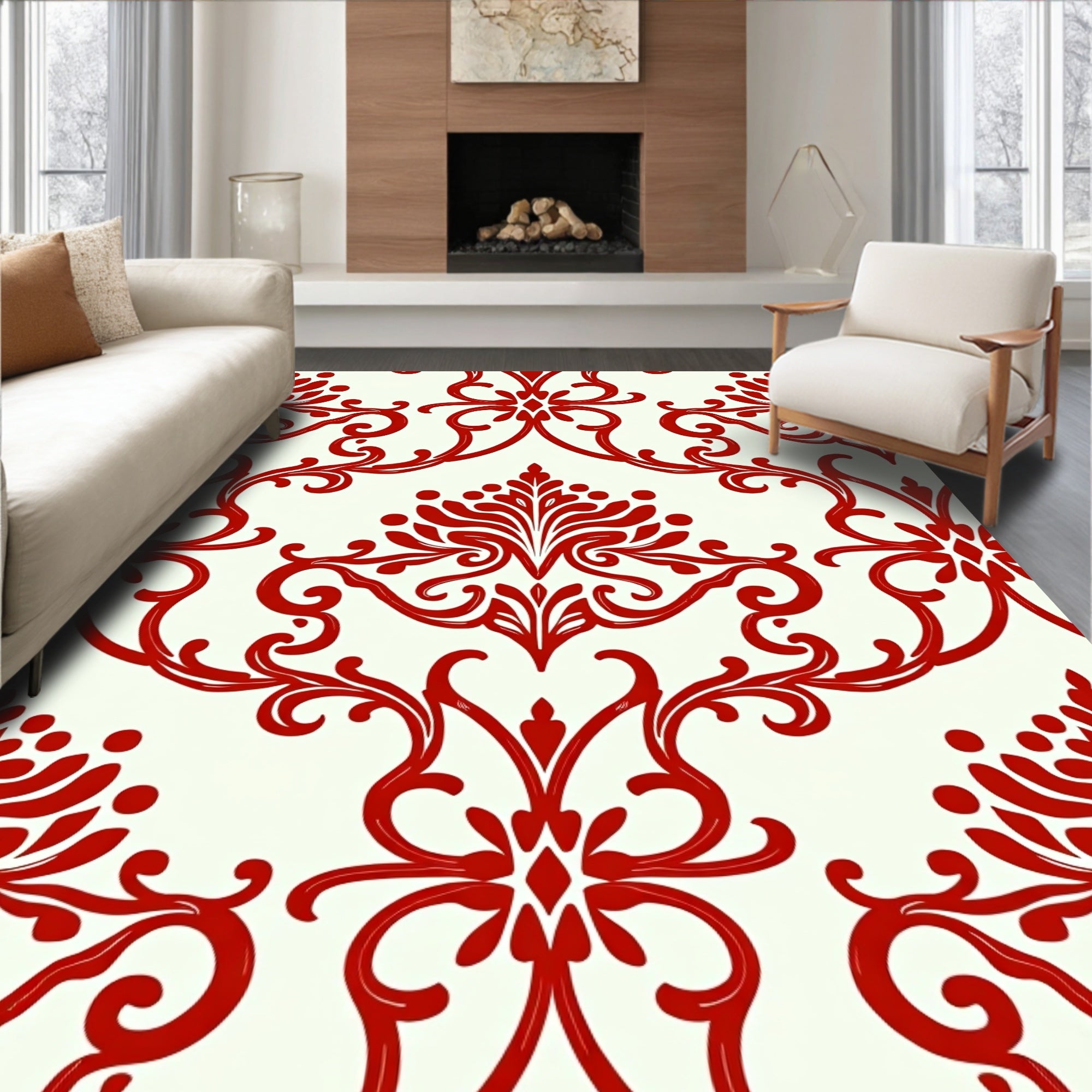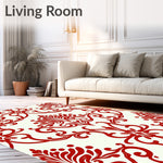 Ultra Soft Area Rug, Non Slip, Stain Resistant, Washable Area Rugs for Living Room, Bedroom, Vintage Damask Flourish with Elegant Swirling Motifs(Red) Overview: