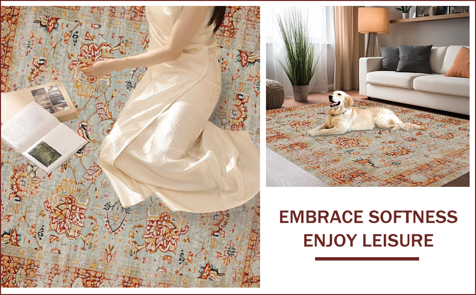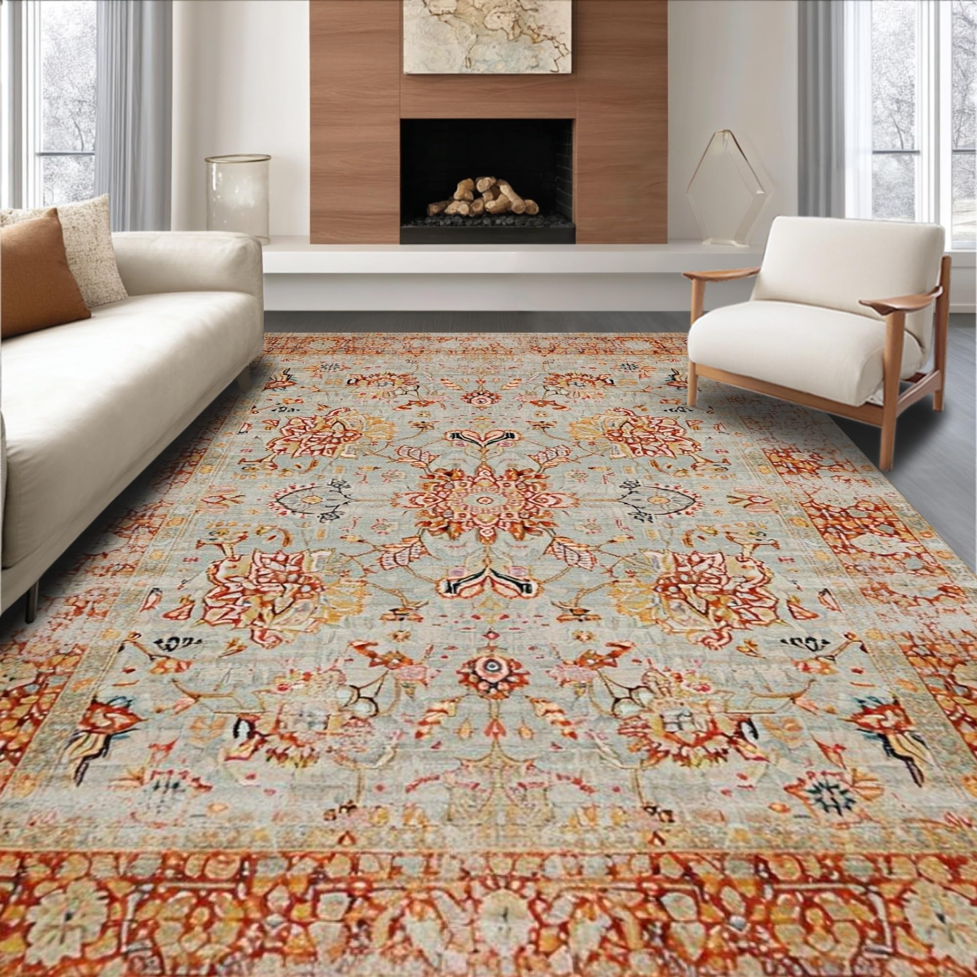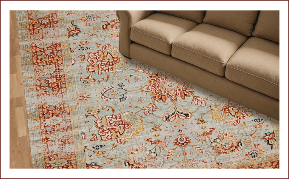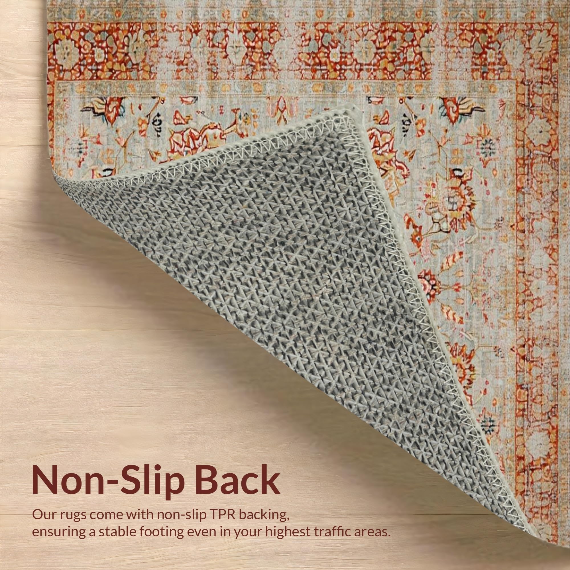 Ultra Soft Area Rug, Non Slip, Stain Resistant, Washable Area Rugs for Living Room, Bedroom, Vintage Distressed Botanical Motif(Gray) Overview: