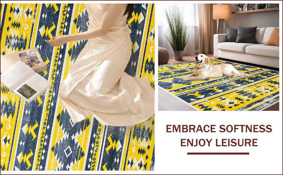 Ultra Soft Area Rug, Non Slip, Stain Resistant, Washable Area Rugs for Living Room, Bedroom, Vintage Distressed Kitchen Entryway Rug(Yellow) Overview: