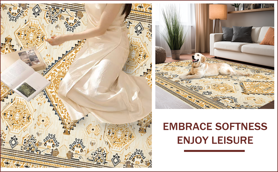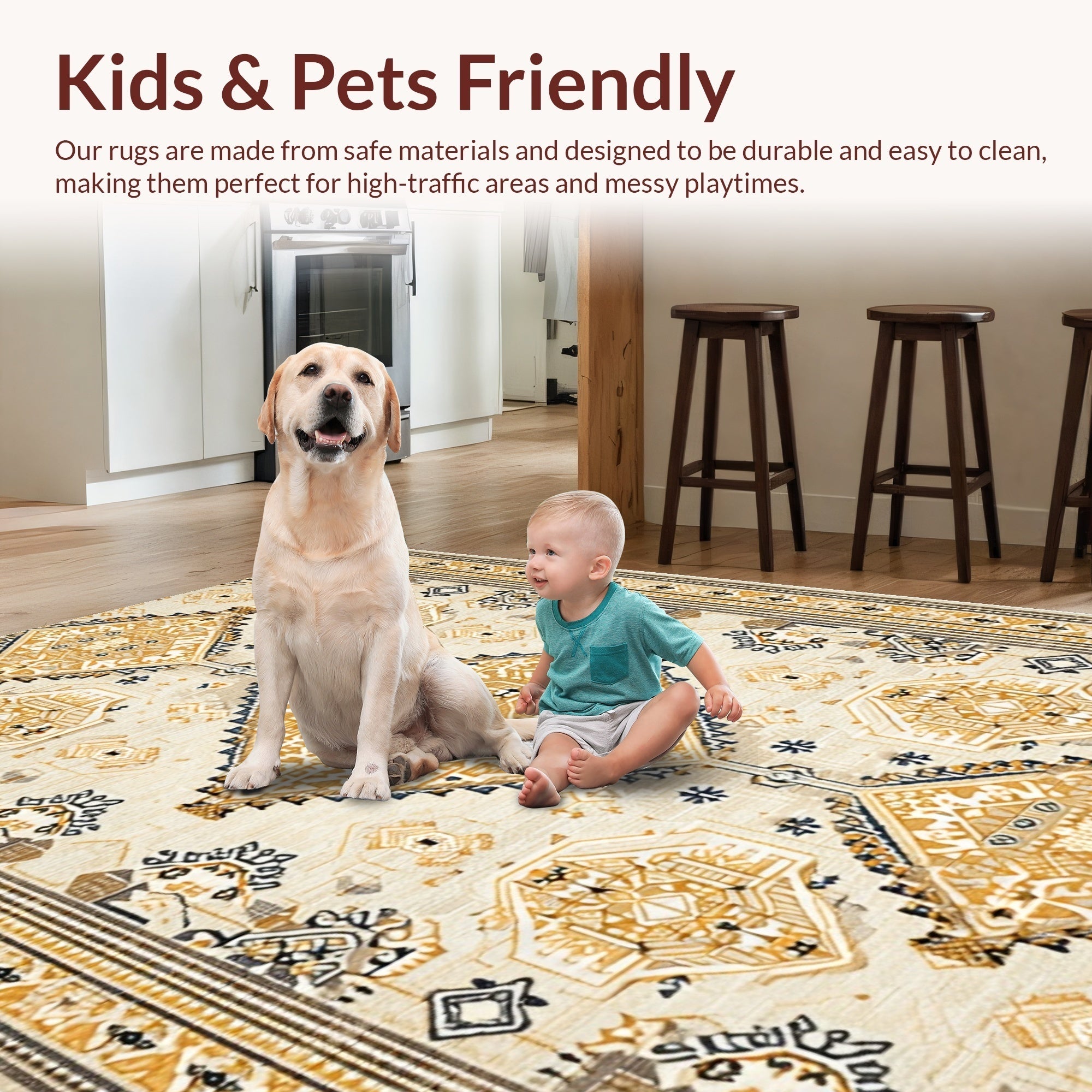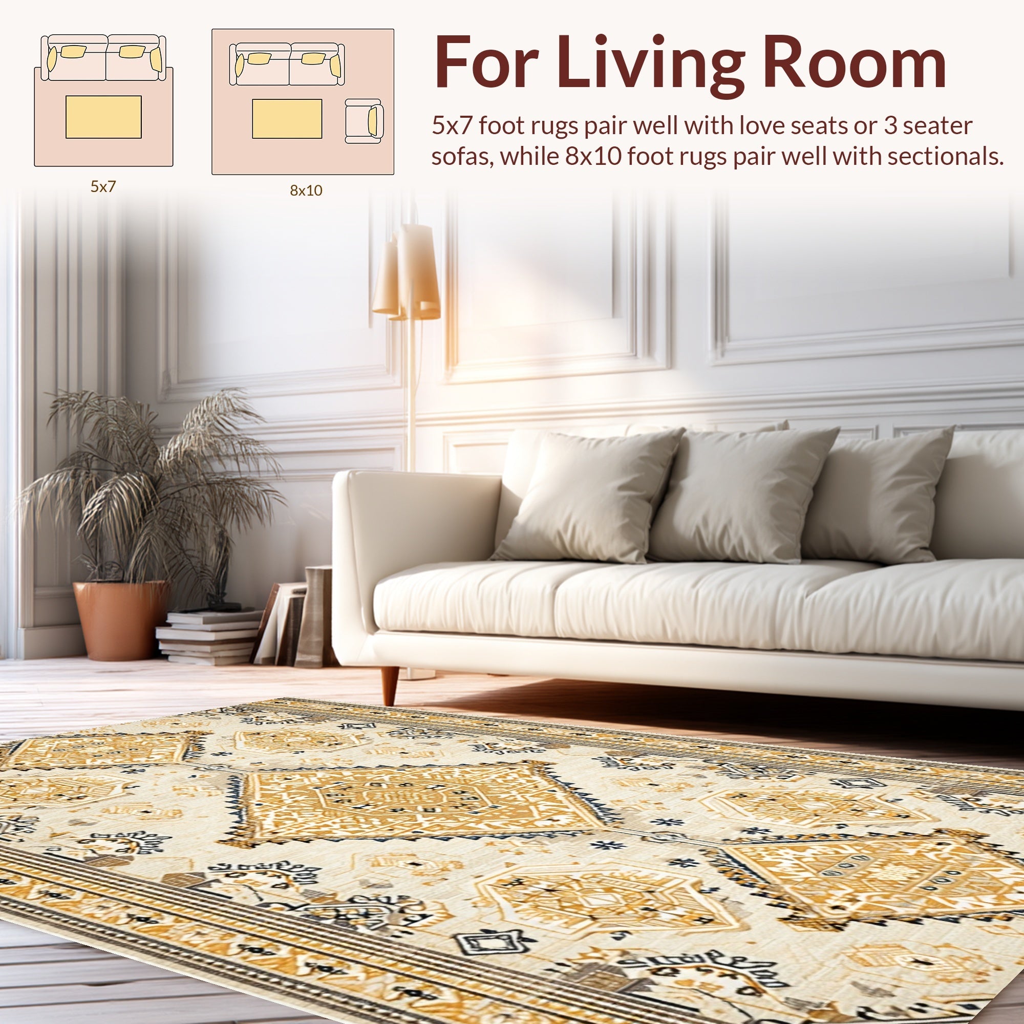 Ultra Soft Area Rug, Non Slip, Stain Resistant, Washable Area Rugs for Living Room, Bedroom, Vintage Distressed Wool(Beige) Overview: