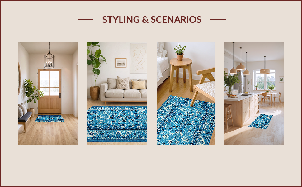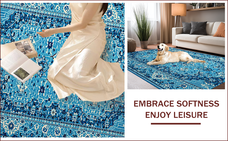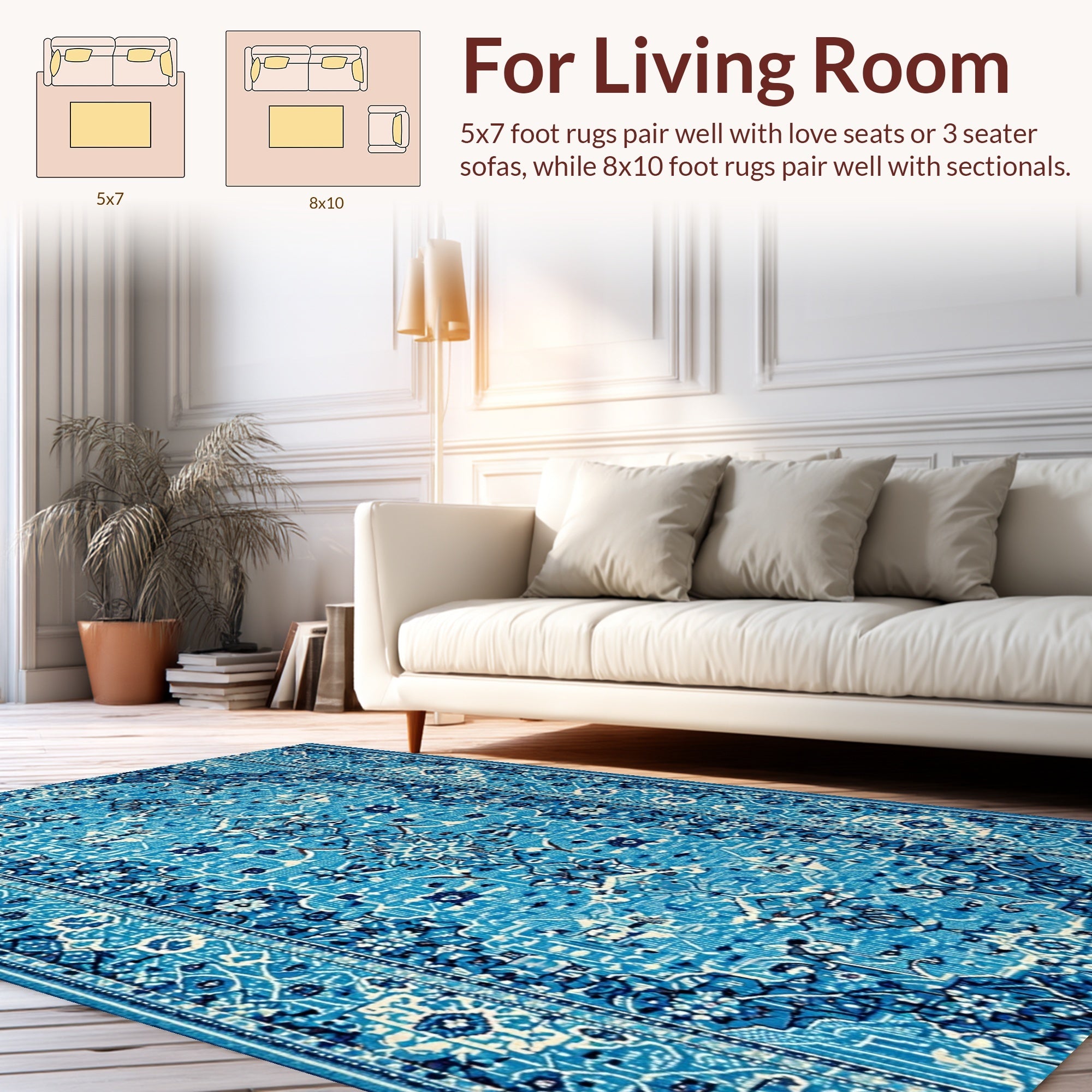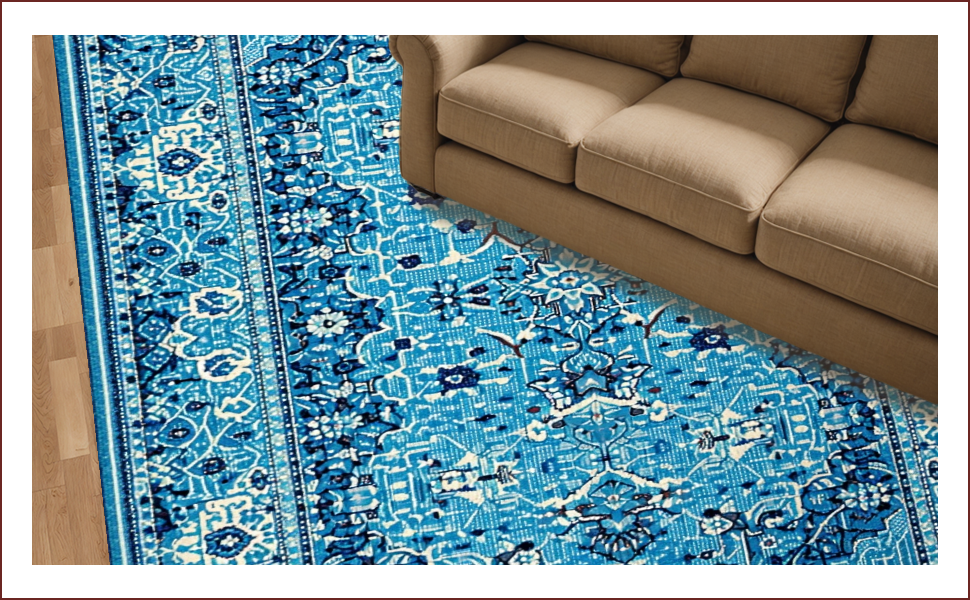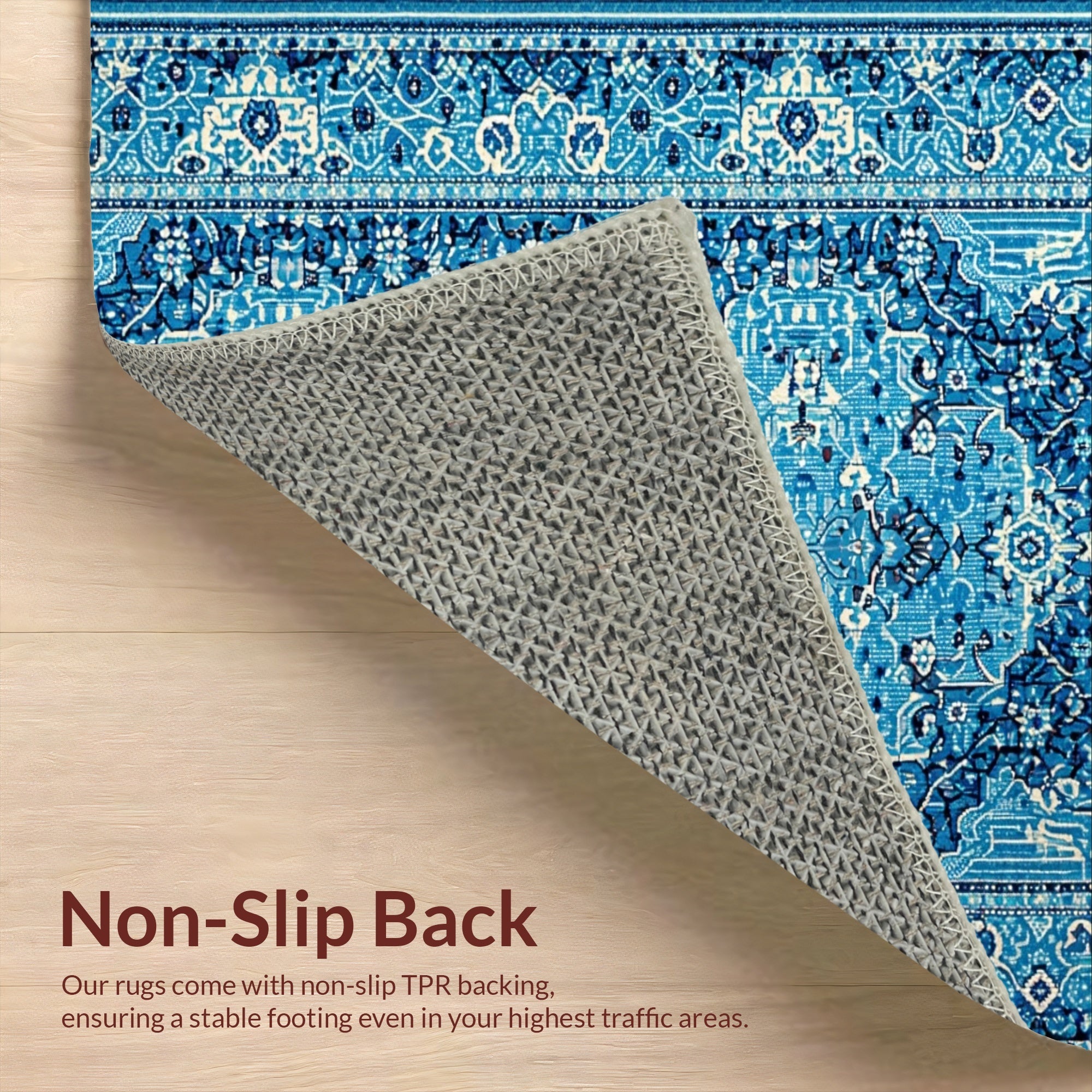 Ultra Soft Area Rug, Non Slip, Stain Resistant, Washable Area Rugs for Living Room, Bedroom, Vintage Distressed(Blue) Overview: