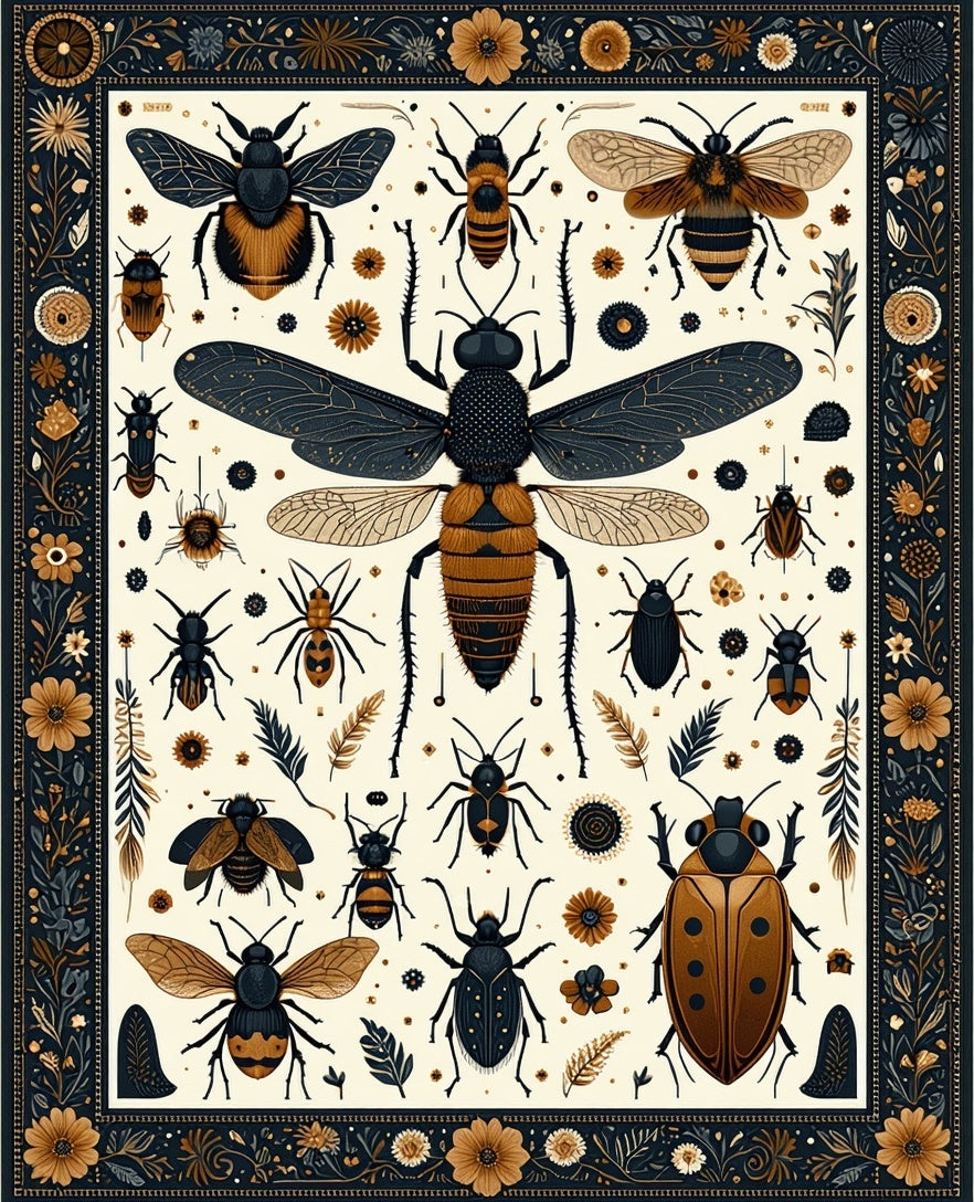 Vintage Entomology Sketches with Boho Medallion Motifs(Gold)