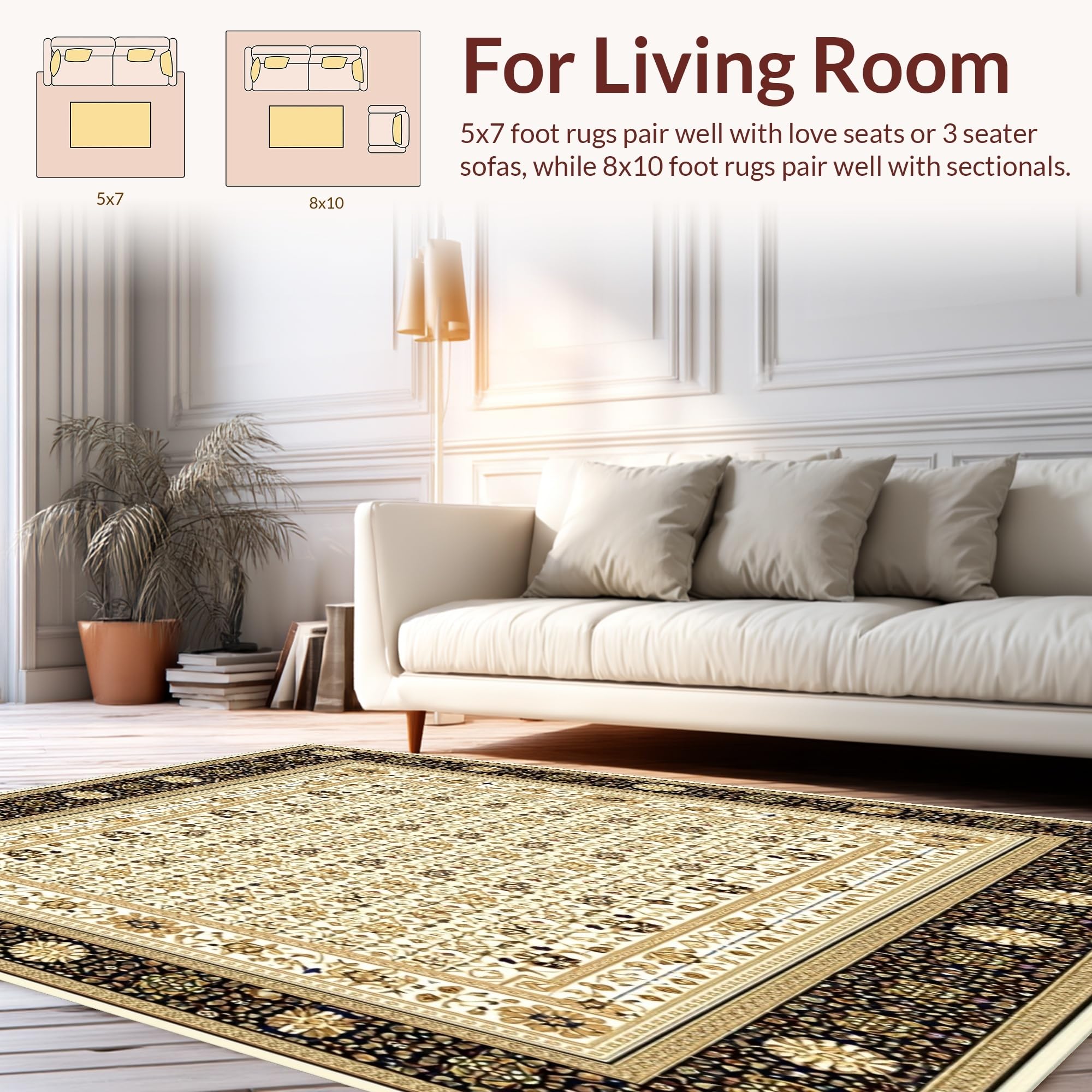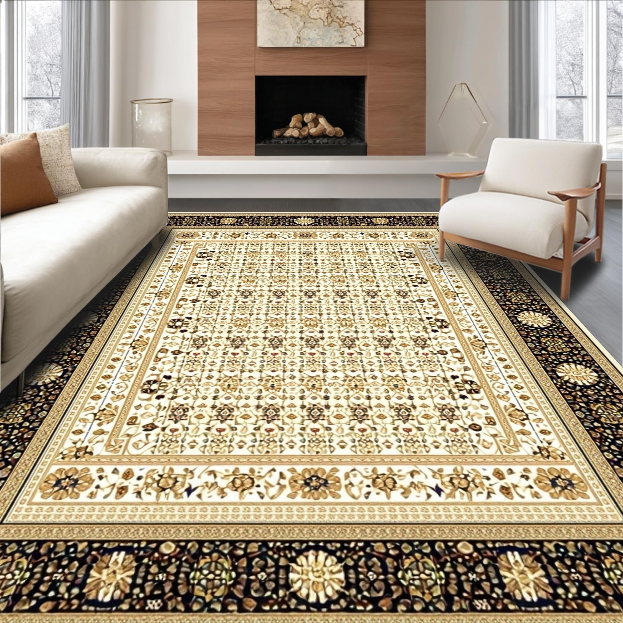 Ultra Soft Area Rug, Non Slip, Stain Resistant, Washable Area Rugs for Living Room, Bedroom, Vintage Farmhouse Woven Boho(Beige) Overview: