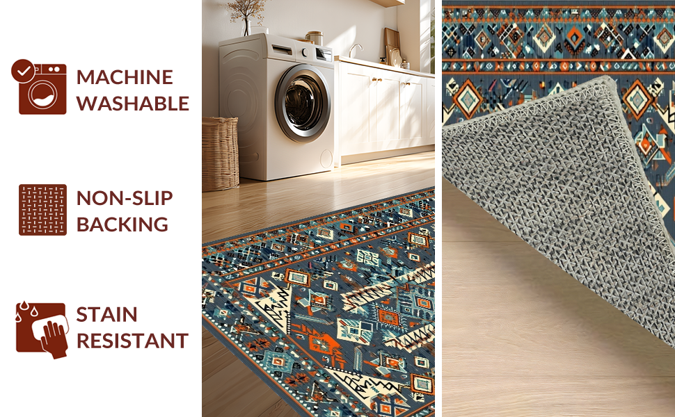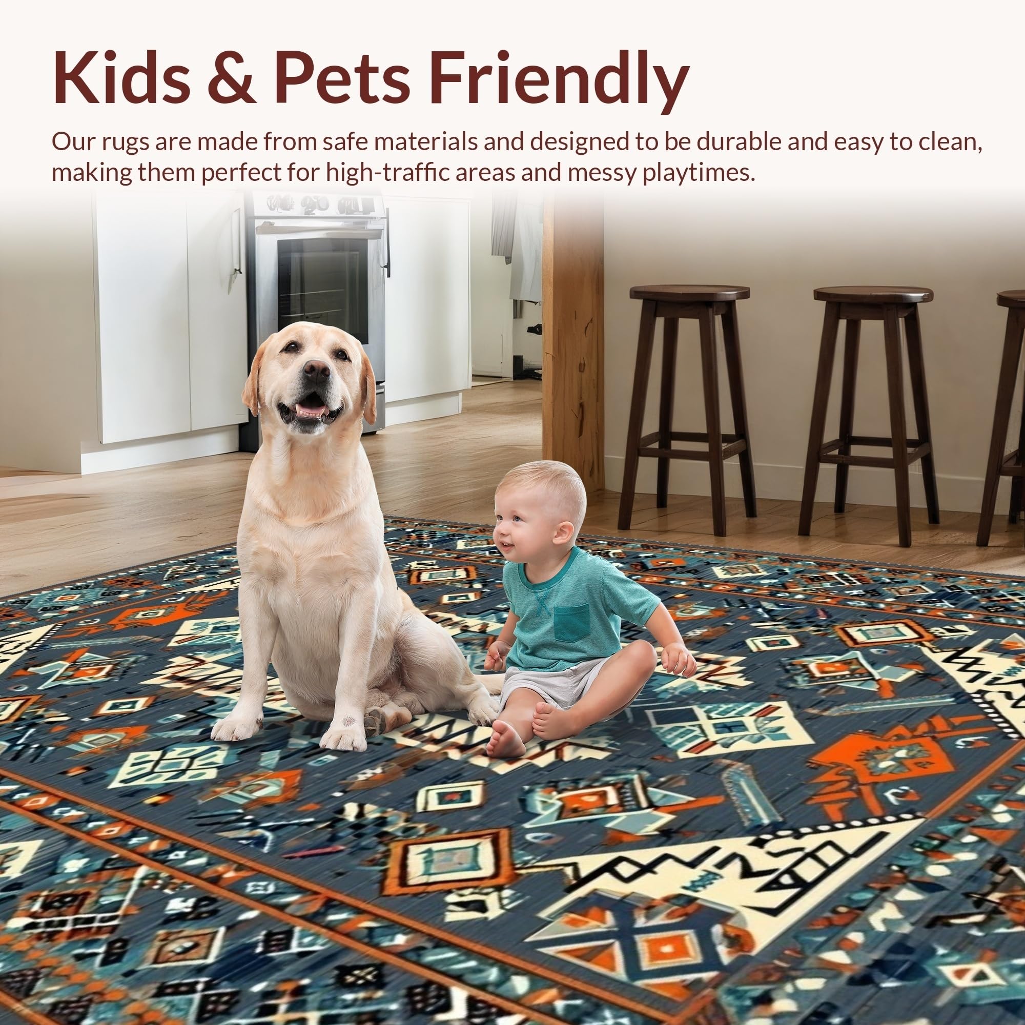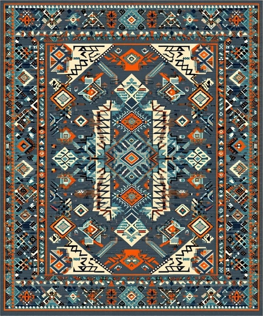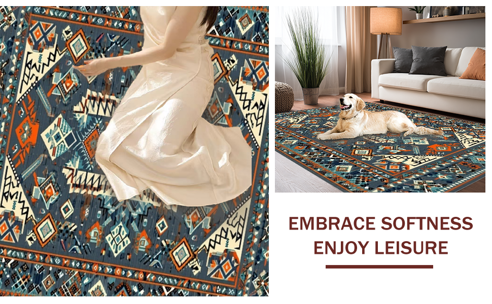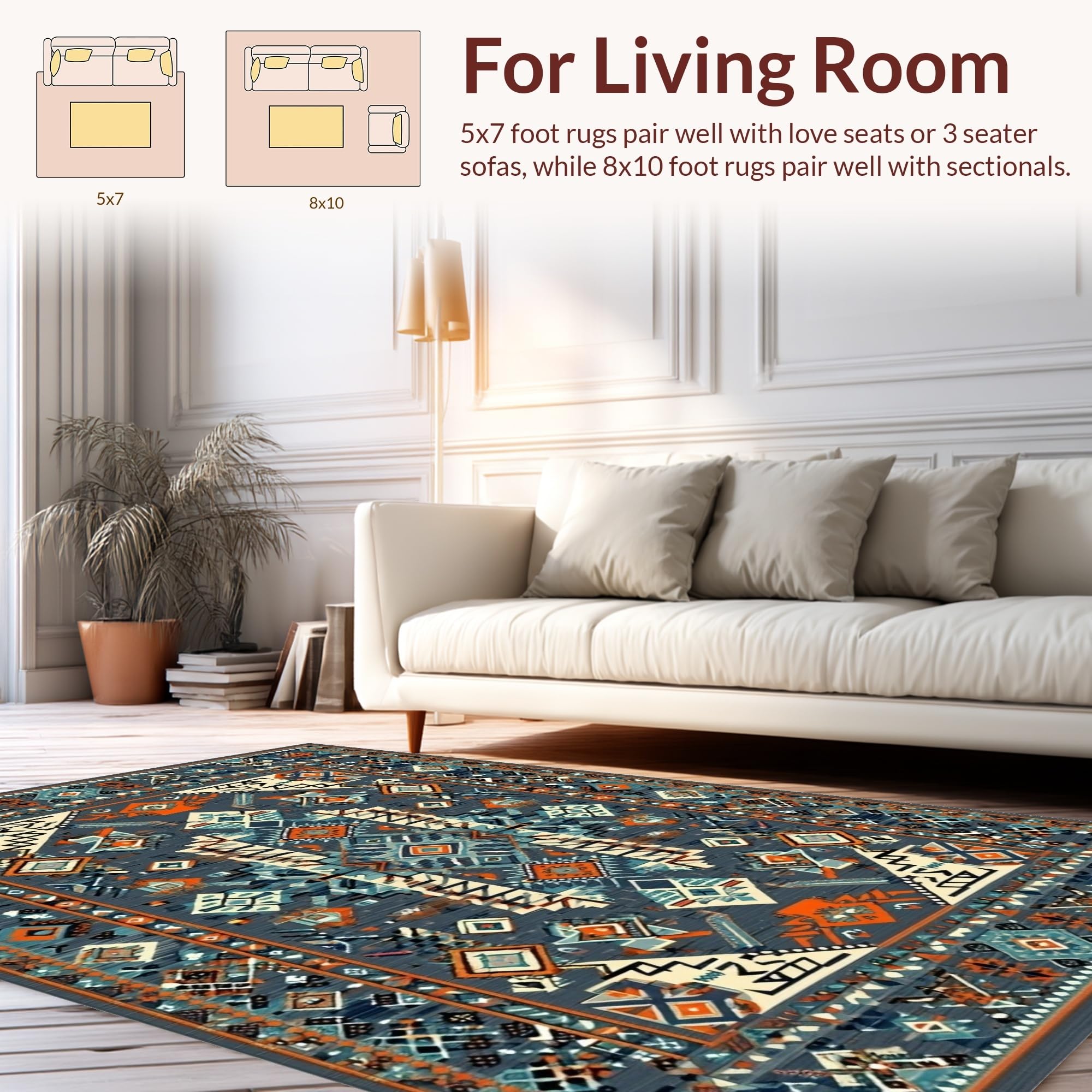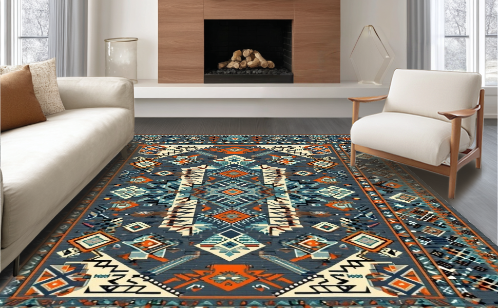 Ultra Soft Area Rug, Non Slip, Stain Resistant, Washable Area Rugs for Living Room, Bedroom, Vintage Geometric Charm(Blue) Overview: