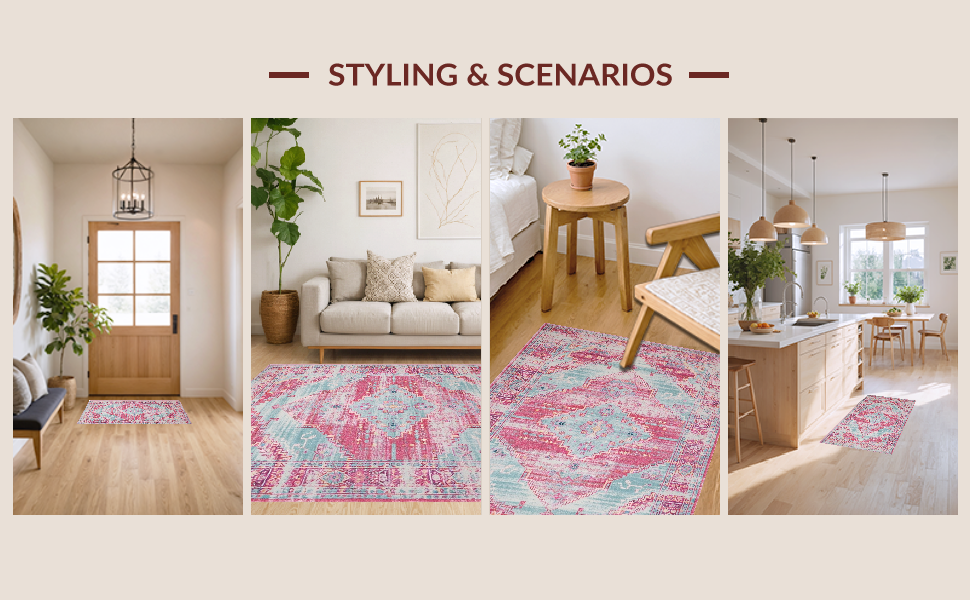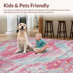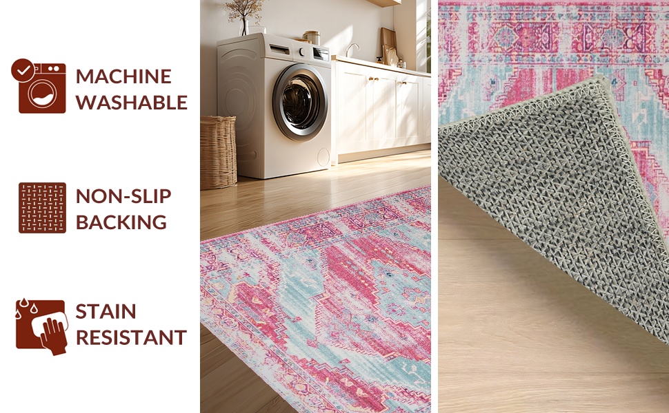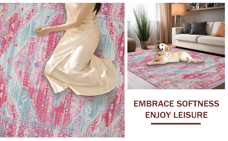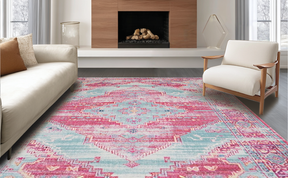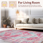 Ultra Soft Area Rug, Non Slip, Stain Resistant, Washable Area Rugs for Living Room, Bedroom, Vintage Geometric Soft Texture(Pink) Overview: