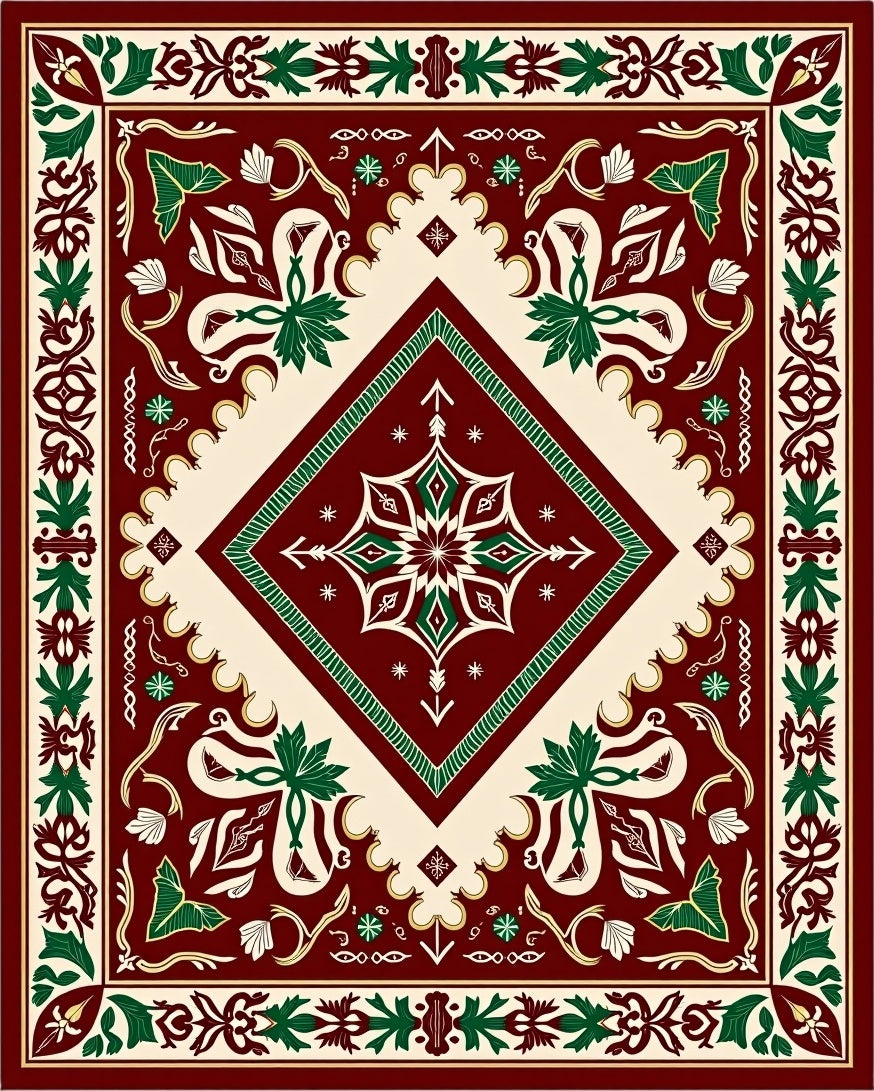 Vintage Holiday Trellis Area with Festive Motifs(Burgundy)