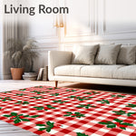 Ultra Soft Area Rug, Non Slip, Stain Resistant, Washable Area Rugs for Living Room, Bedroom, Vintage Holly Berry Checkered Gingham Holiday Non Slip(Red) Overview: