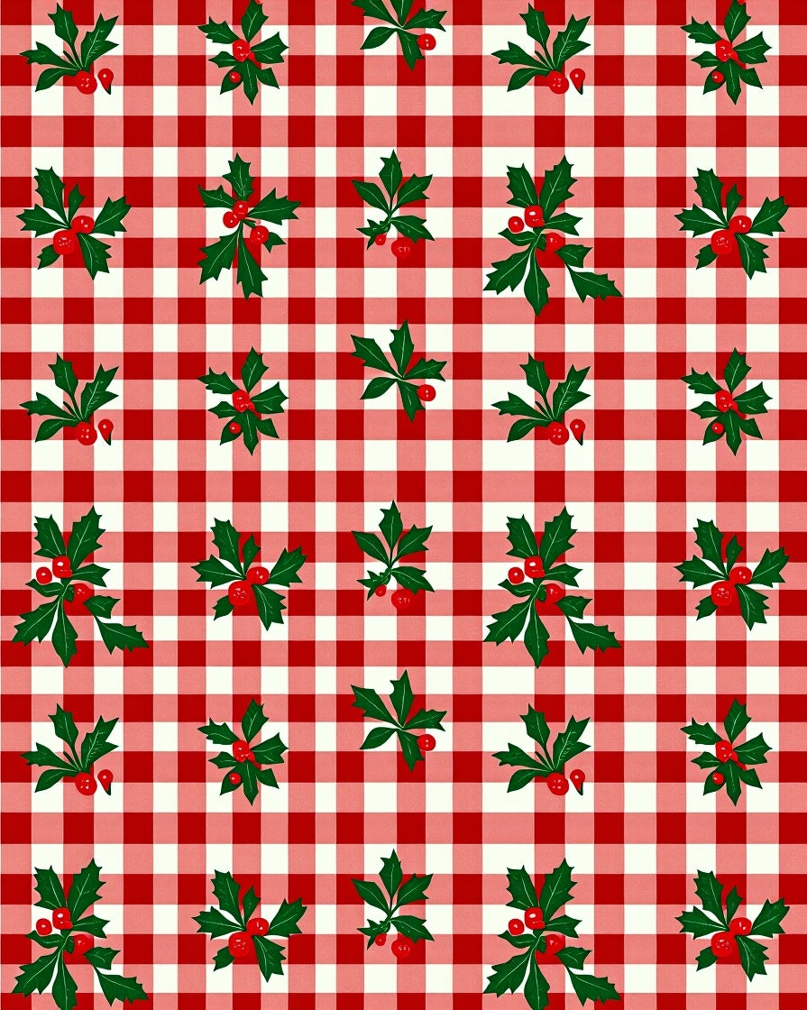 Vintage Holly Berry Checkered Gingham Holiday Non Slip(Red)