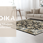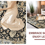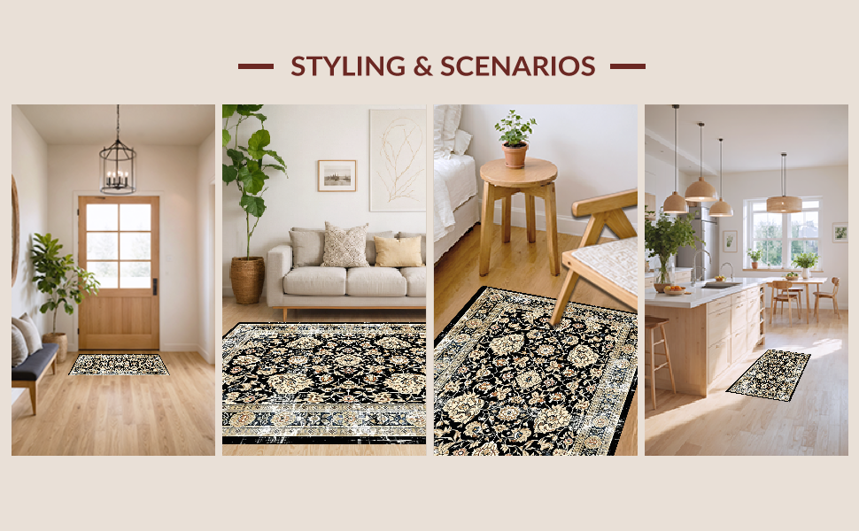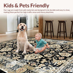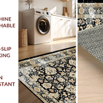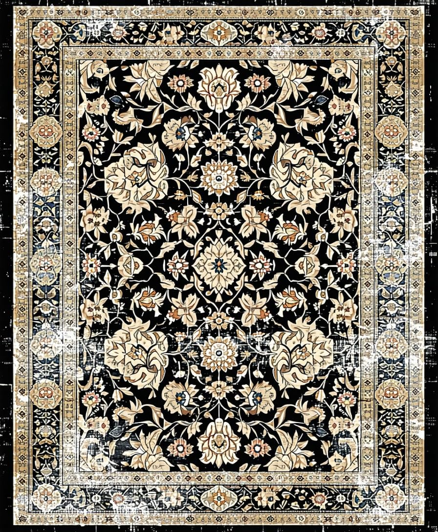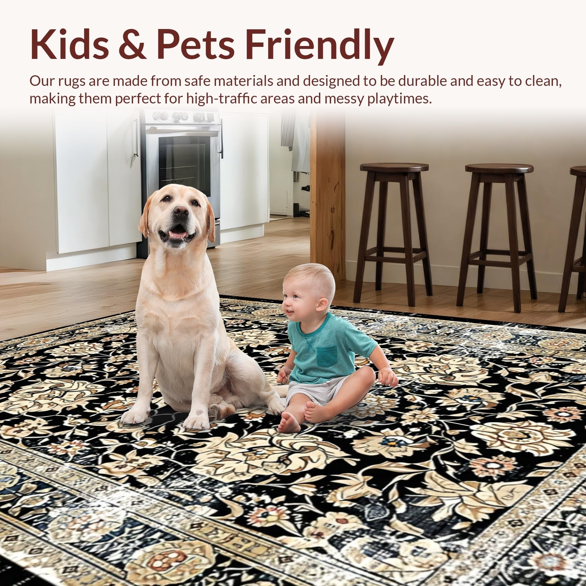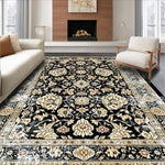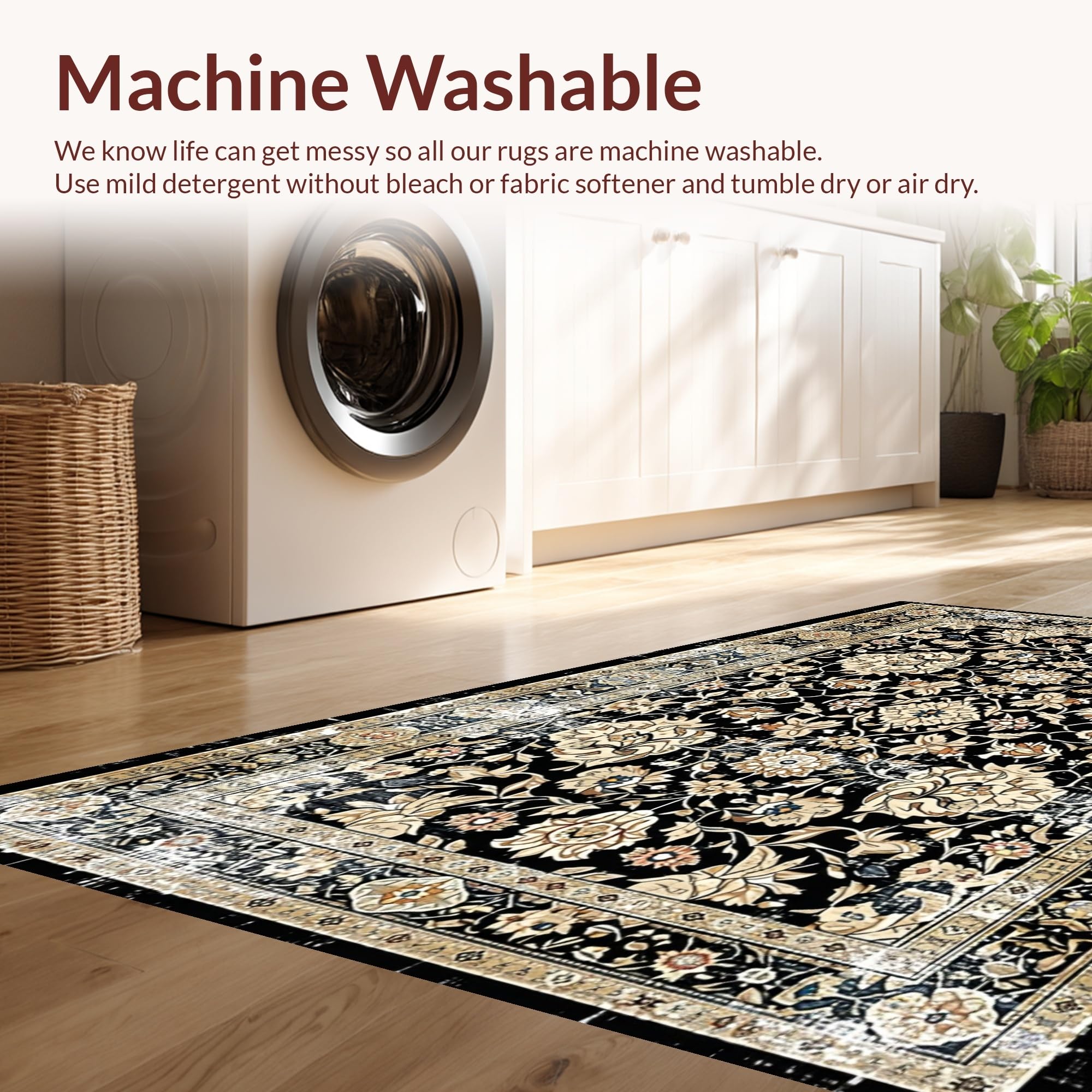 Ultra Soft Area Rug, Non Slip, Stain Resistant, Washable Area Rugs for Living Room, Bedroom, Vintage Inspired Botanical Design(Black) Overview: