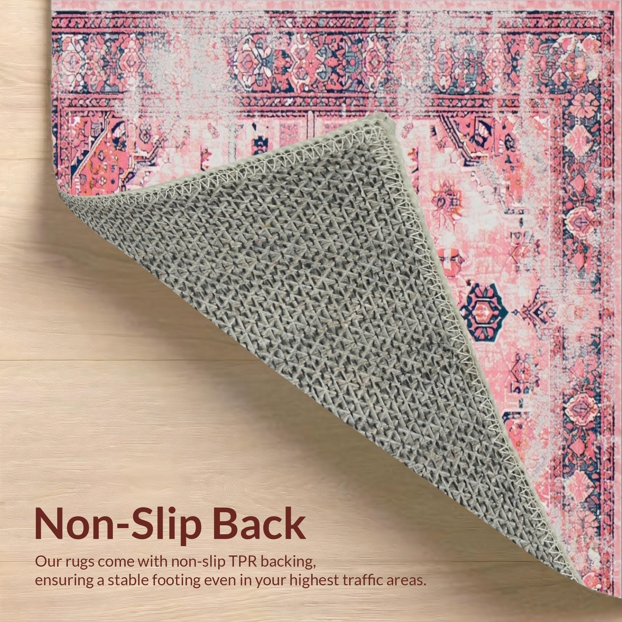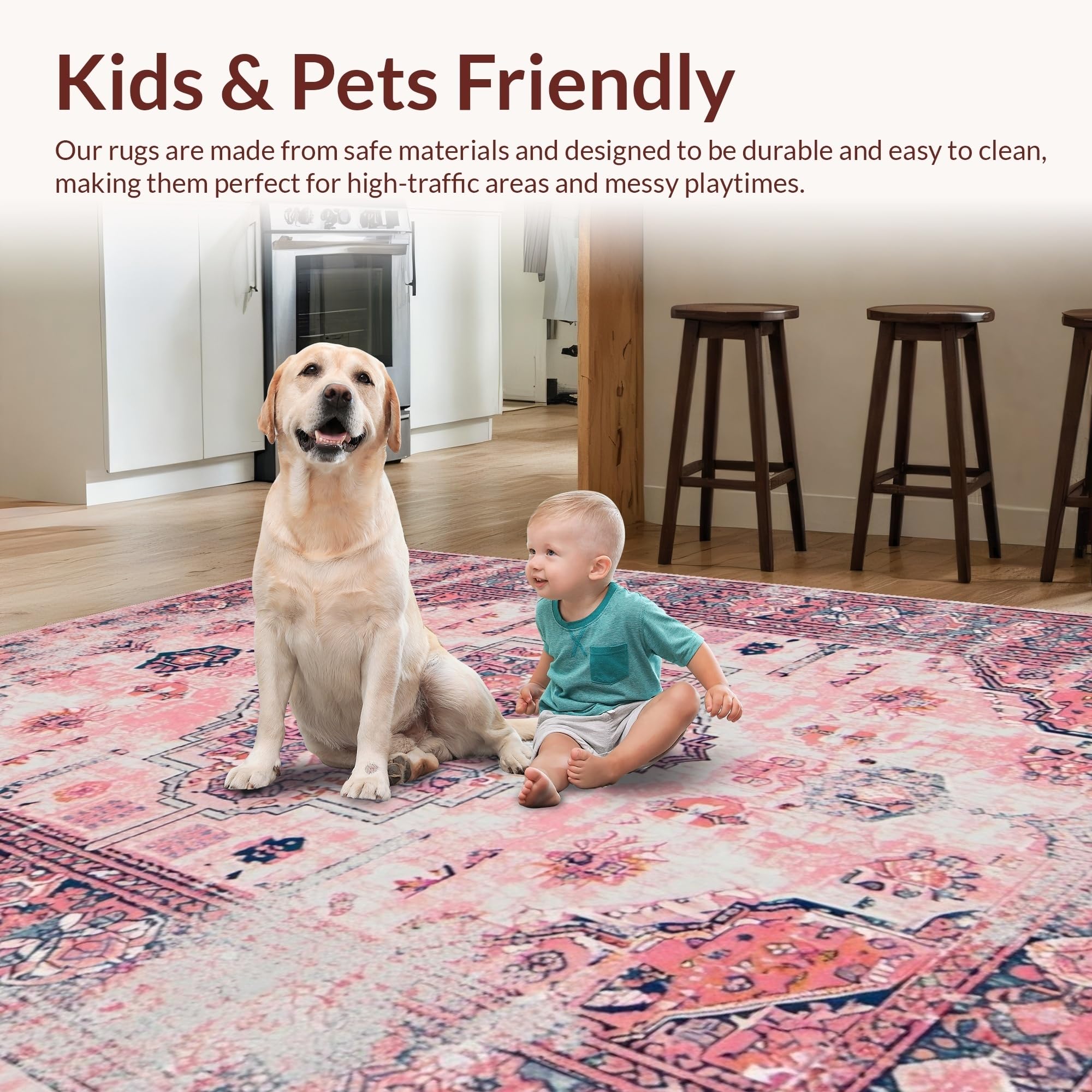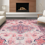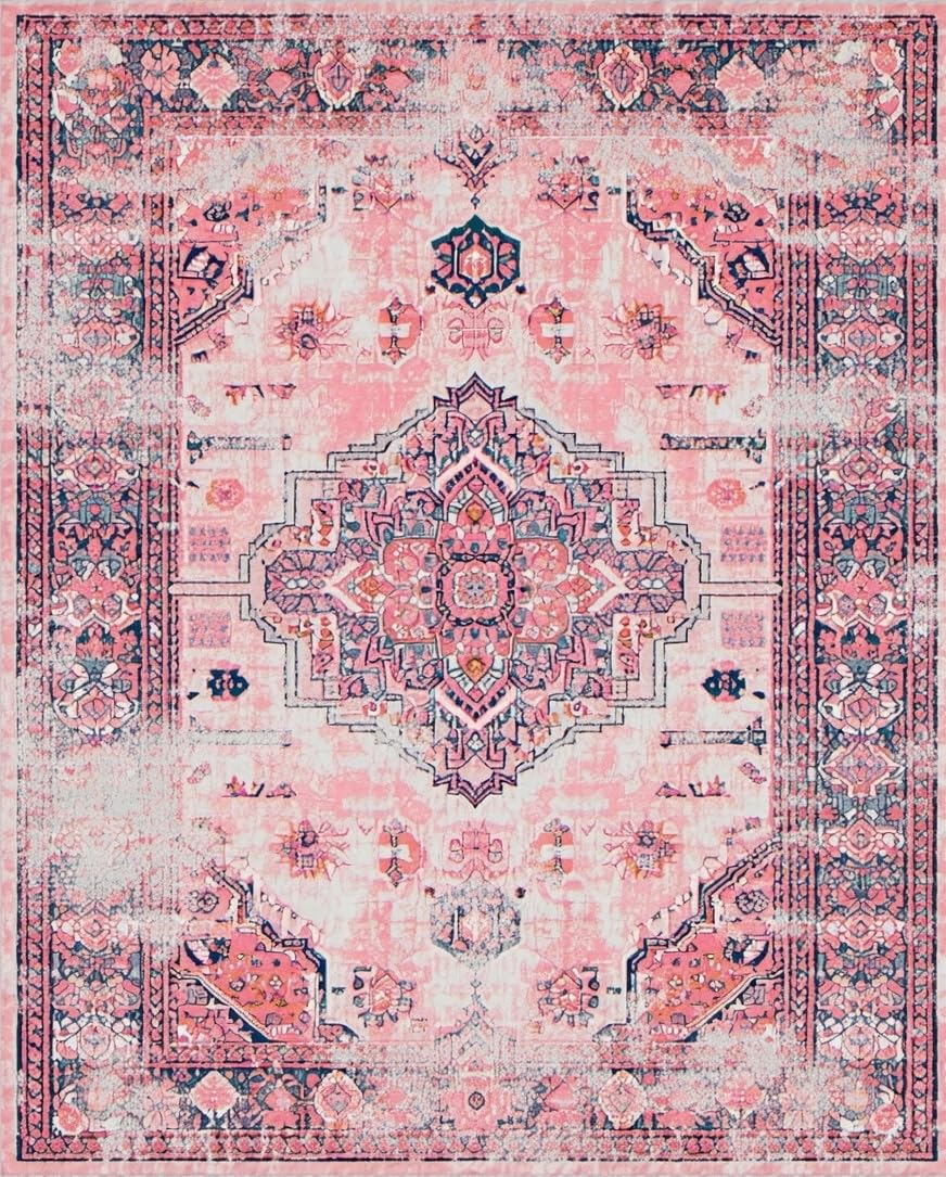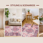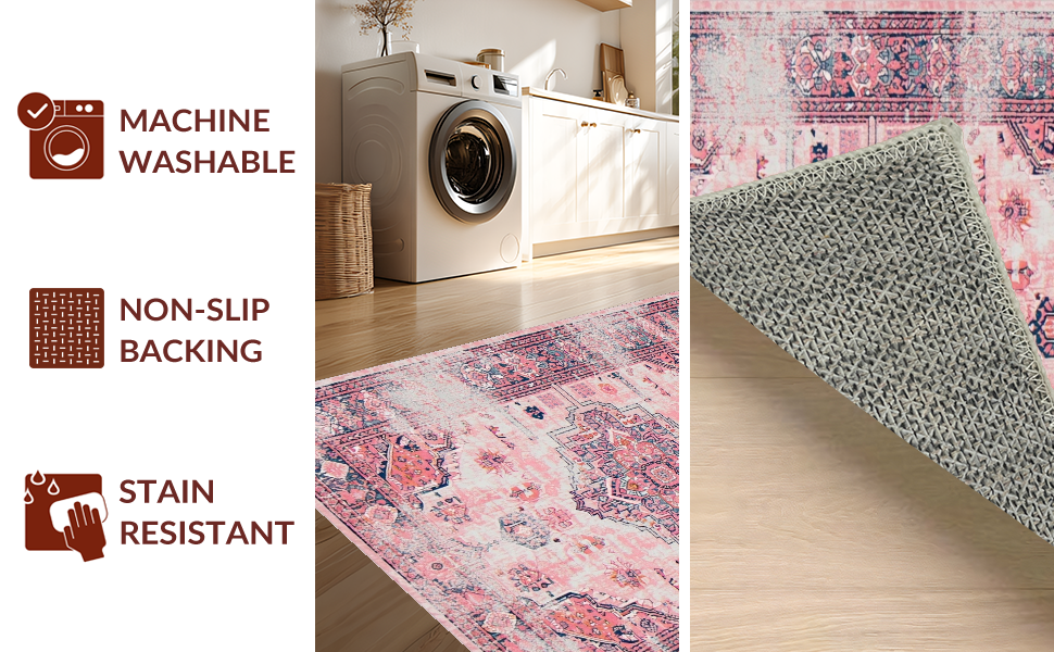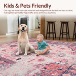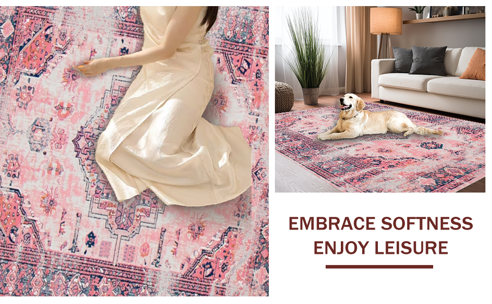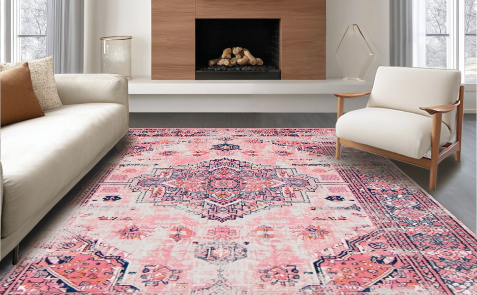 Ultra Soft Area Rug, Non Slip, Stain Resistant, Washable Area Rugs for Living Room, Bedroom, Vintage-Inspired Cozy Patterned Touch(Pink) Overview: