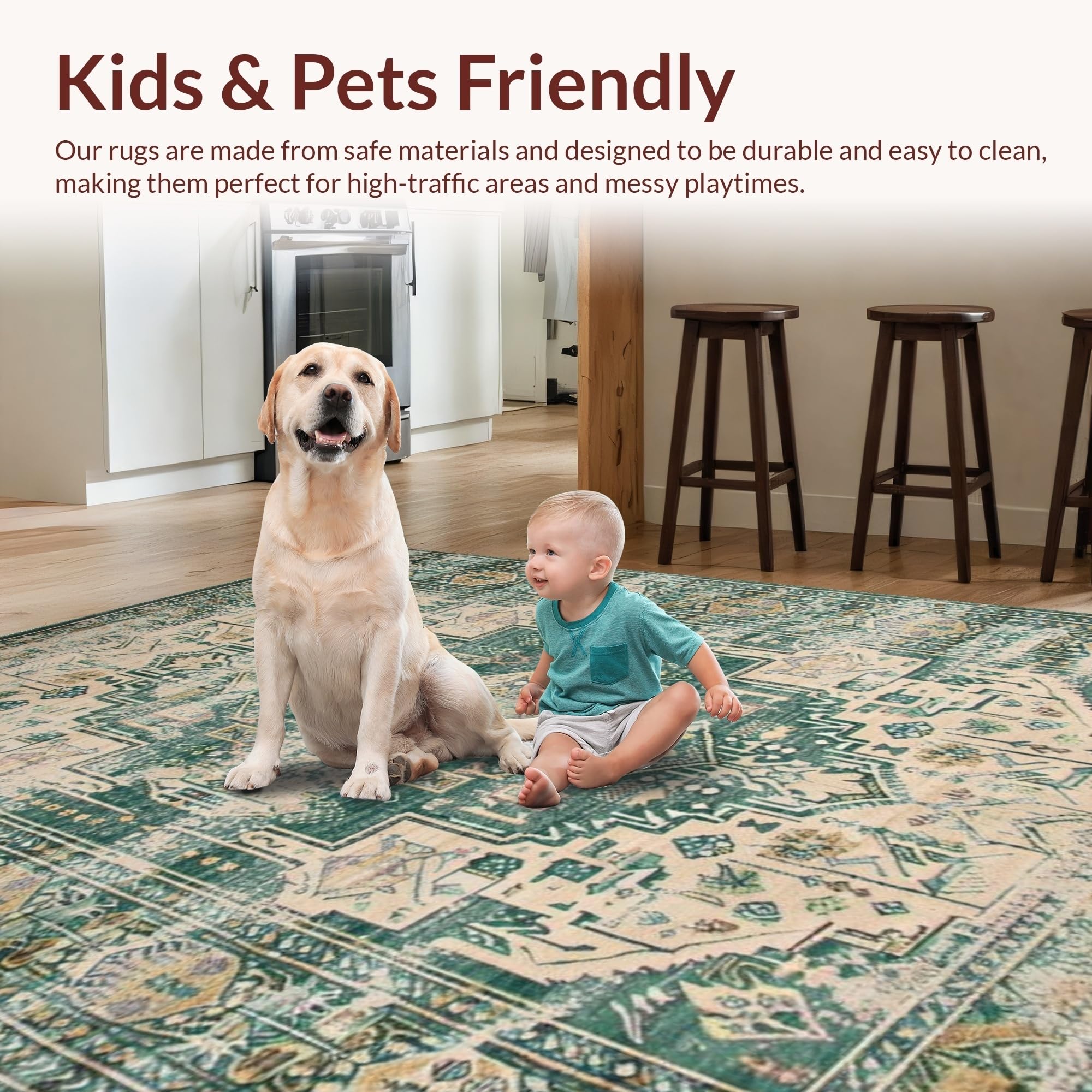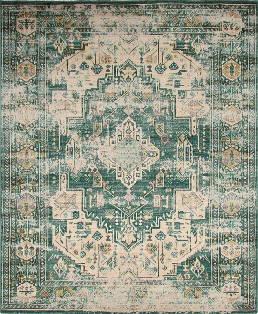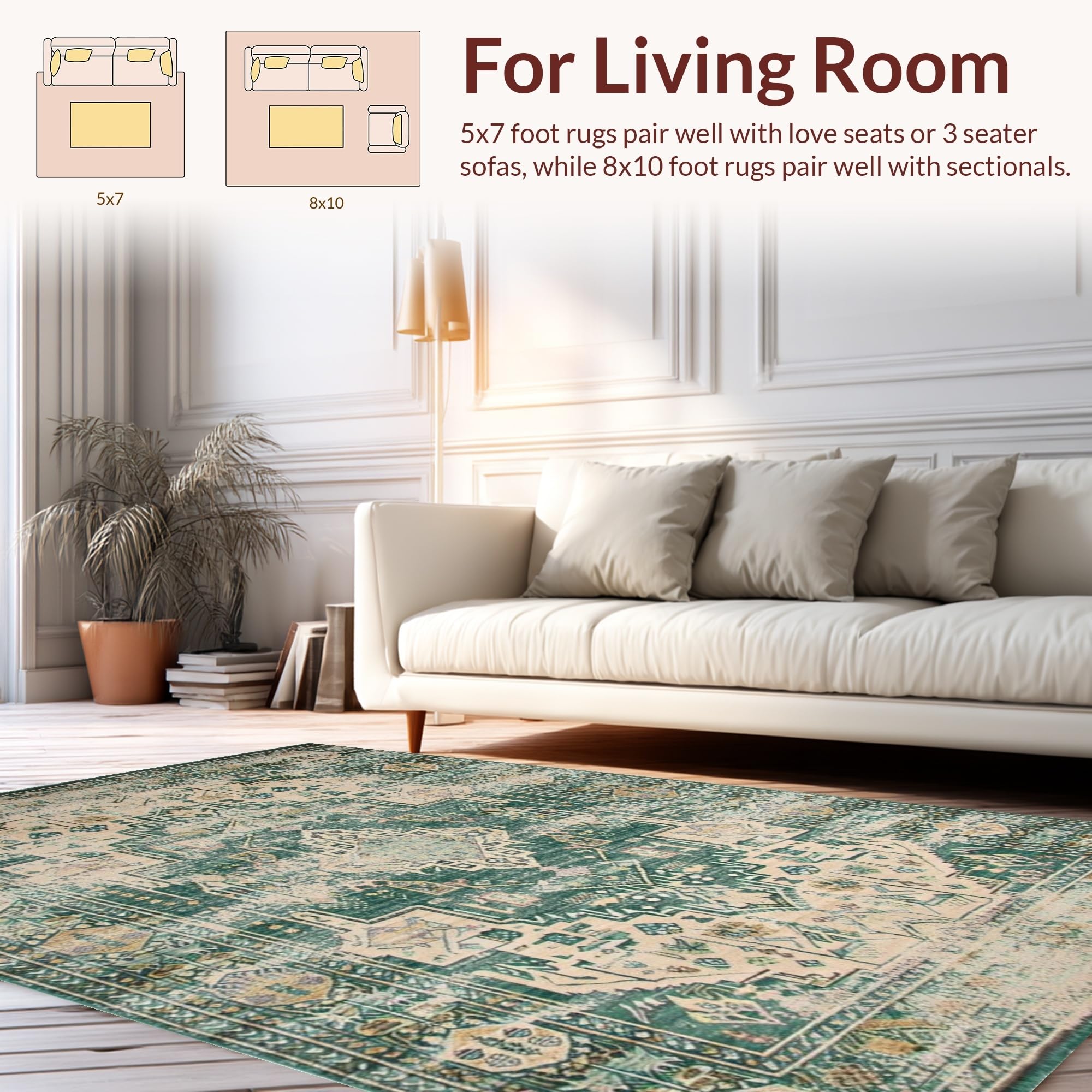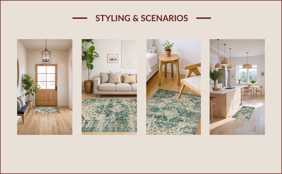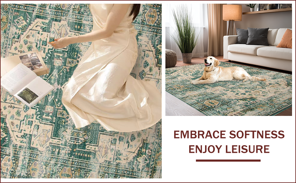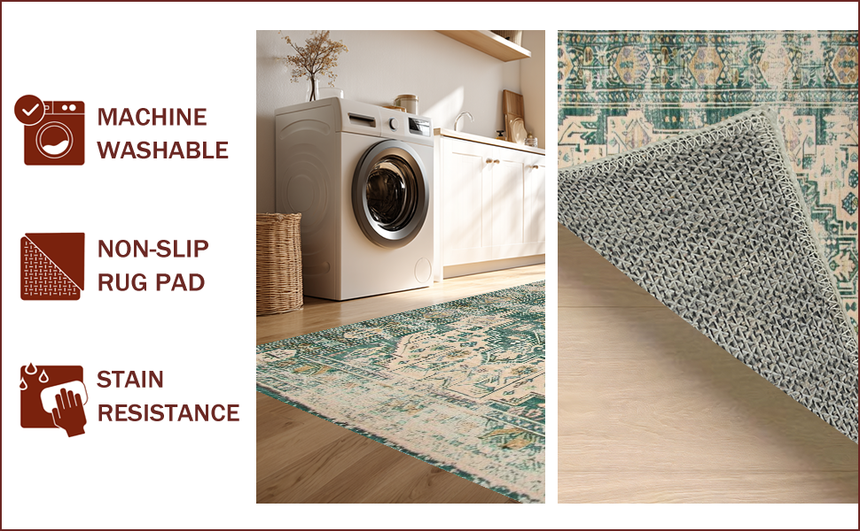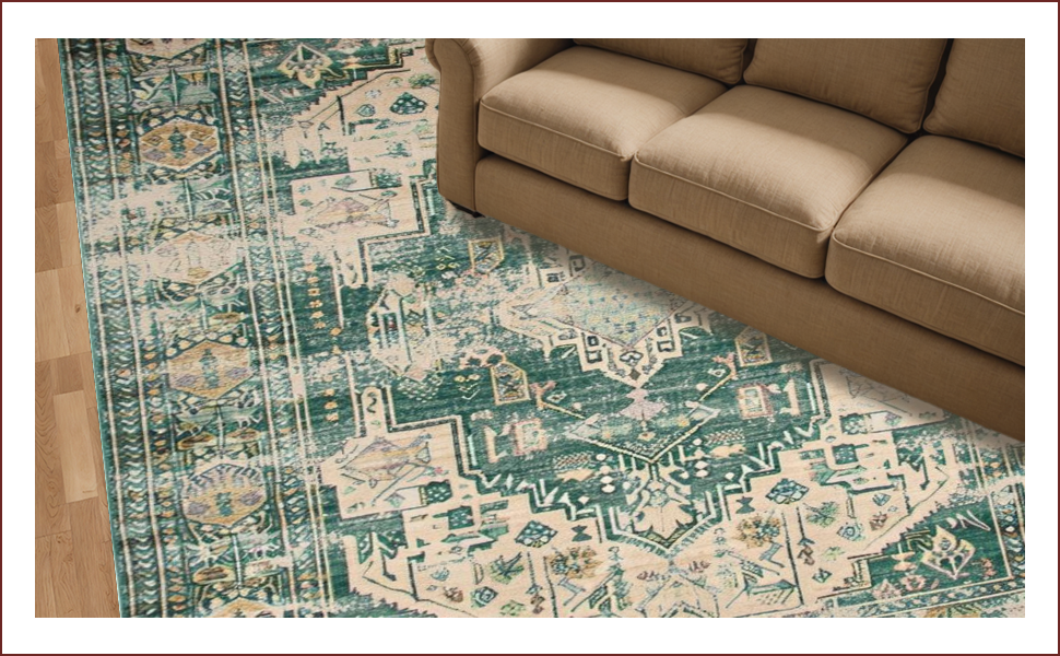 Ultra Soft Area Rug, Non Slip, Stain Resistant, Washable Area Rugs for Living Room, Bedroom, Vintage Inspired Earthy Geometric Motif(Green) Overview: