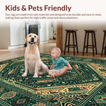 Ultra Soft Area Rug, Non Slip, Stain Resistant, Washable Area Rugs for Living Room, Bedroom, Vintage Inspired Ethnic Motif with Intricate Boho(Green) Overview: