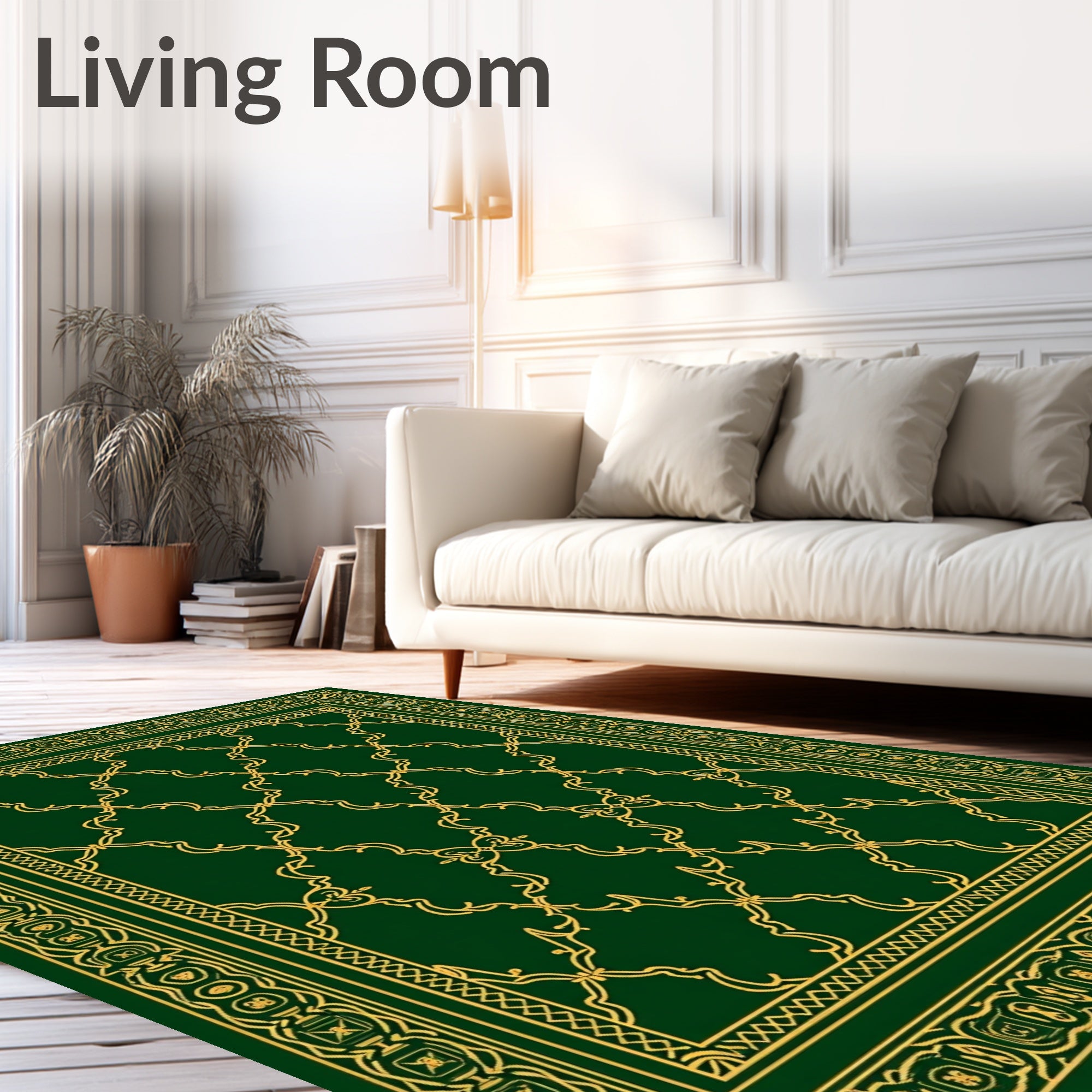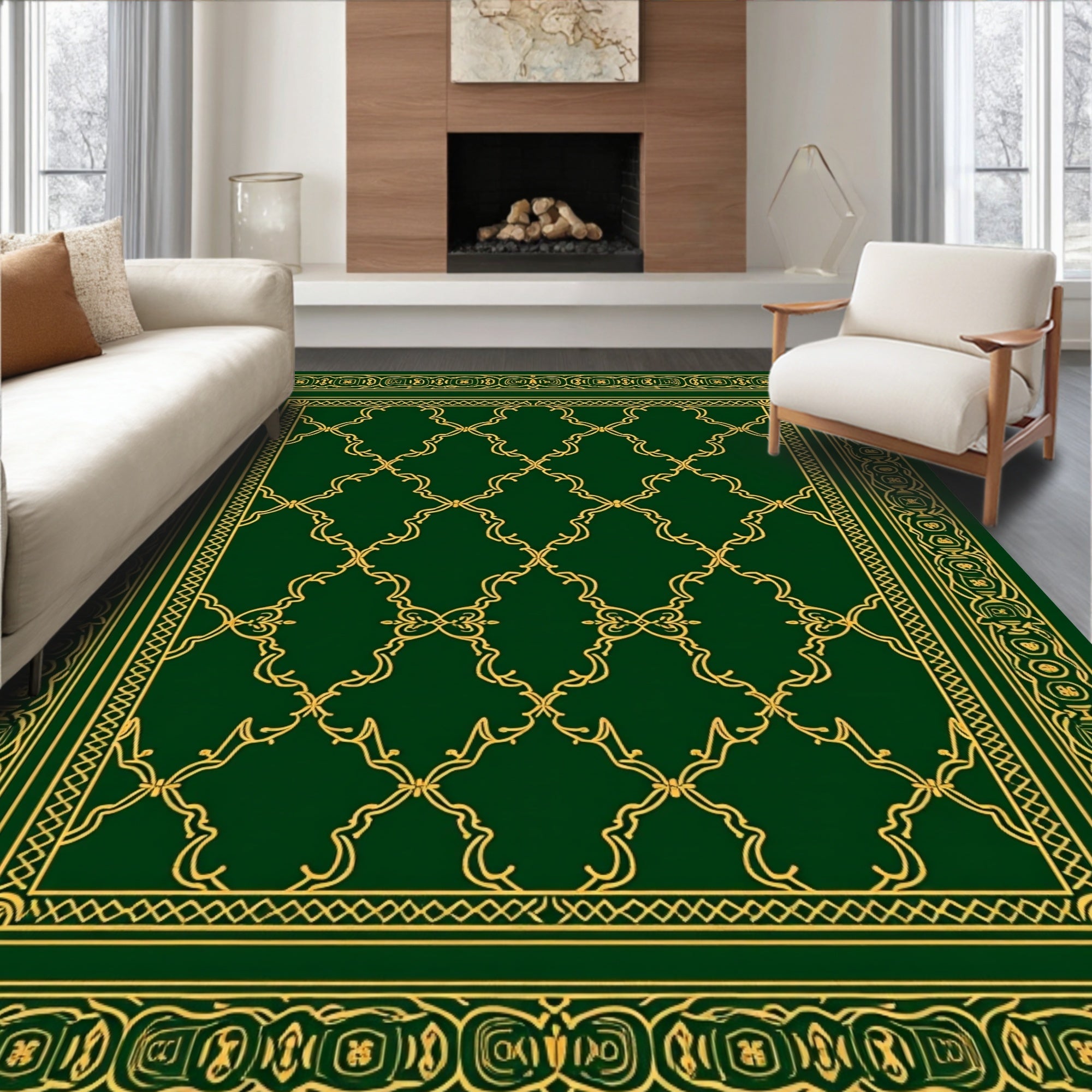 Ultra Soft Area Rug, Non Slip, Stain Resistant, Washable Area Rugs for Living Room, Bedroom, Vintage Inspired Festive Trellis with Luxurious Detailing(Green) Overview: