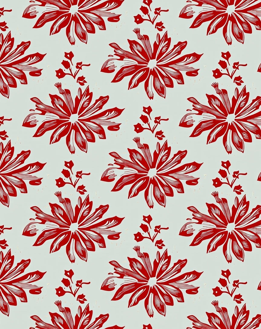 Vintage Inspired Winter Motif With Holly Leaf Accents(Red)